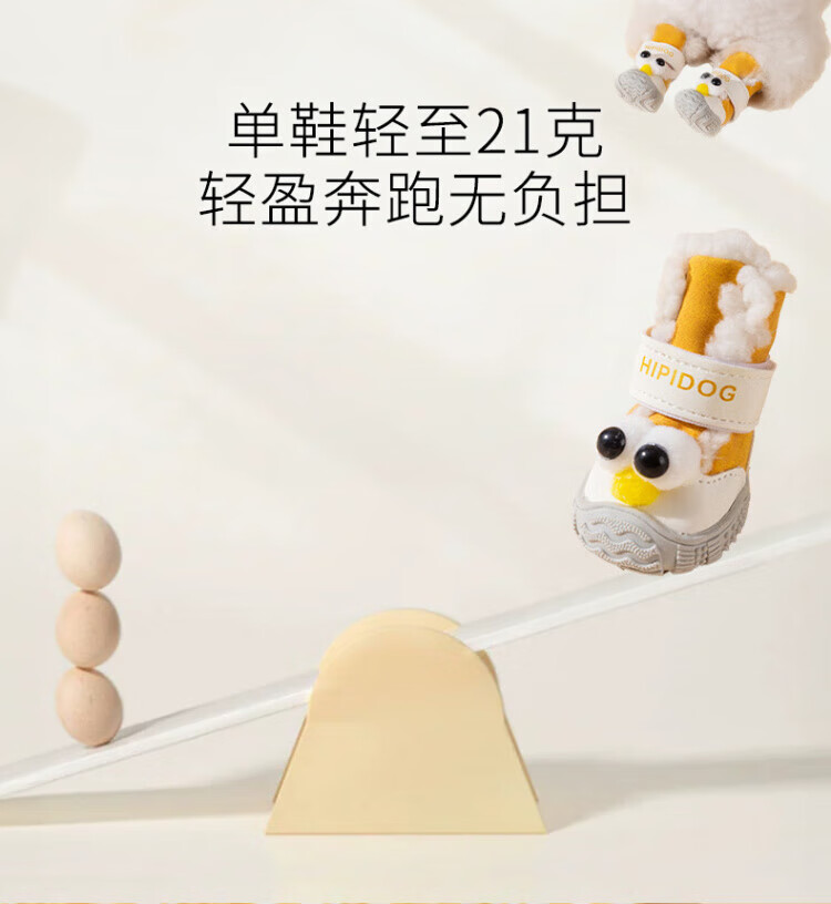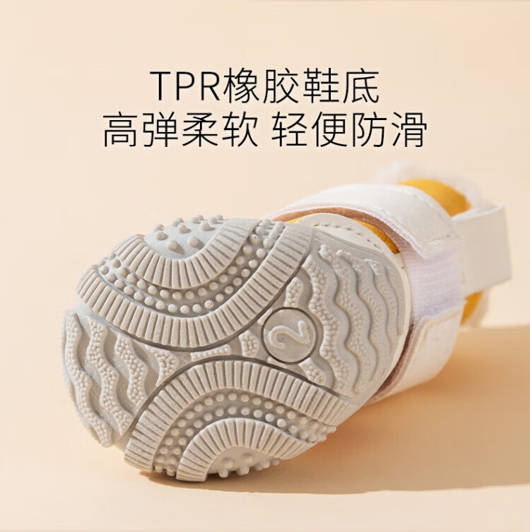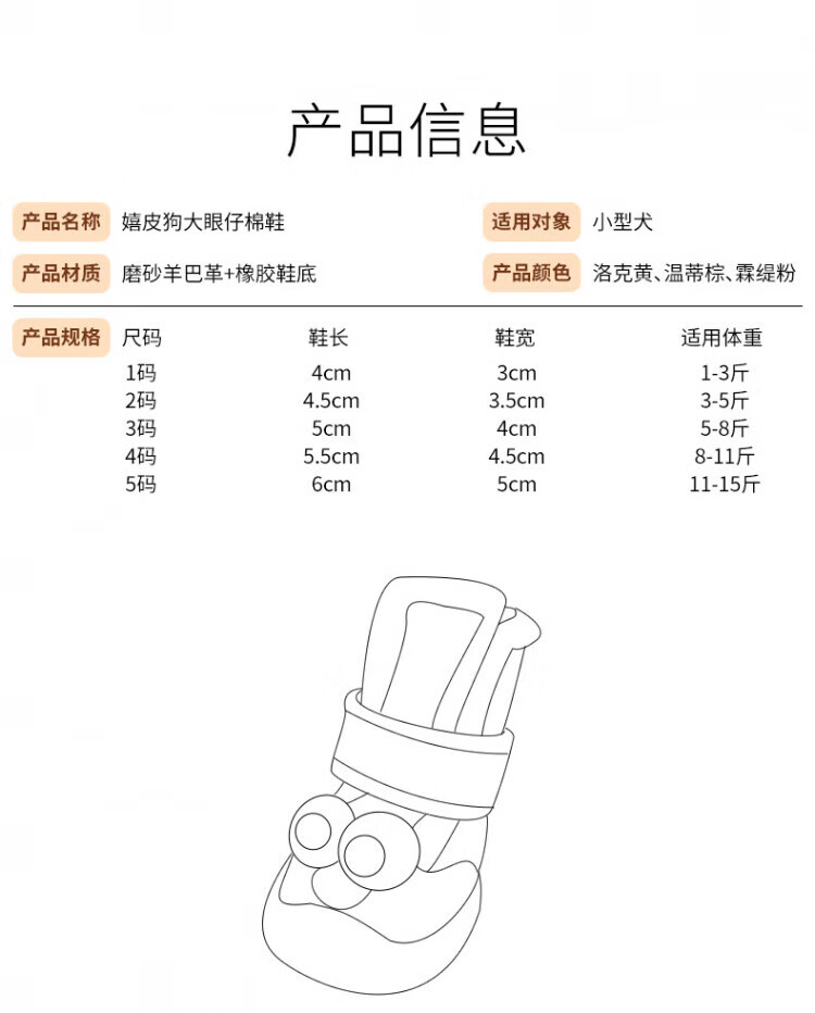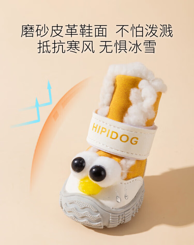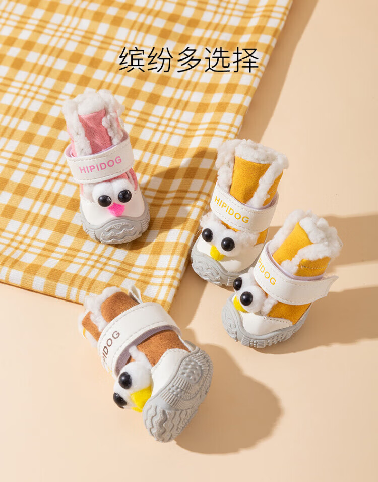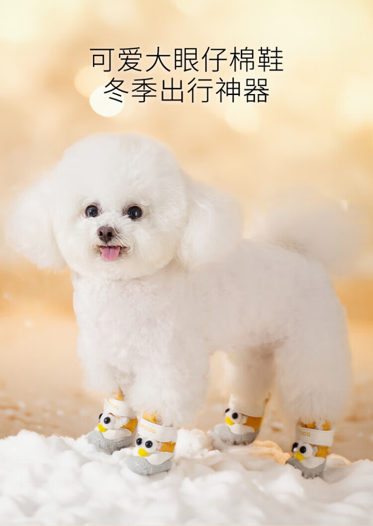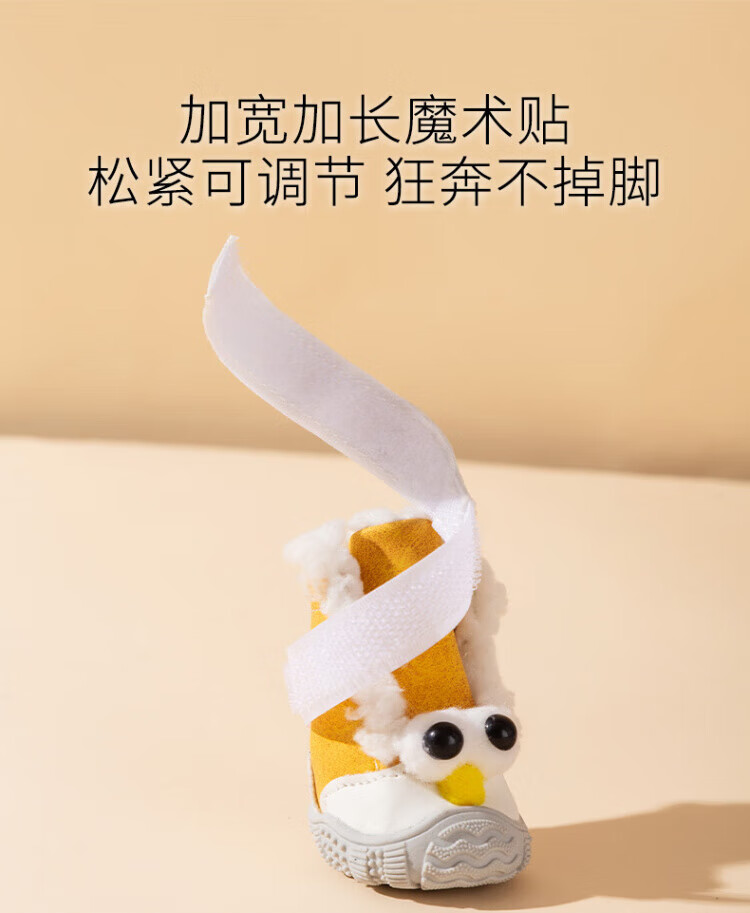 WCZ德国狗狗鞋子秋冬季加厚棉鞋脚套泰迪不掉脚宠物小型犬比熊保暖雪 黄色大眼萌内里加绒 4号(建议体重8-11斤)