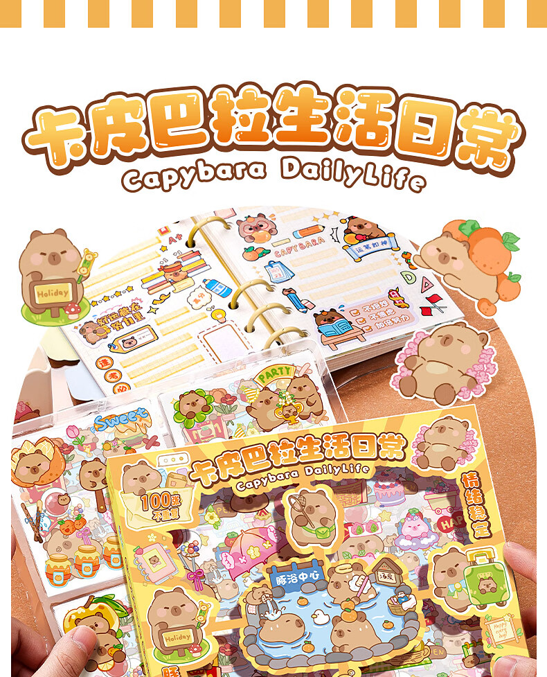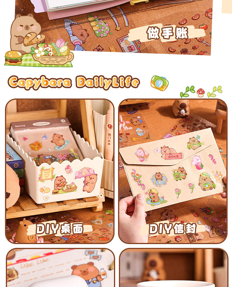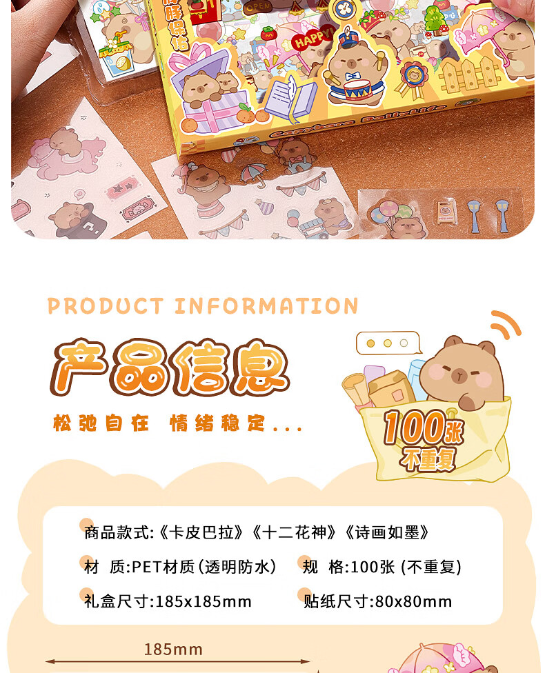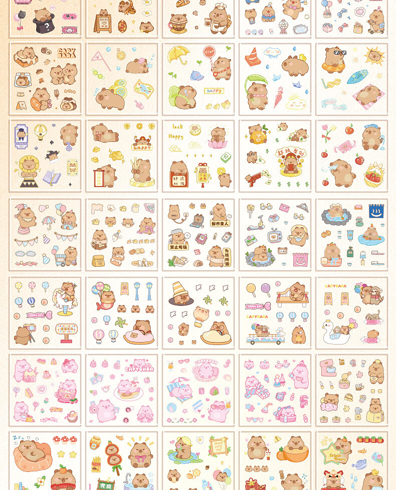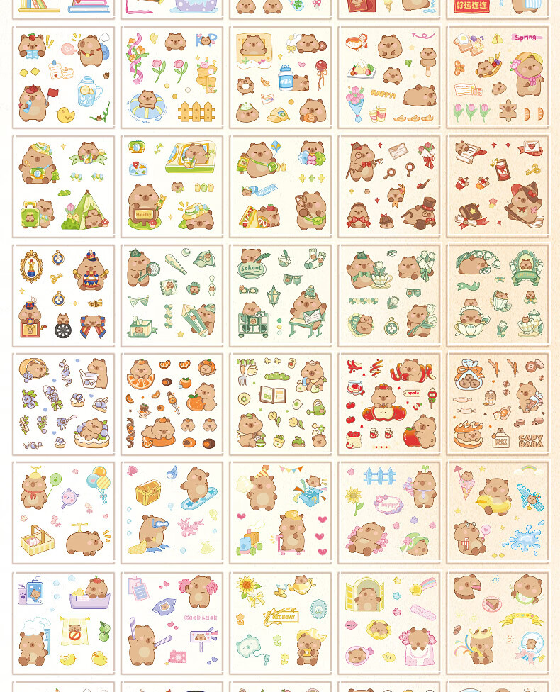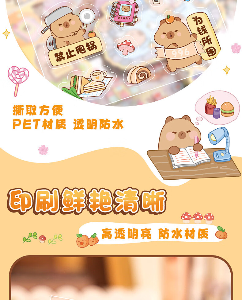 咔巴熊 手账贴纸高颜值透明 100张不重复可爱套装 咕卡贴画 卡皮巴拉生活日常