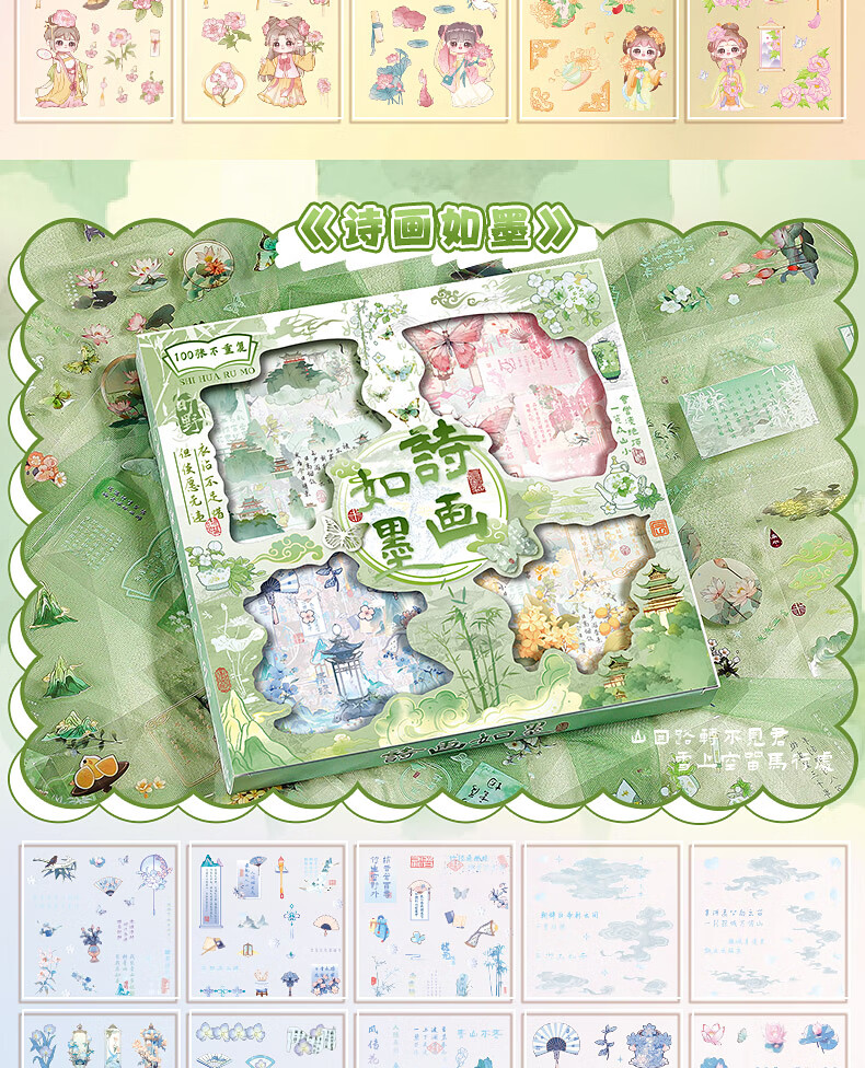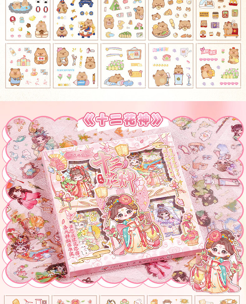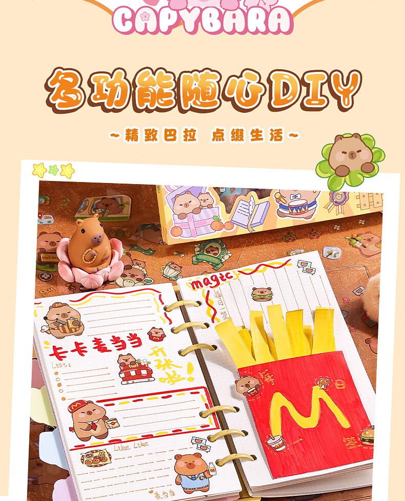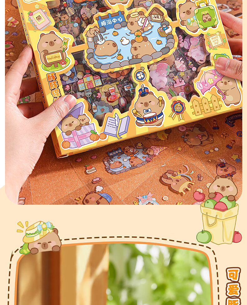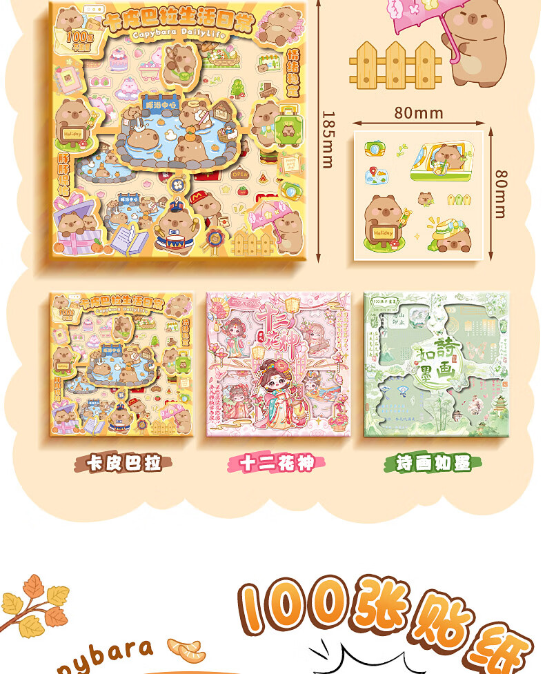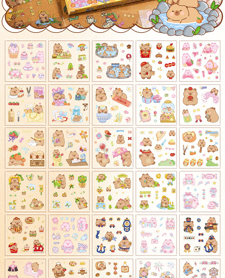 咔巴熊 手账贴纸高颜值透明 100张不重复可爱套装 咕卡贴画 卡皮巴拉生活日常