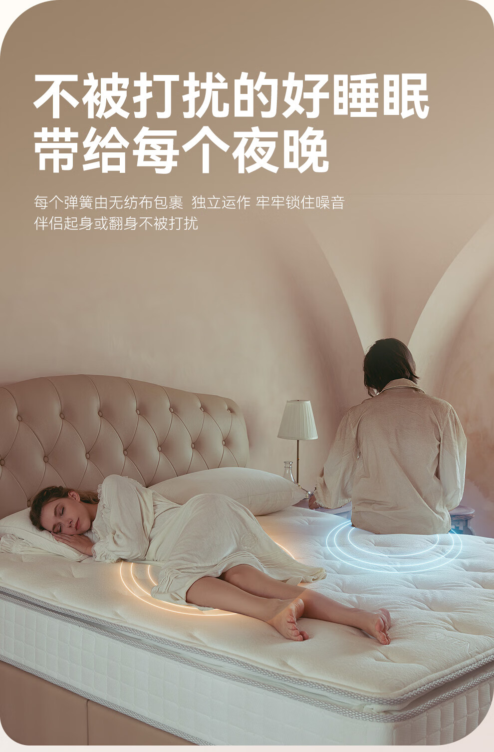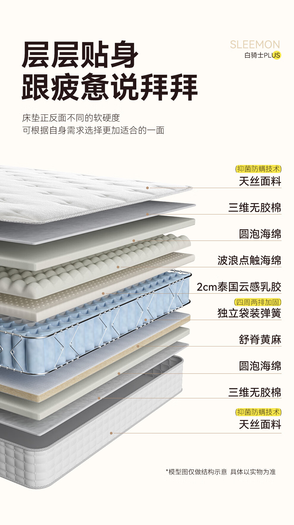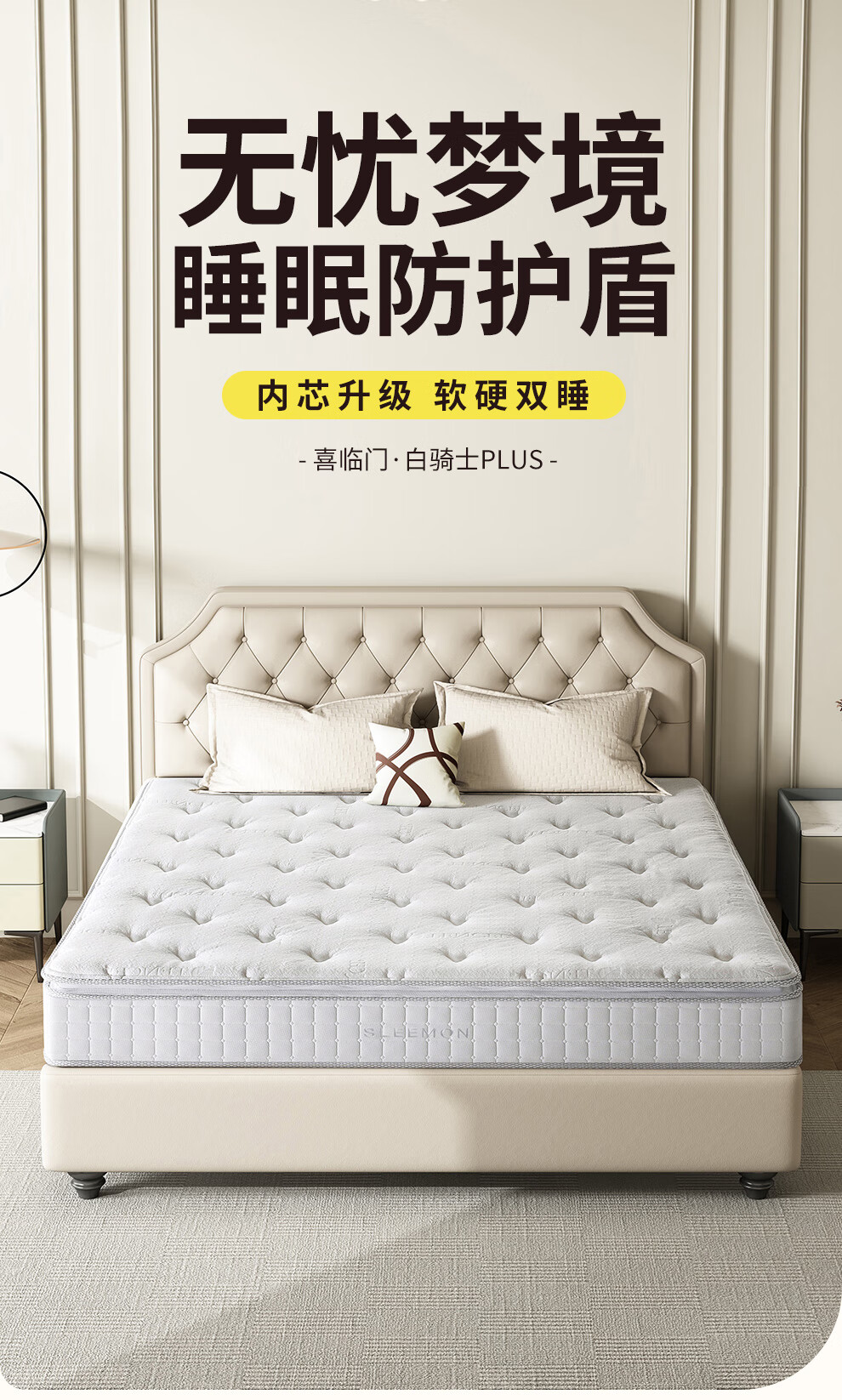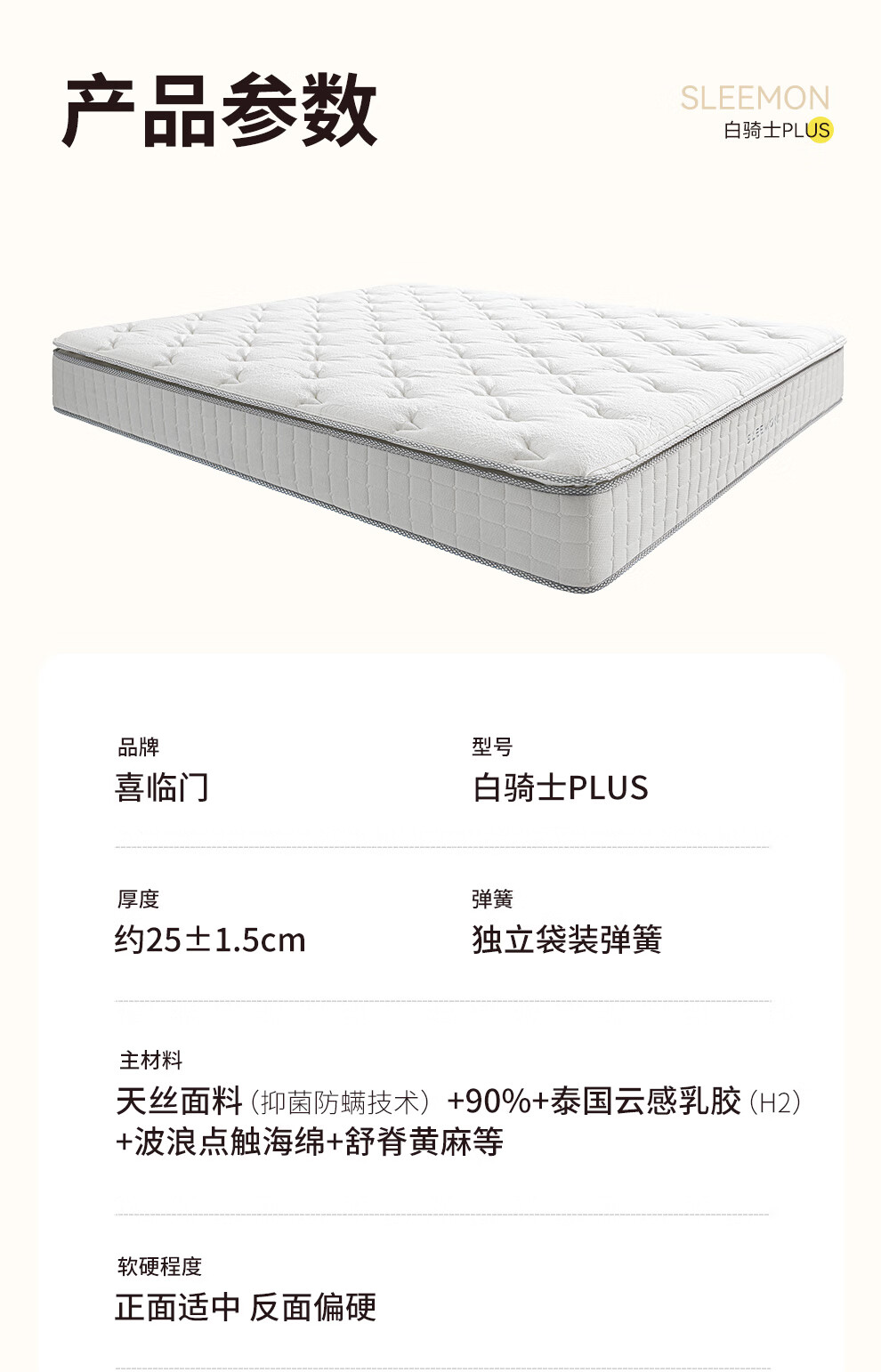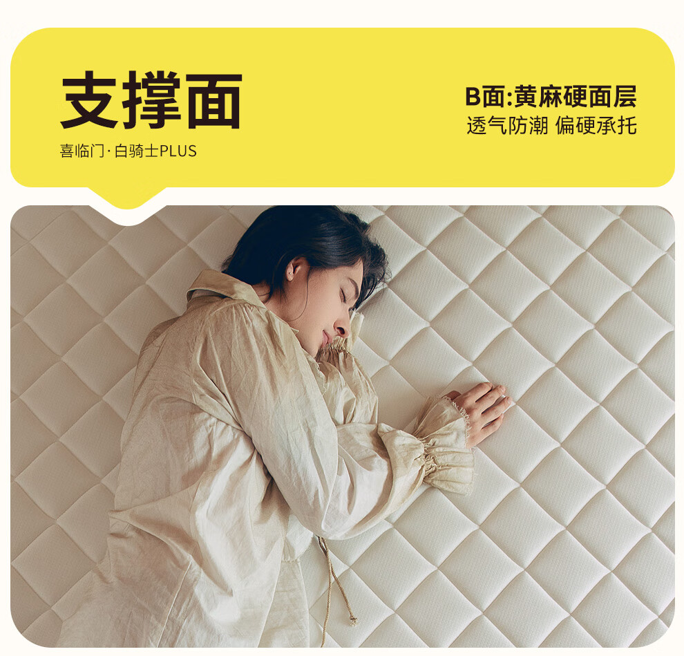 喜临门床垫2cm高纯乳胶独袋弹簧舒脊黄麻床垫白骑士plus2x2.2米软硬适中