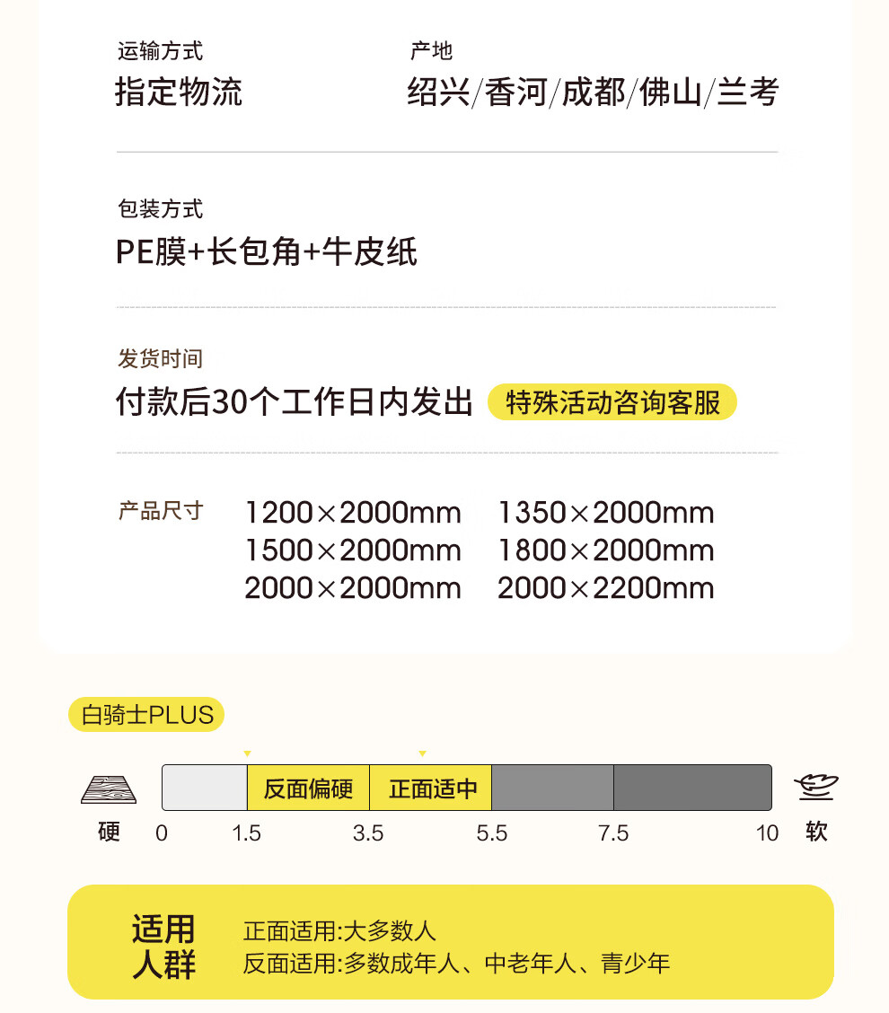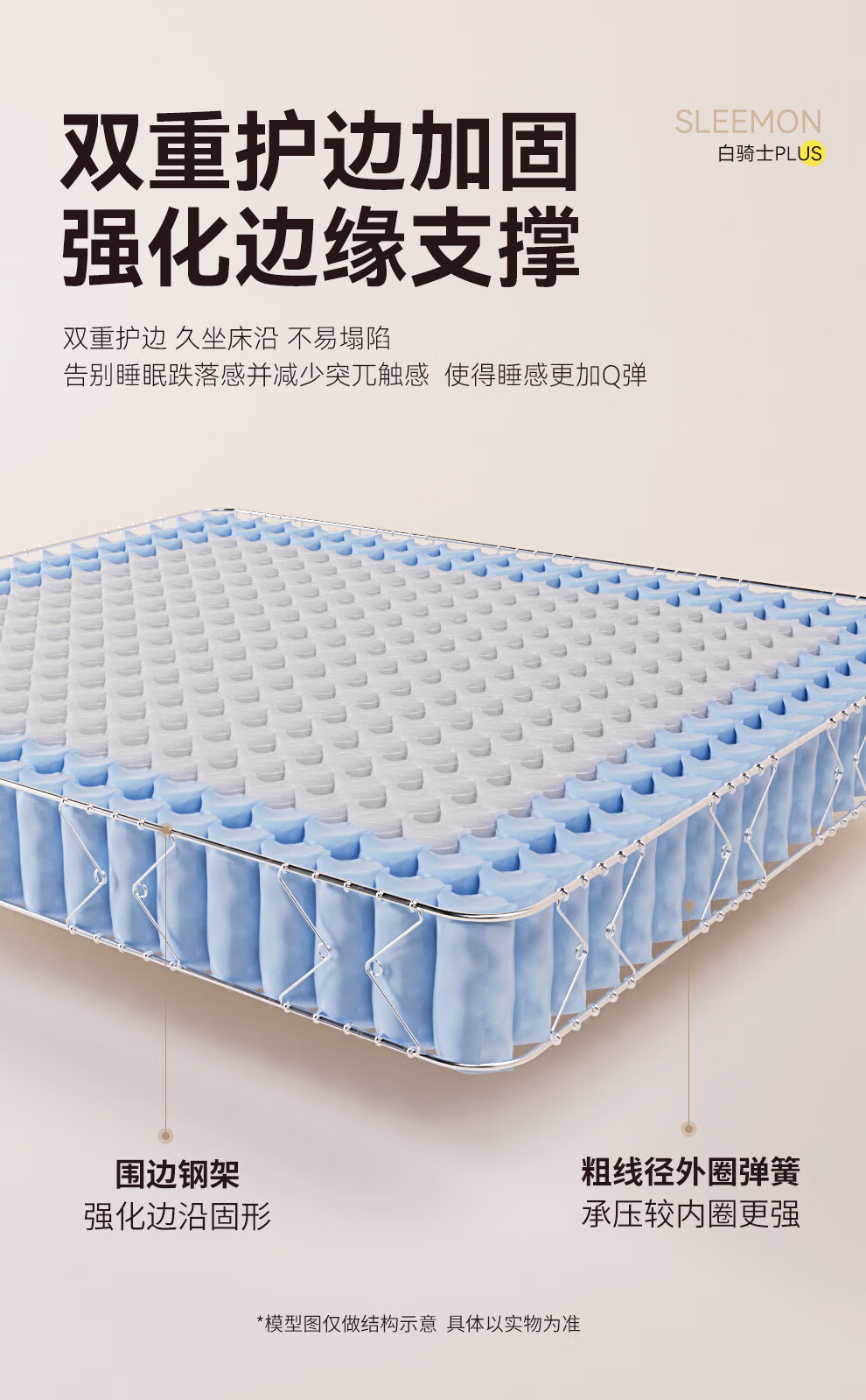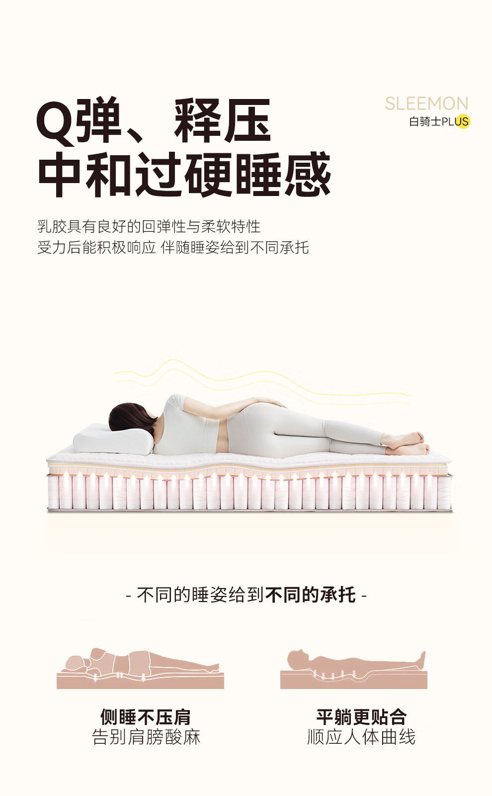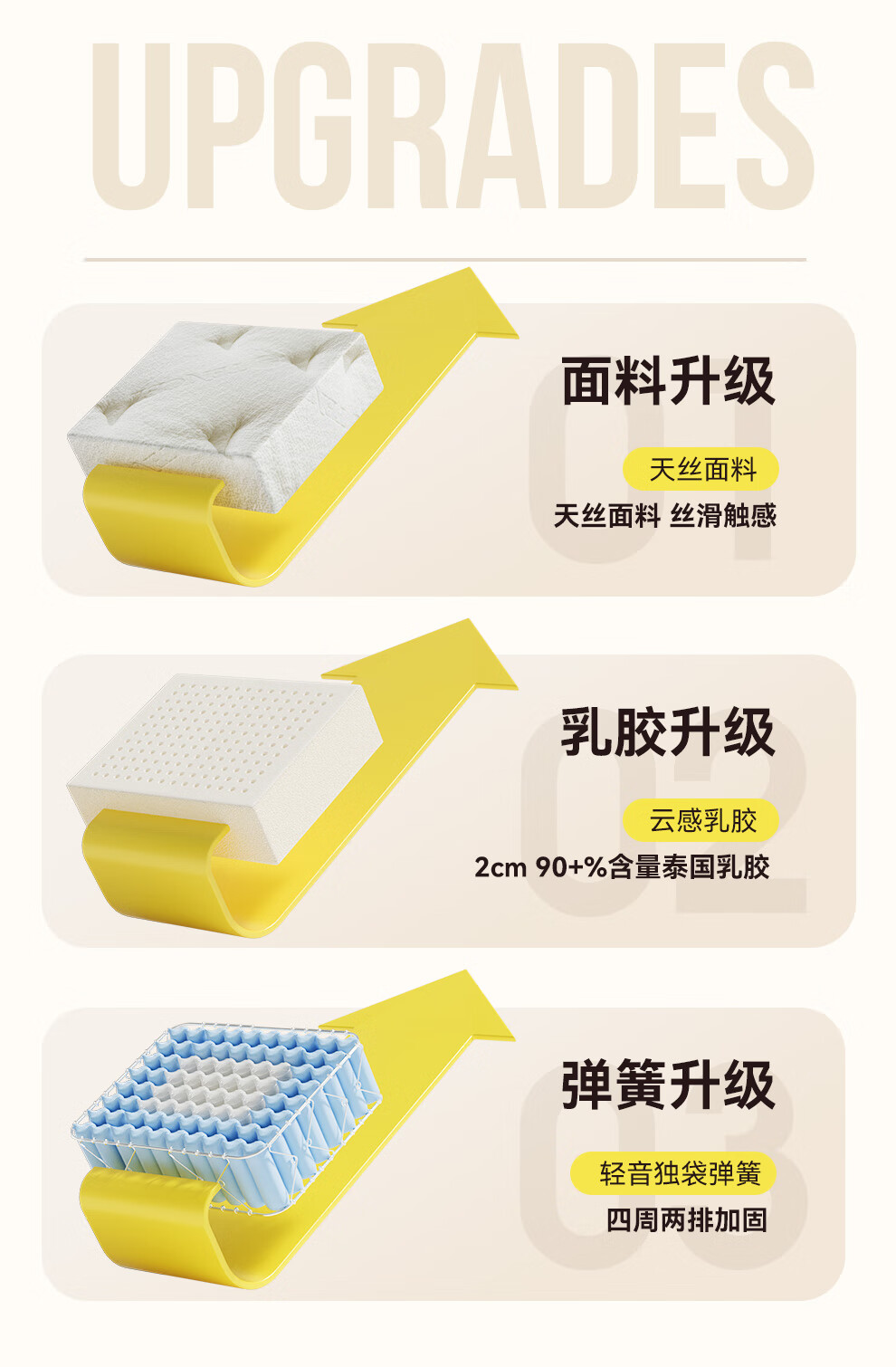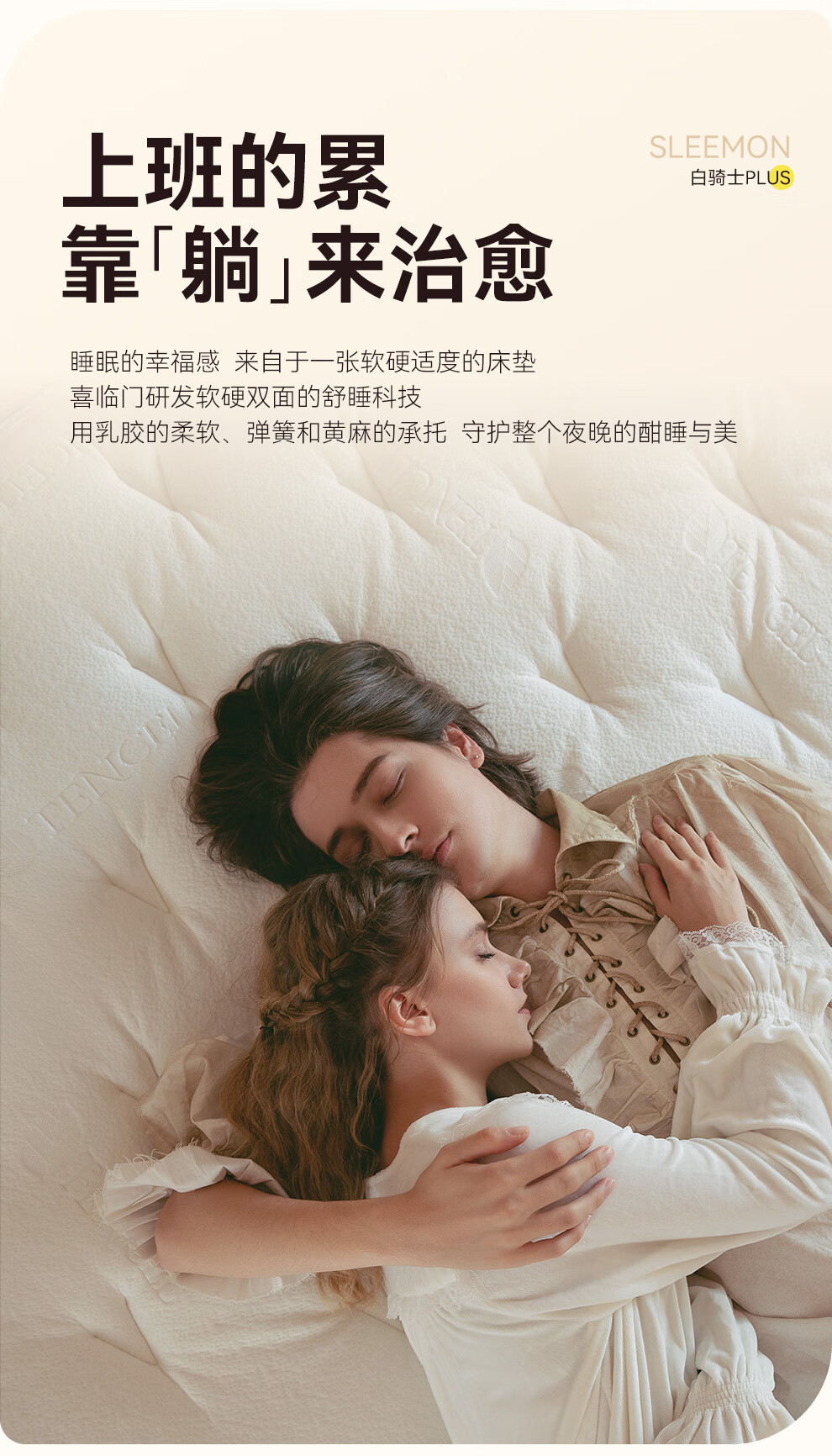 喜临门床垫2cm高纯乳胶独袋弹簧舒脊黄麻床垫白骑士plus2x2.2米软硬适中