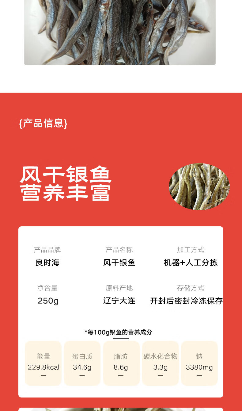 良时海 大连风干银鱼 净重250g 源头直发 小银鱼银针鱼 干货 煎炸鲜香