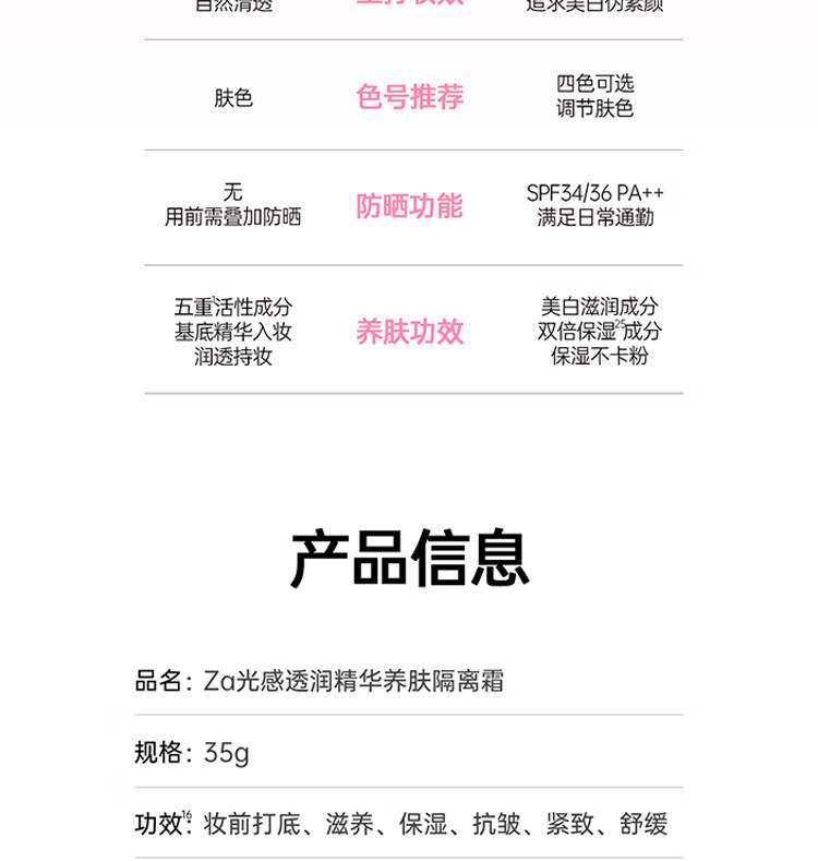 姬芮国庆中秋送礼【屈臣氏】Za光感透润精华养肤隔离霜 5g