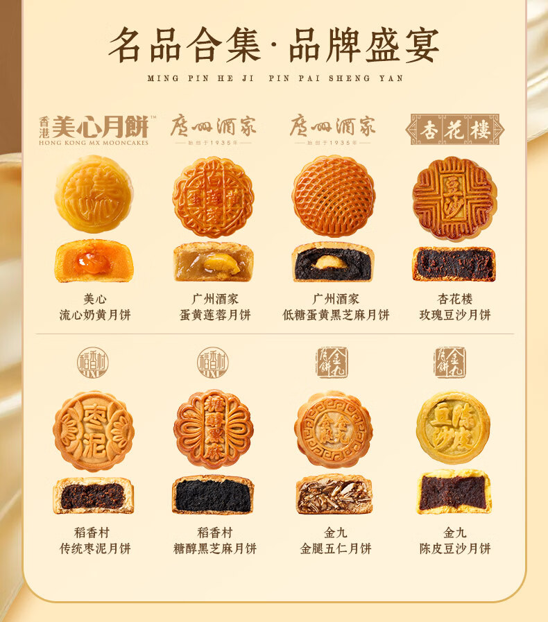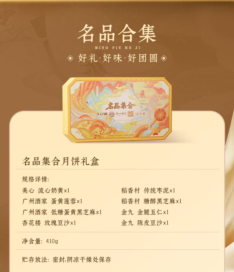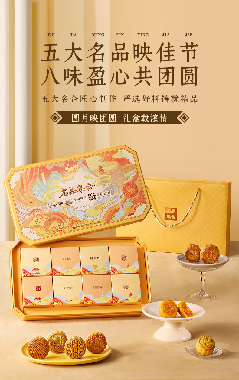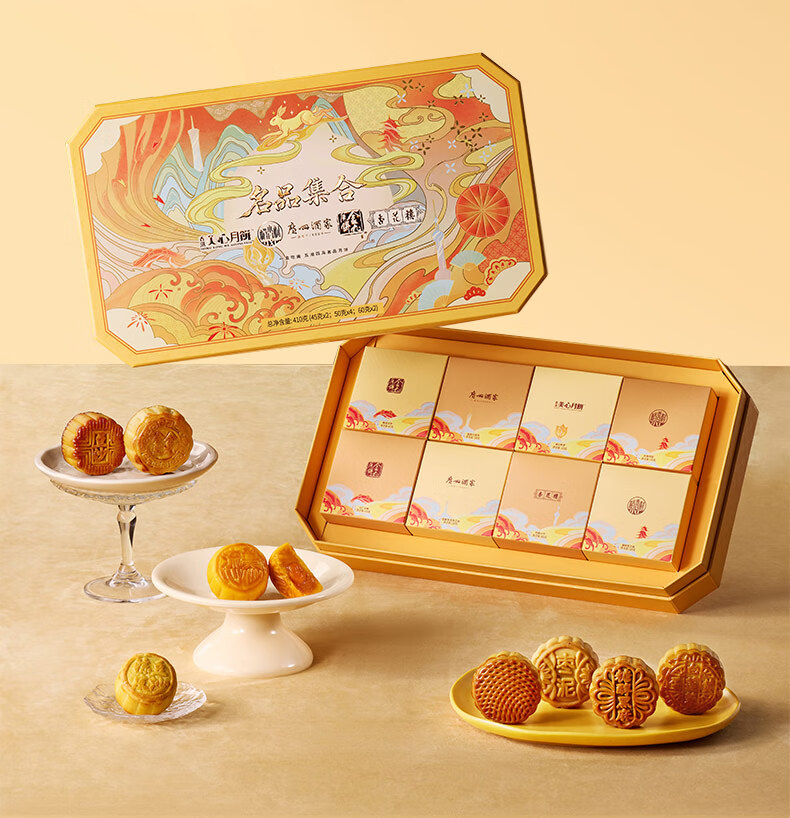 名品集合五大名品月饼礼盒8饼8味410g美心流心奶黄广州酒家蛋黄莲蓉