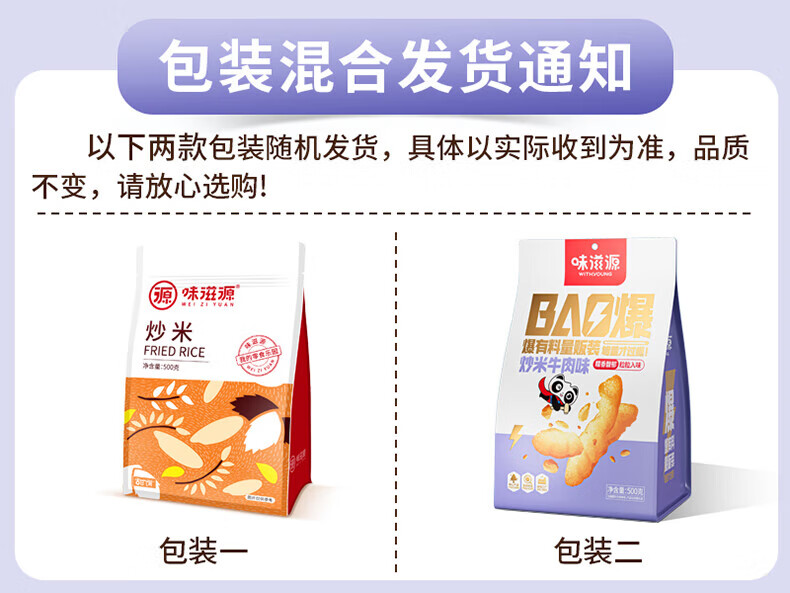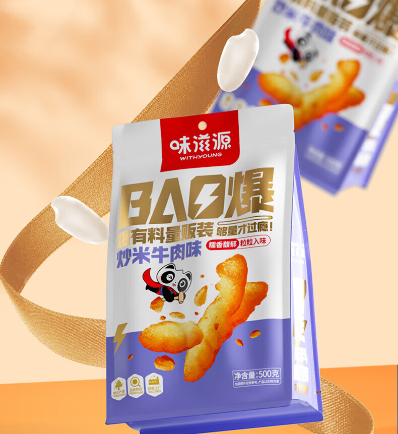味滋源牛肉味炒米袋装香脆炒货追剧解馋怀旧零食休闲零食地方特产 500g/袋 1袋装
