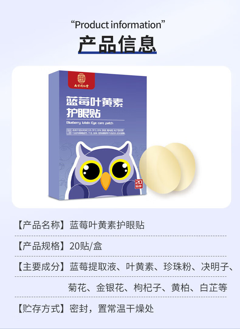 浩敬堂叶黄素护眼贴舒缓疲劳成人小孩疼痛酸胀学生熬夜护眼贴 叶黄素护眼贴 20片 5盒 .