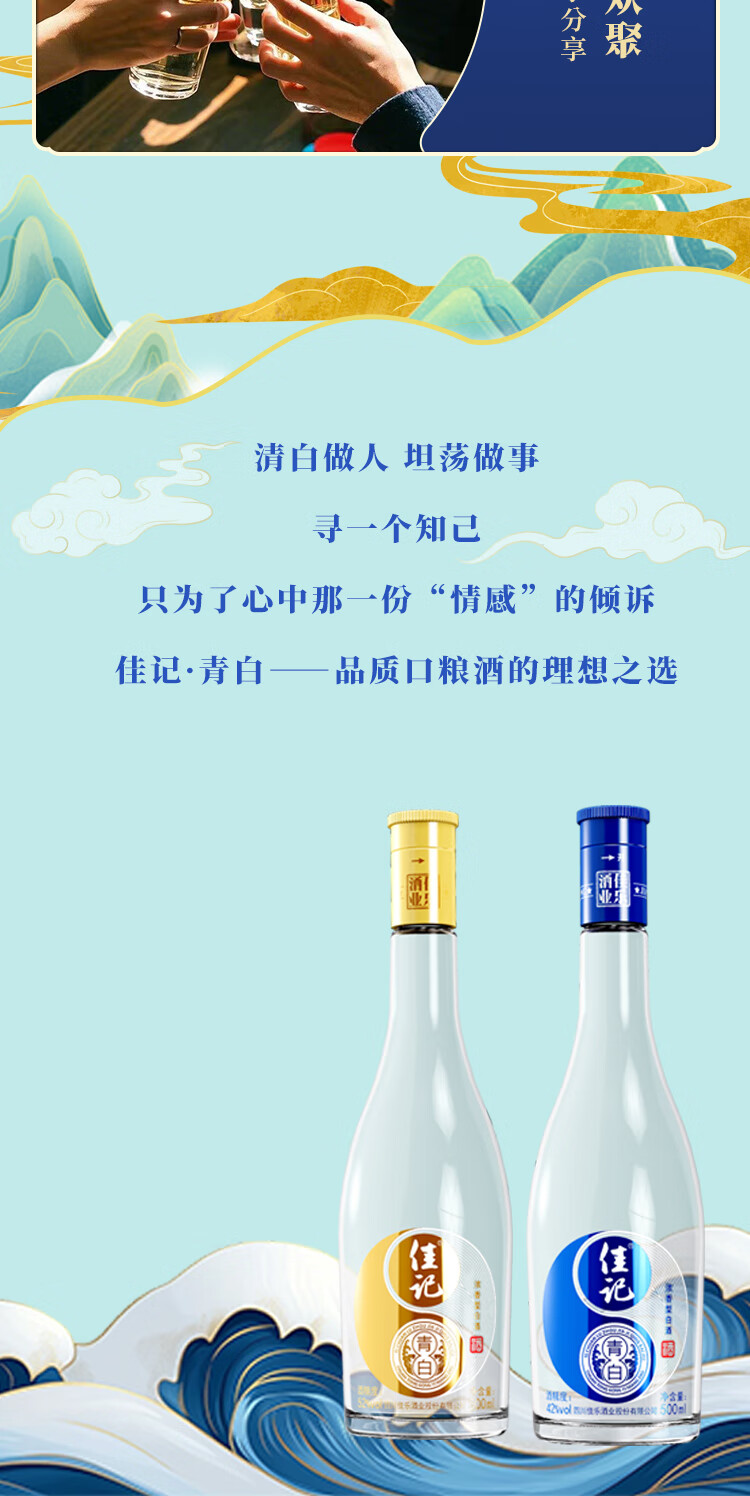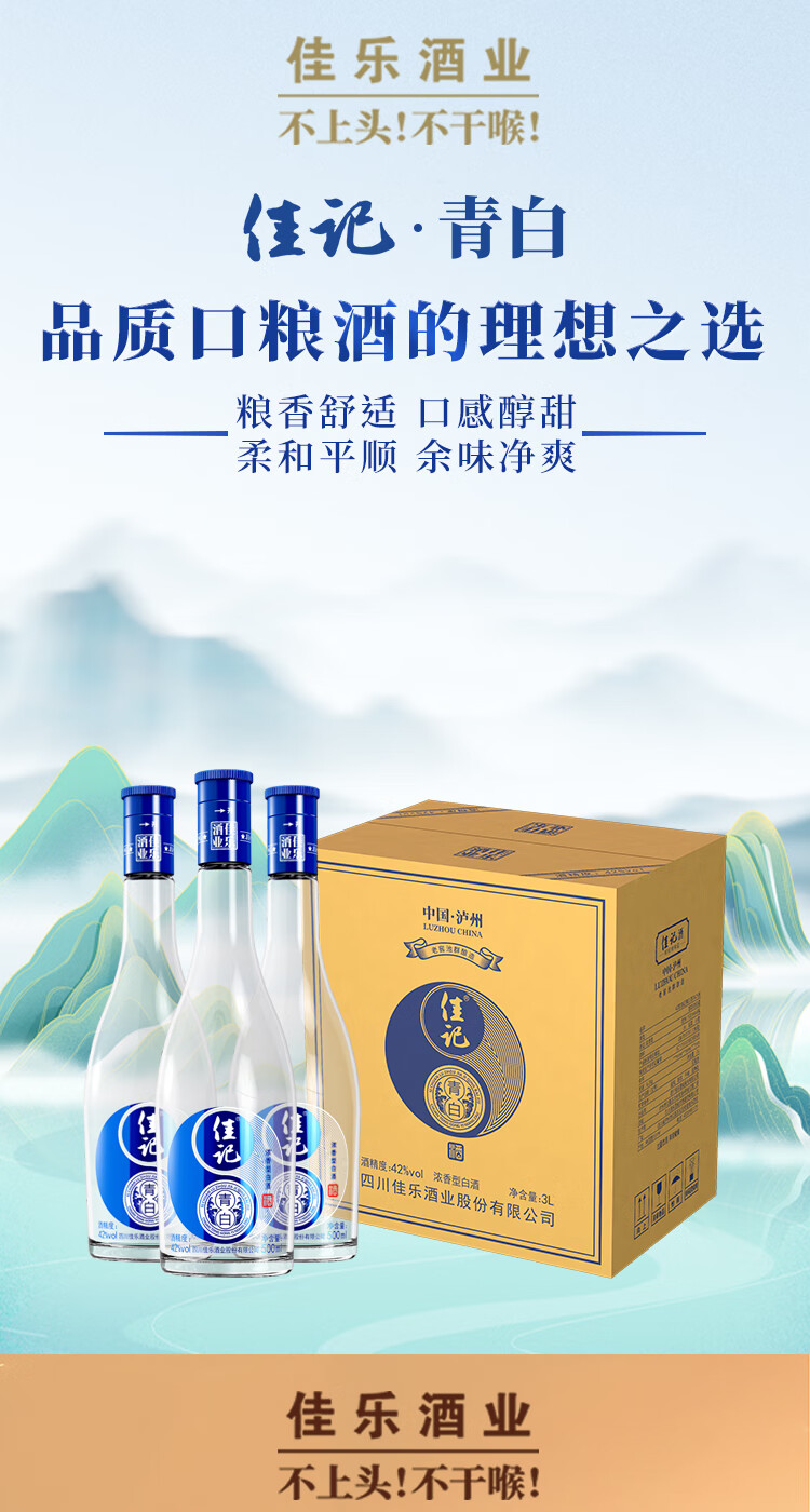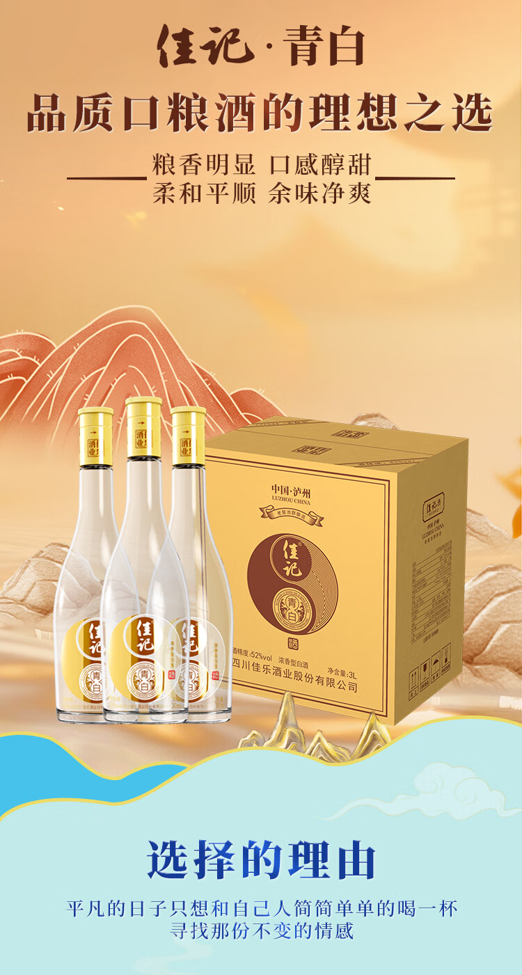 佳记【口粮推荐】泸州佳记白酒 青白 52度高粱浓香白酒 自饮推荐 经典 52度 500mL 1瓶 【单瓶试饮】
