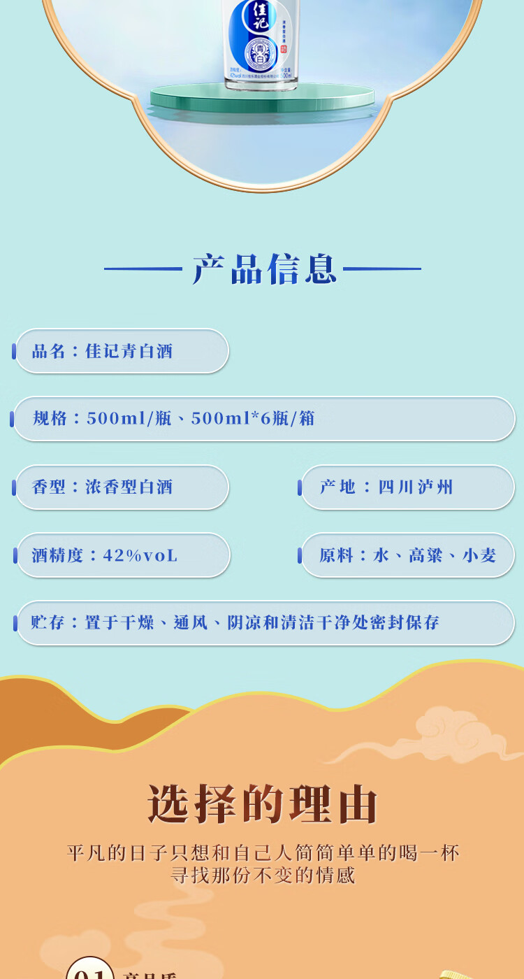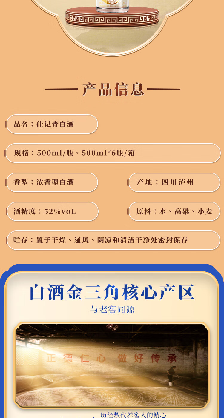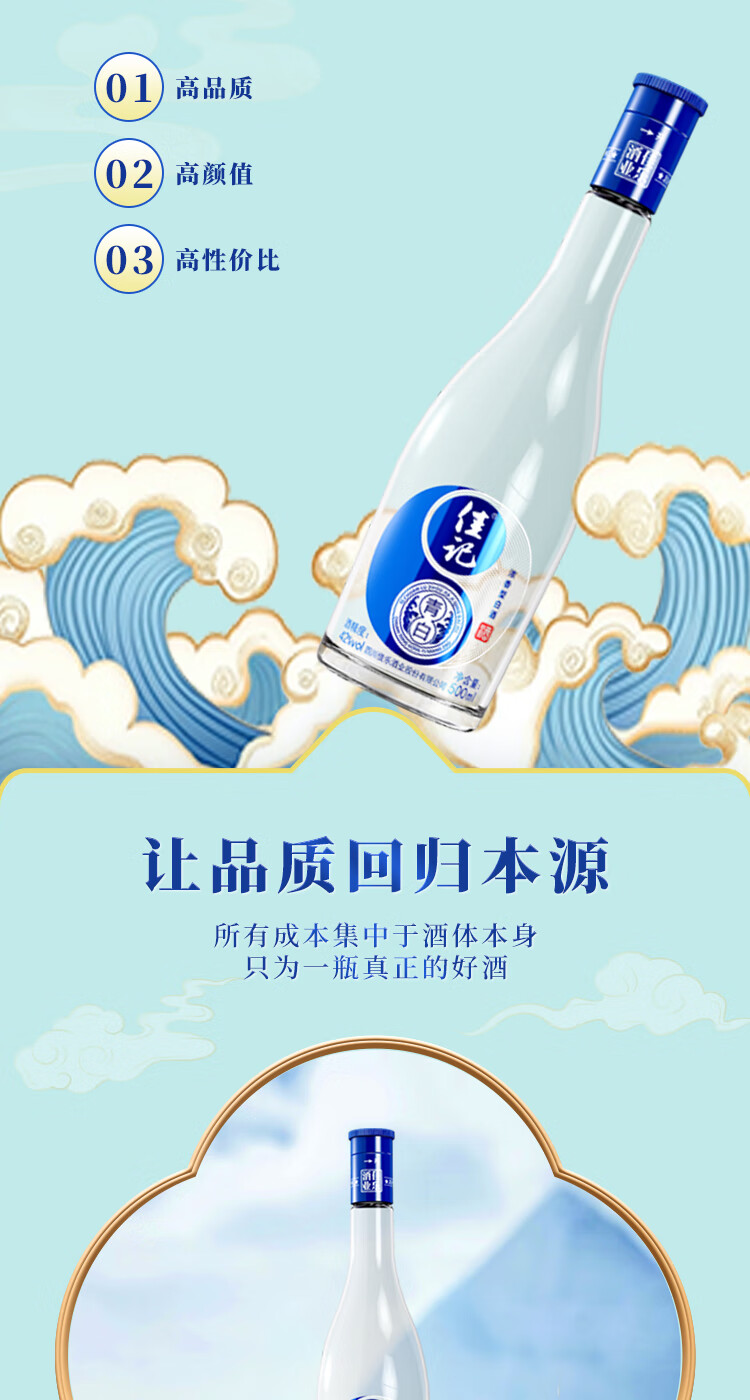 佳记【口粮推荐】泸州佳记白酒 青白 52度高粱浓香白酒 自饮推荐 经典 52度 500mL 1瓶 【单瓶试饮】