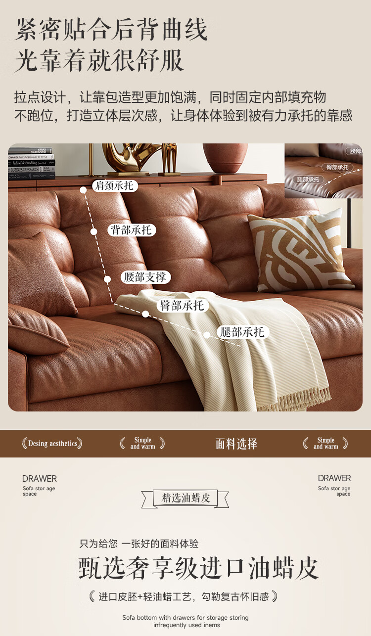 莘联广东佛山新款油蜡皮可折叠沙发床两用一体小户型客厅复古伸缩沙发 外径:2.17m(无储物)S+级油蜡皮 舒适乳胶款(适中偏软)