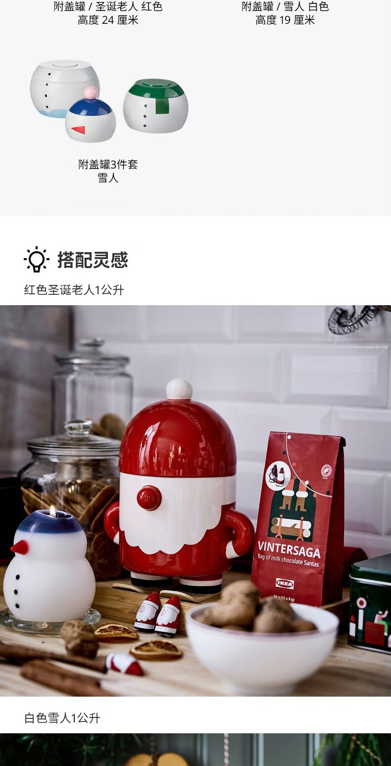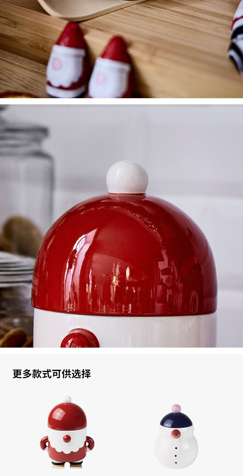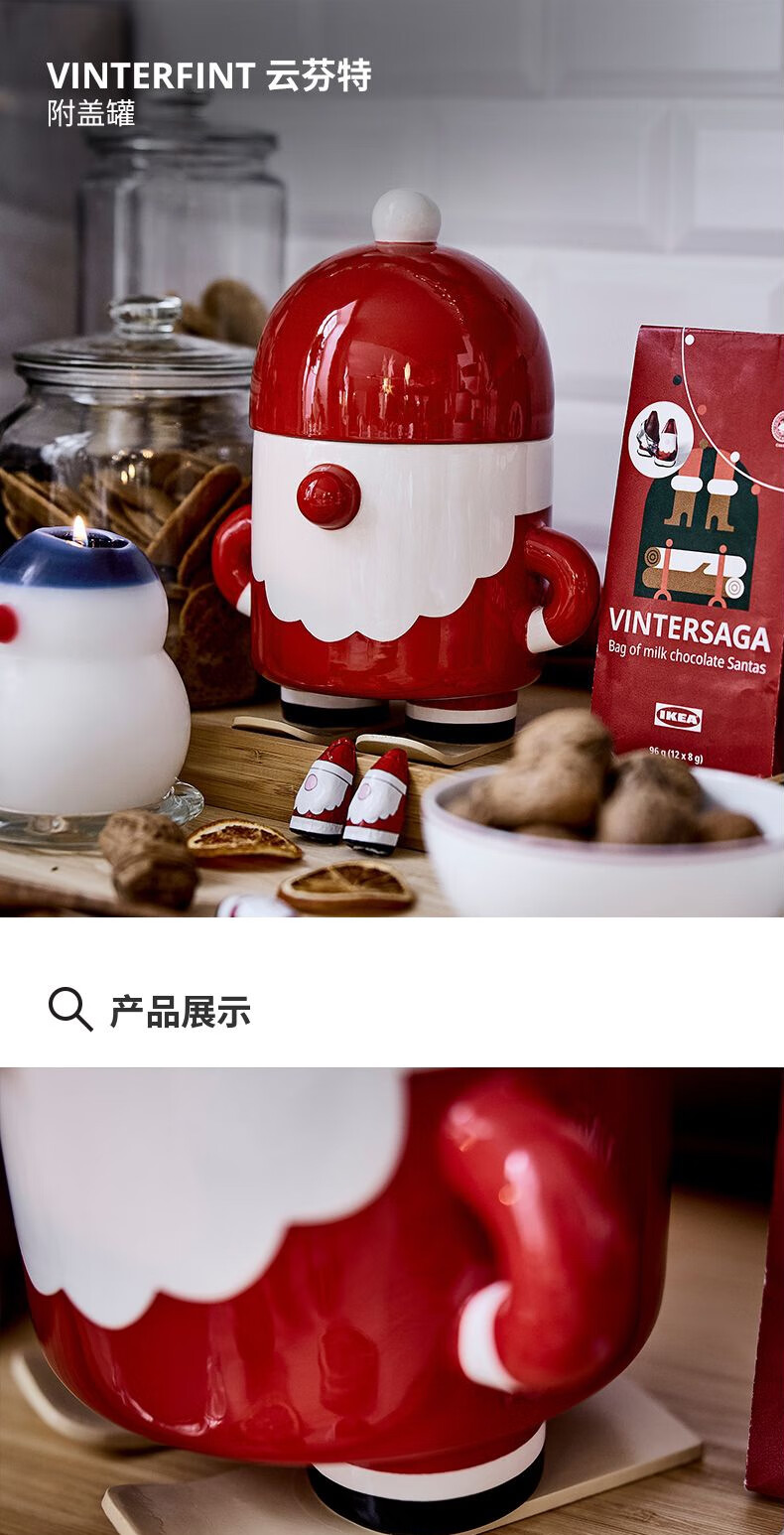 宜家(IKEA)【新品】VINTERFINT云芬特附盖罐糖果罐零食罐桌面储物 圣诞老人红色附盖罐1.0L