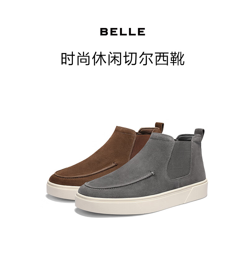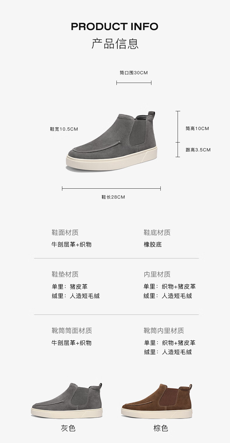 百丽户外休闲切尔西靴男靴2025新款冬季厚底时尚潮搭短靴加绒A2224DD5 棕色-单里 38 (240mm)