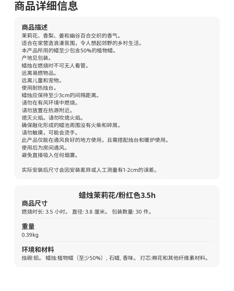 宜家(IKEA)顺手买一件LUGNARE卢纳勒香圆蜡烛3.5小时茉莉花粉红30件 蜡烛茉莉花/粉红色3.5h