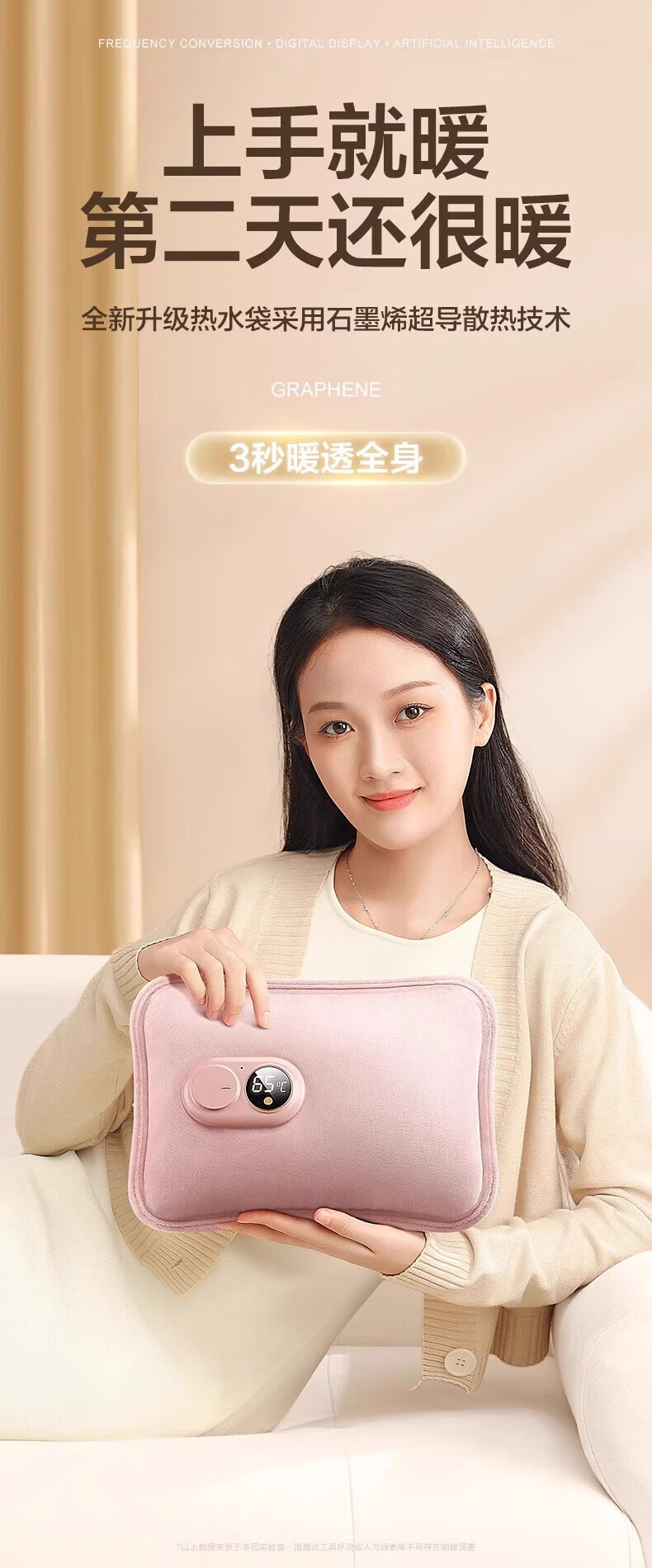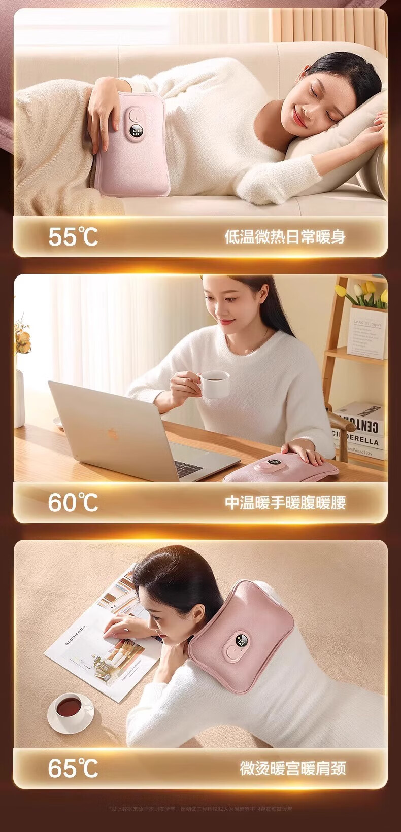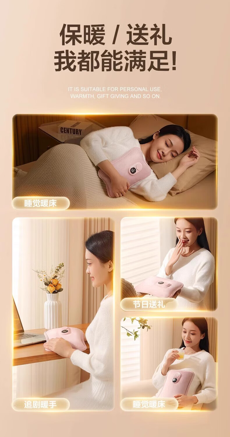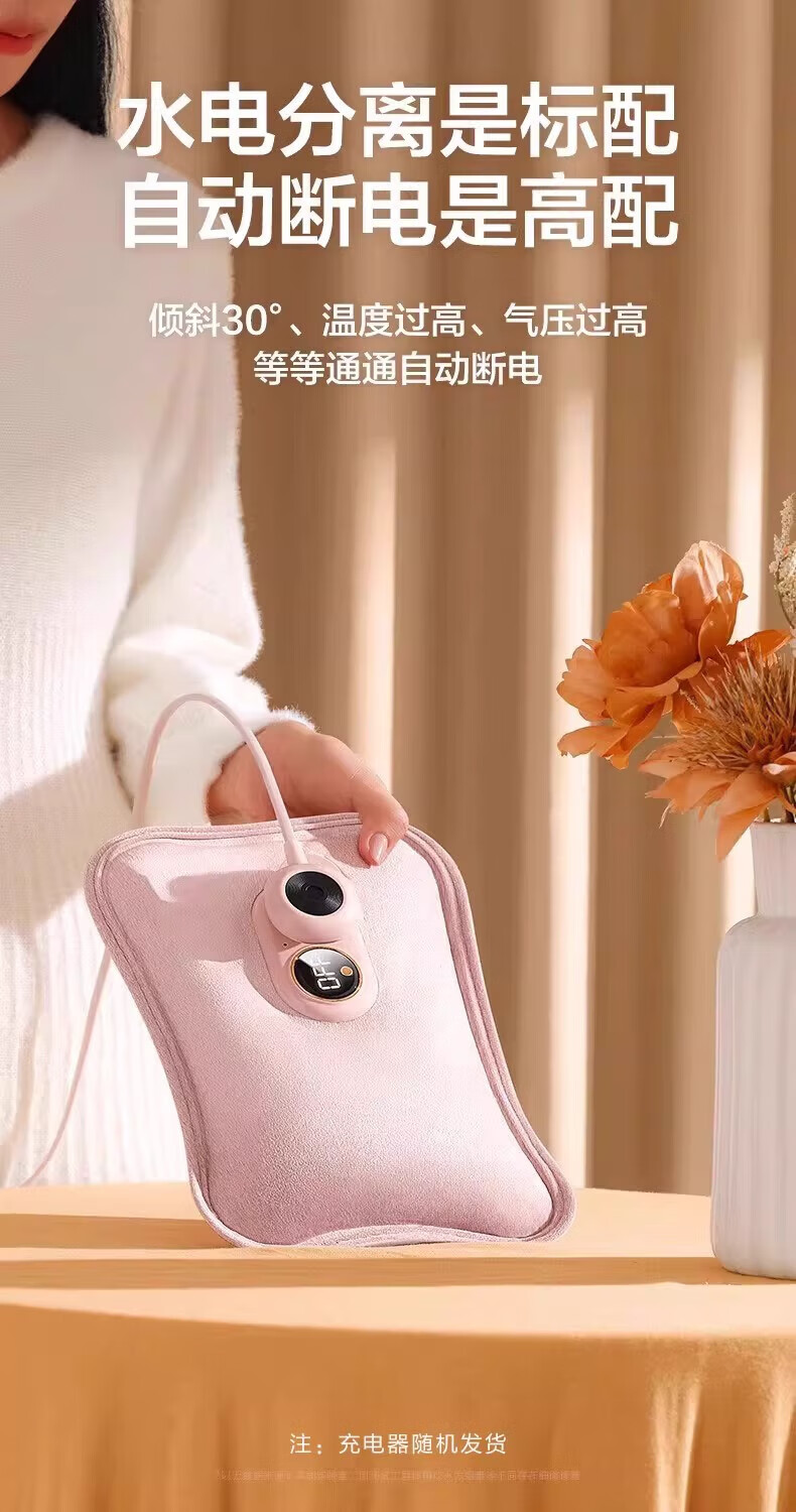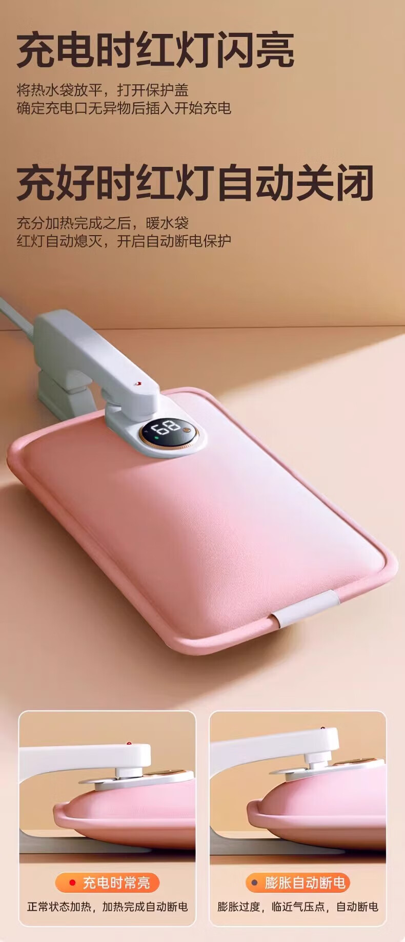 AILUKI日本高端热水袋充电式防爆电暖水袋暖手女暖宝宝敷肚子专用正品 莫兰粉【升级款暖手热水袋+智能充电器】 进口丝绒/水电分离
