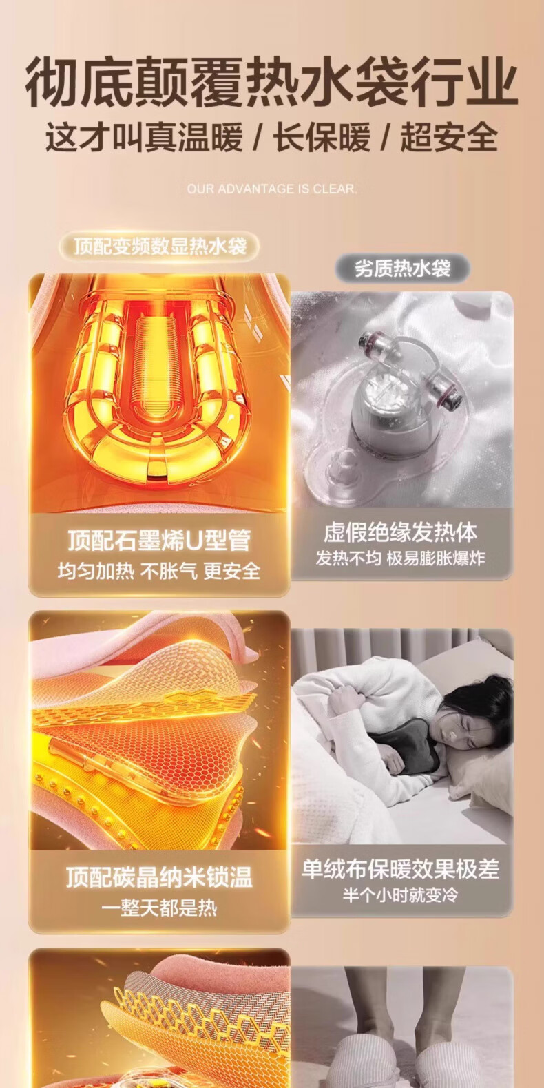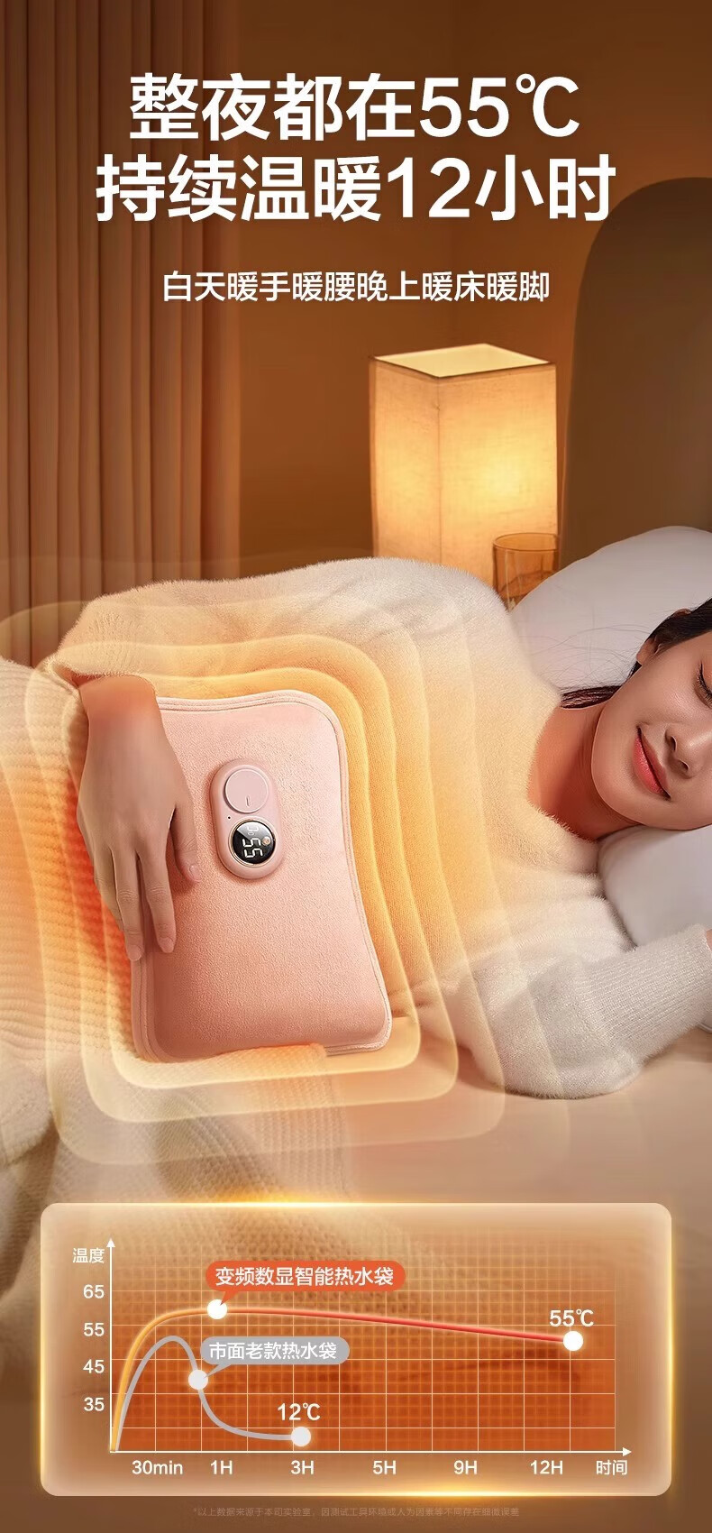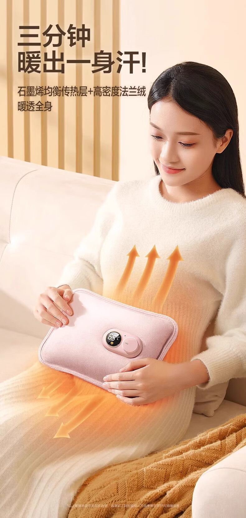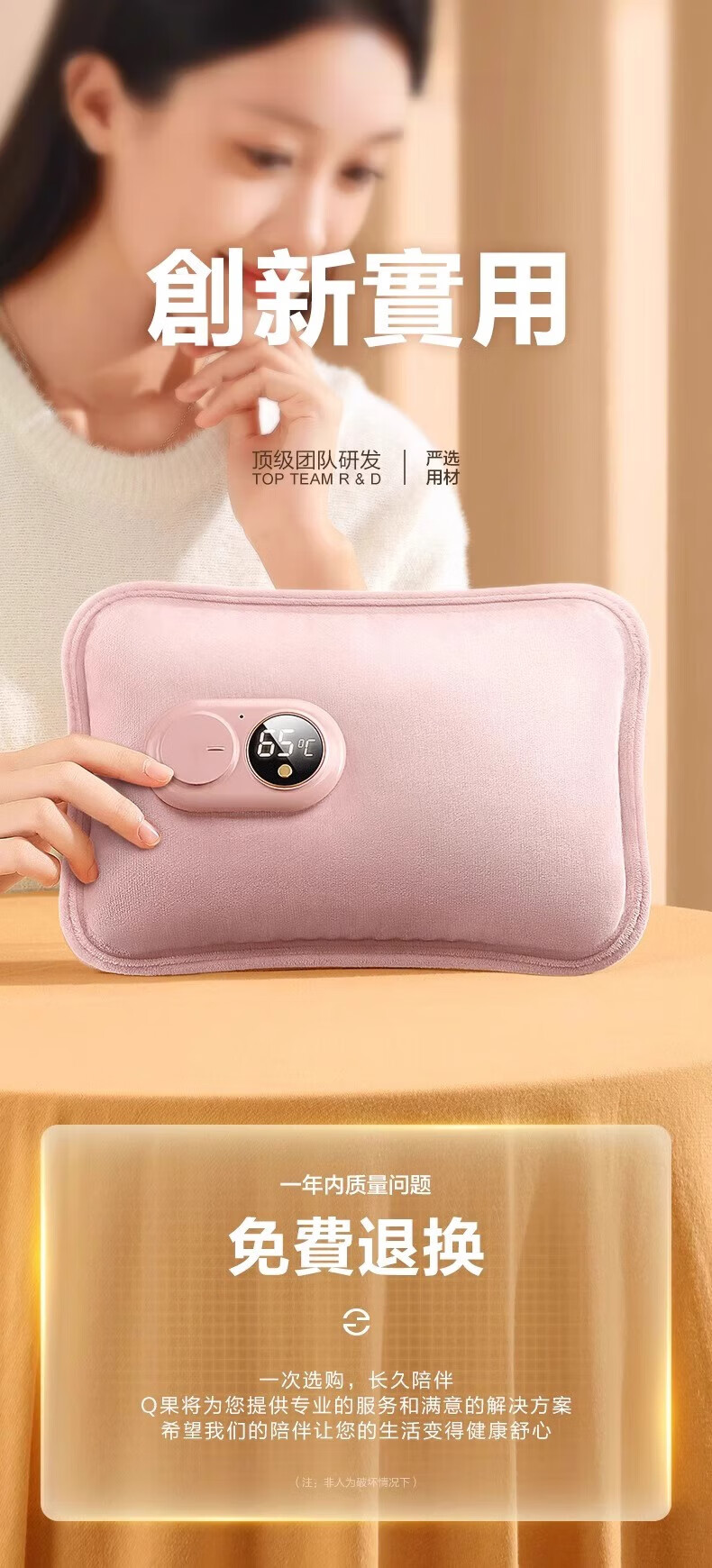 AILUKI日本高端热水袋充电式防爆电暖水袋暖手女暖宝宝敷肚子专用正品 莫兰粉【升级款暖手热水袋+智能充电器】 进口丝绒/水电分离
