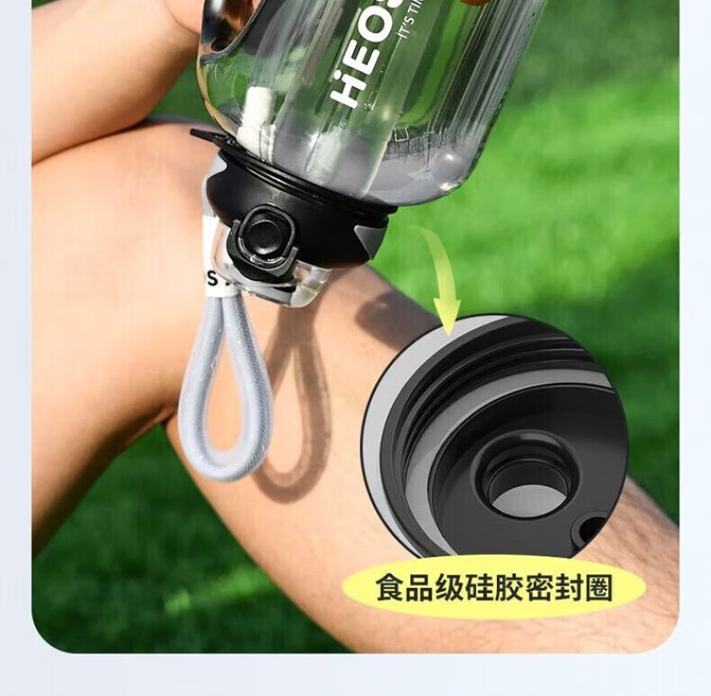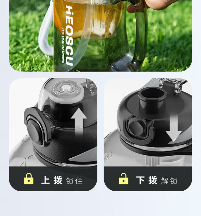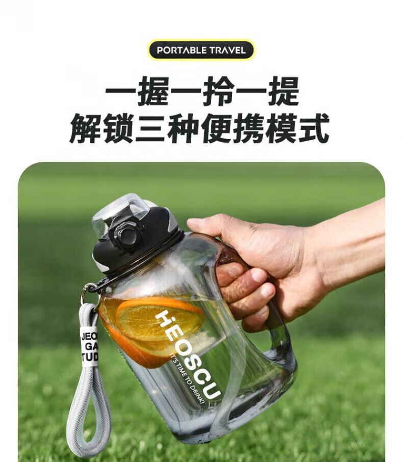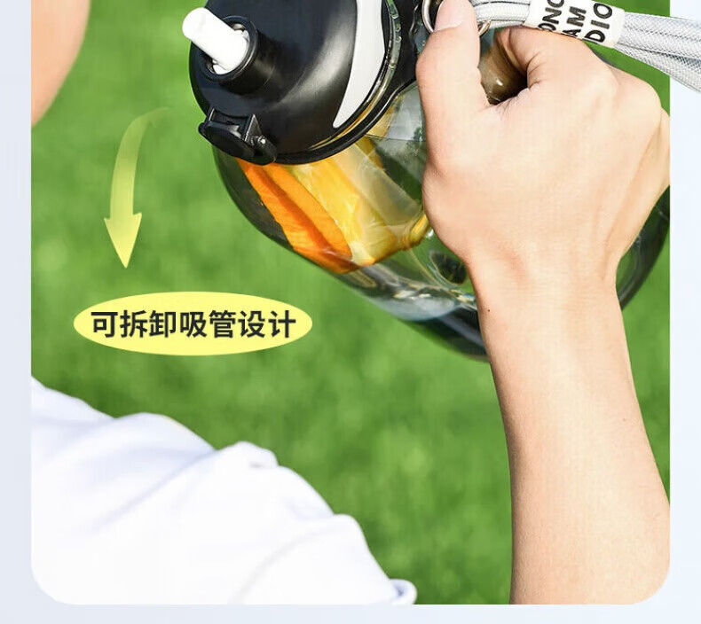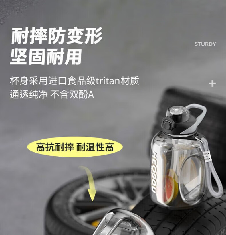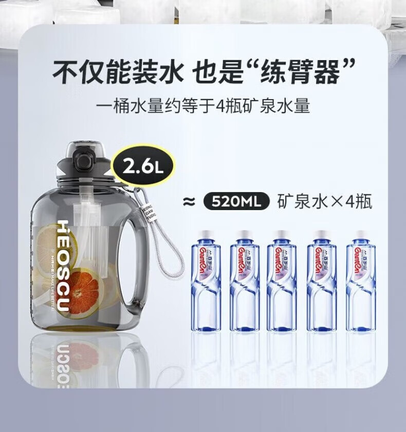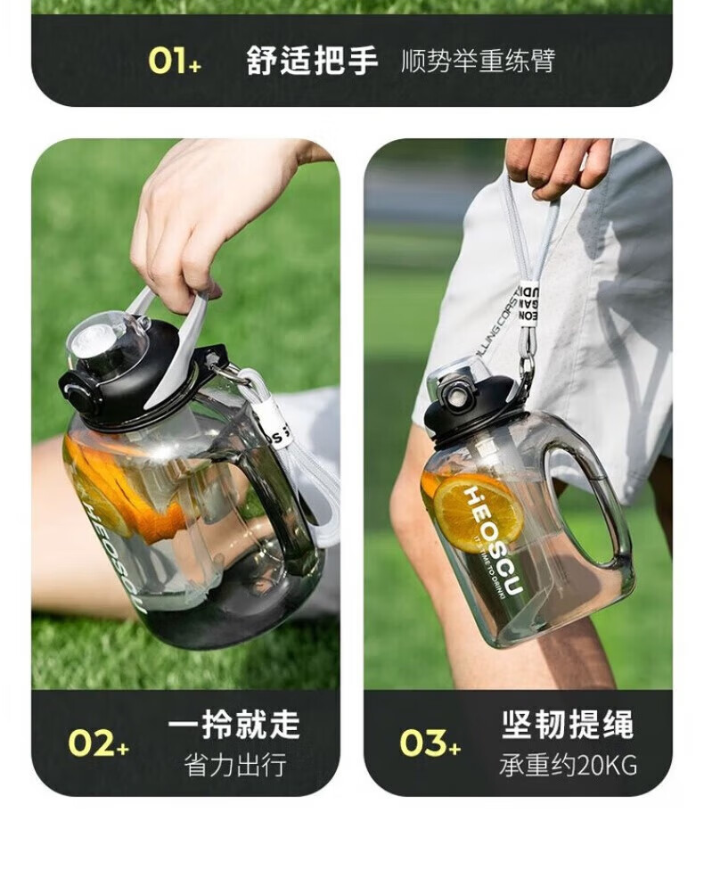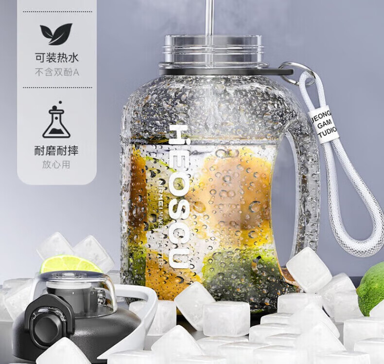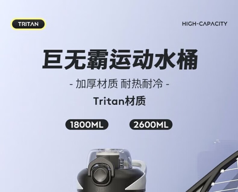 AILUKI日本水杯大容量耐高温吨杯吨桶夏天tritan新款男女运动健身便携 运动黑限量促销【Tritan/茶仓】 2600ML【双饮口/耐高温/提绳】