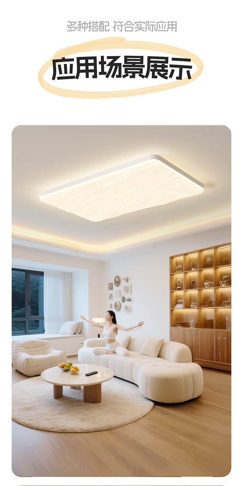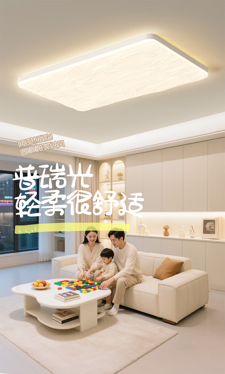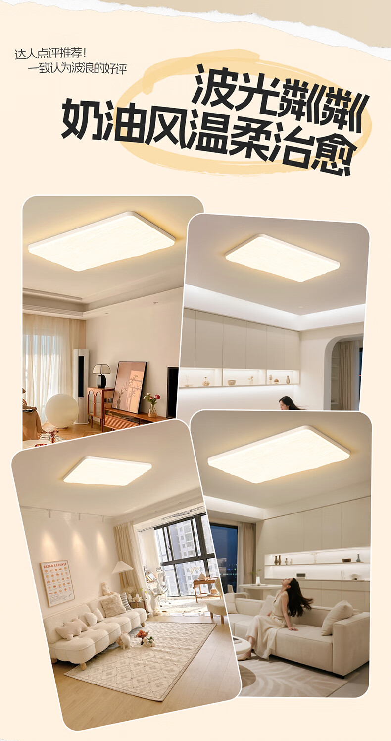 惠普客厅吸顶灯简约2025新款奶油风波浪全光谱护眼卧室灯全屋灯具套餐 180W 35㎡内适用 -105cm喵喵精灵