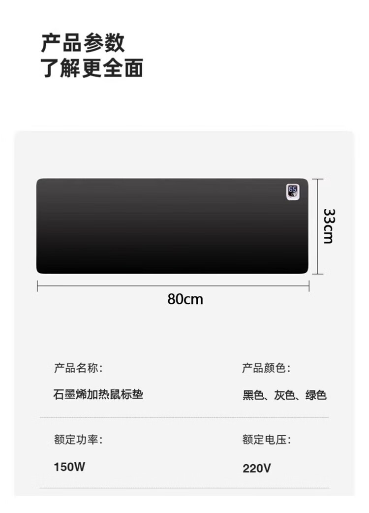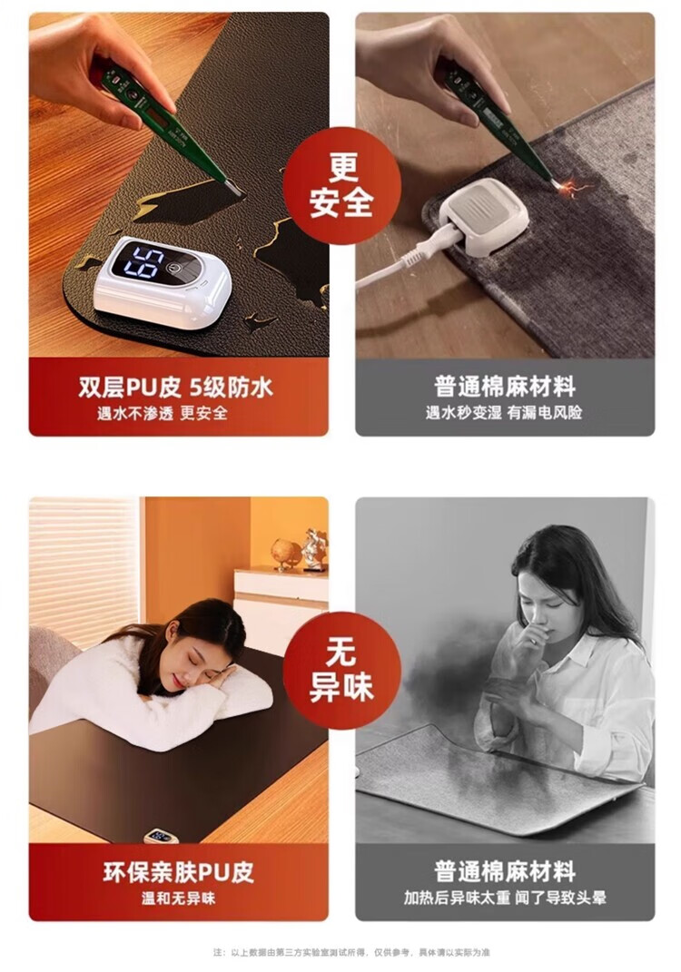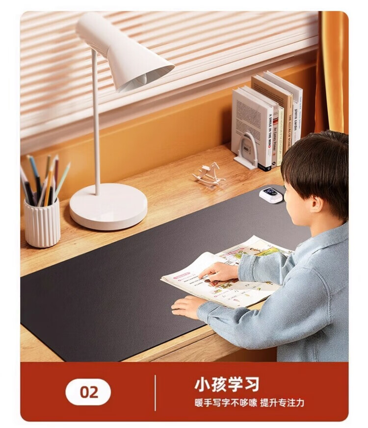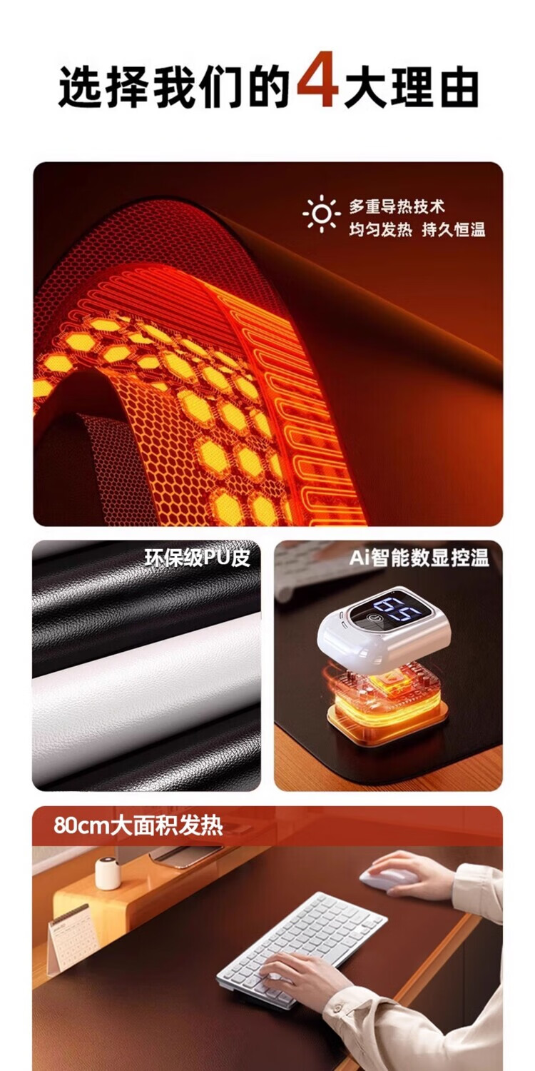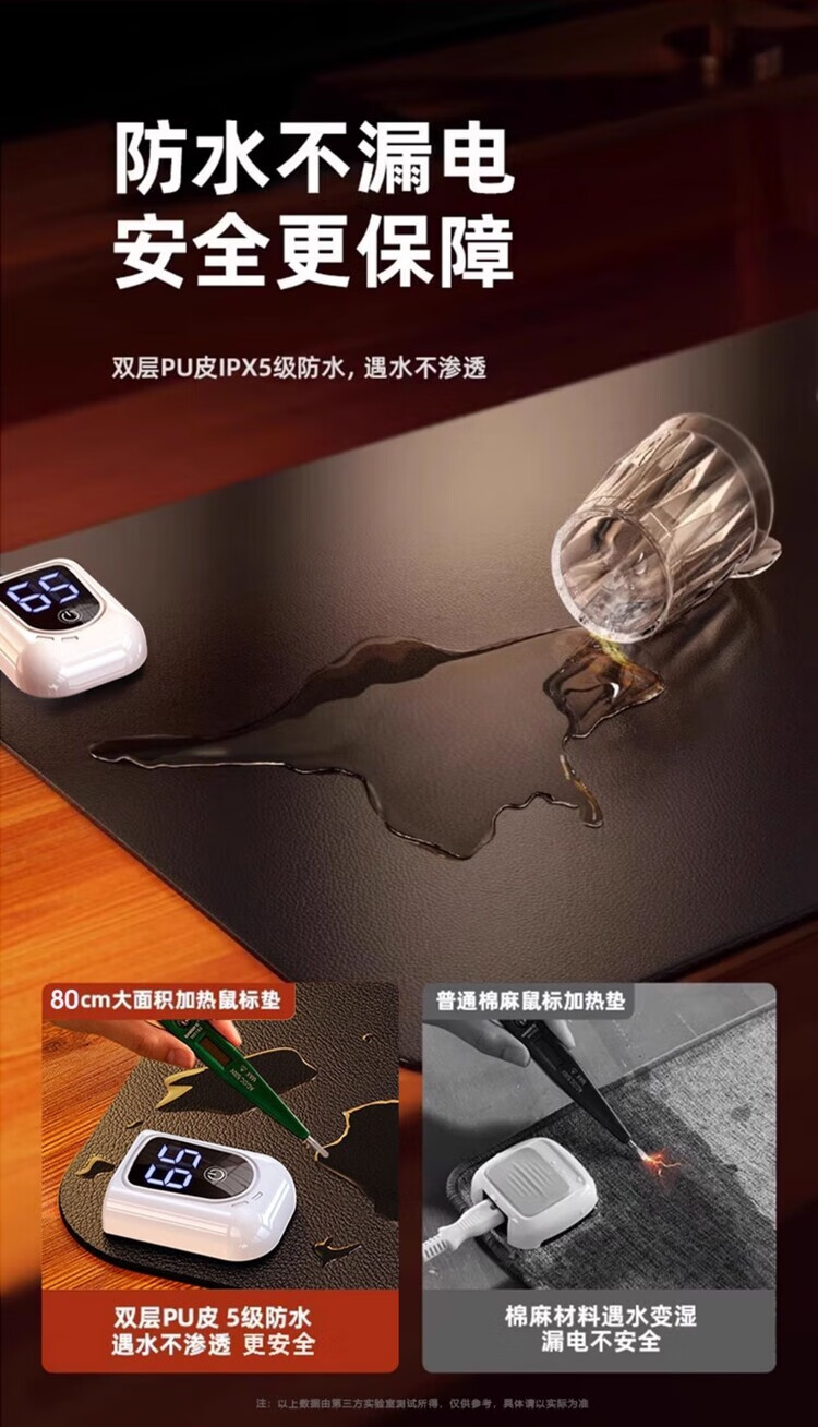 户璃德国鼠标垫加热大号办公室桌面发热桌垫超大发热暖桌垫办公桌电脑桌面石墨烯鼠标垫学生暖手垫子 皮纹·星钻黑丨60*36丨定时断电无异味 (右开关