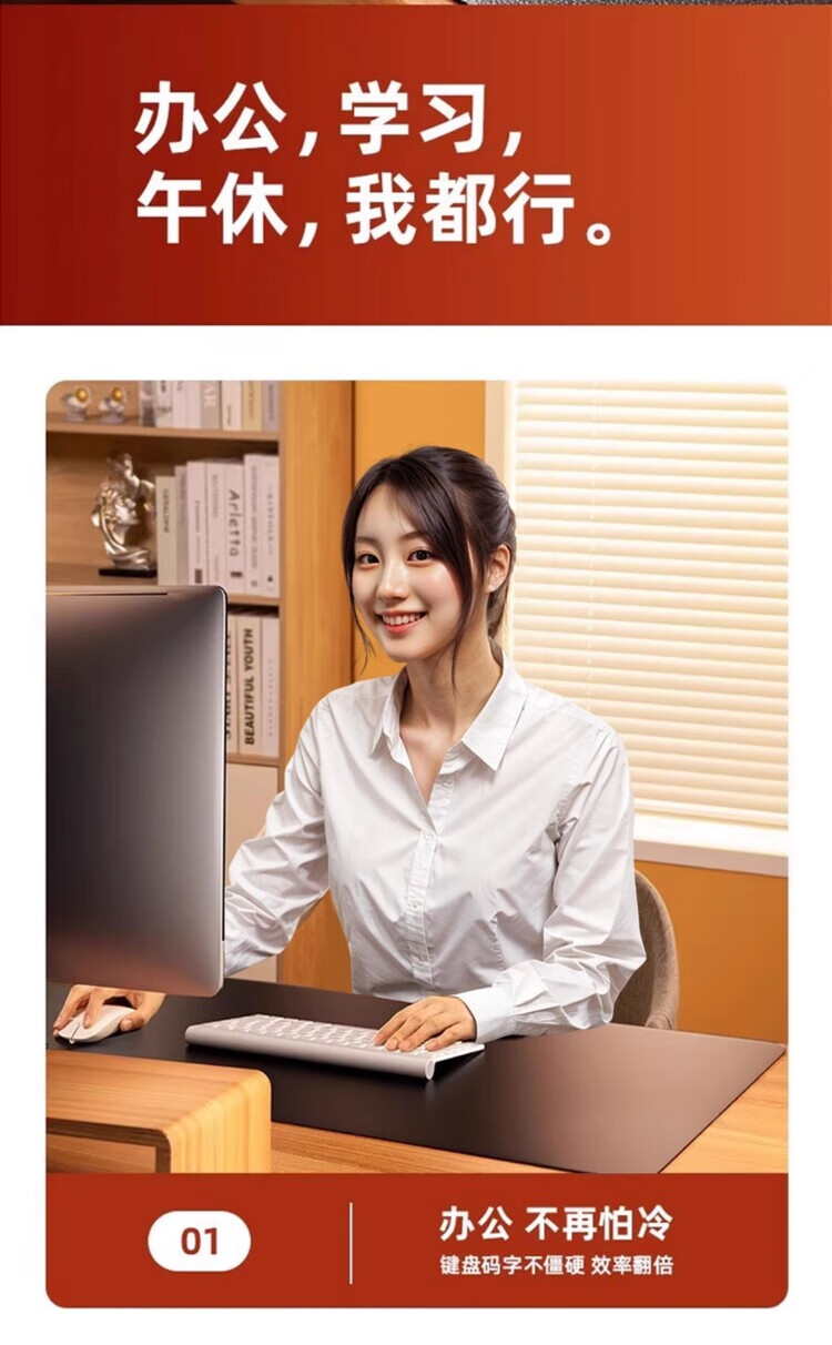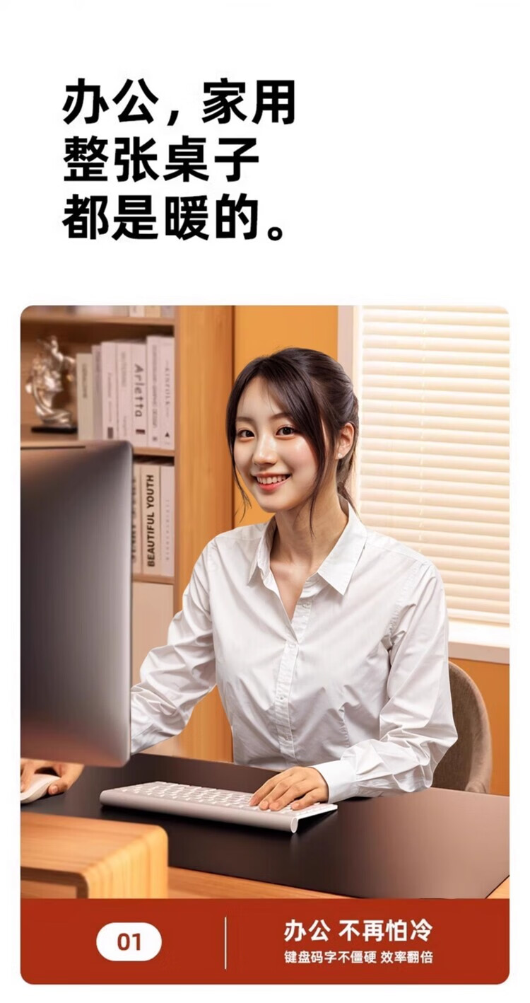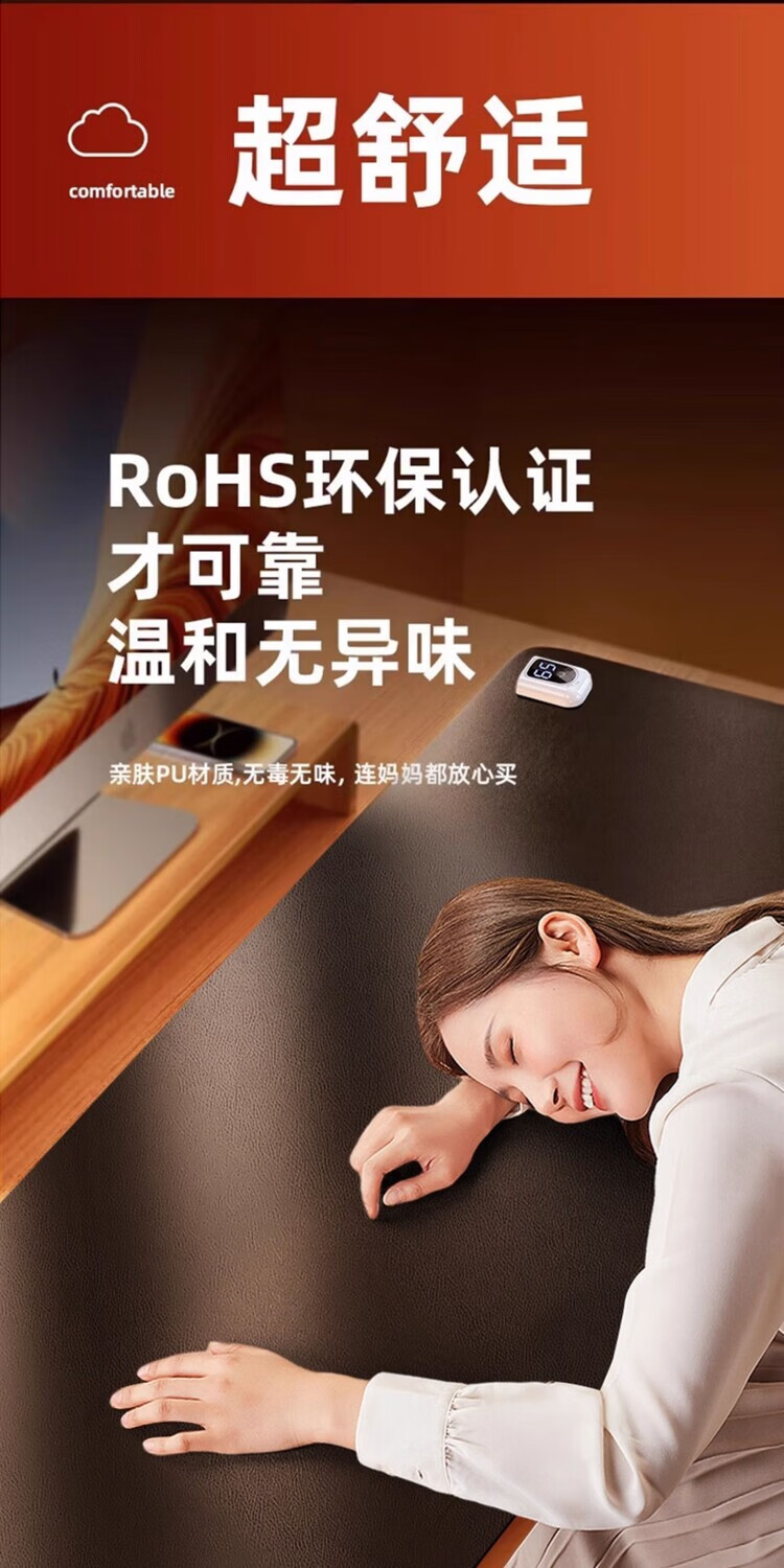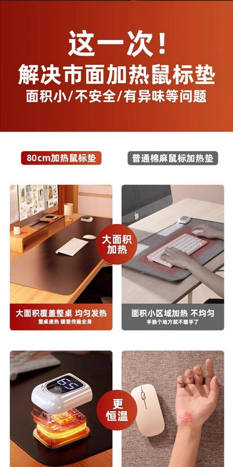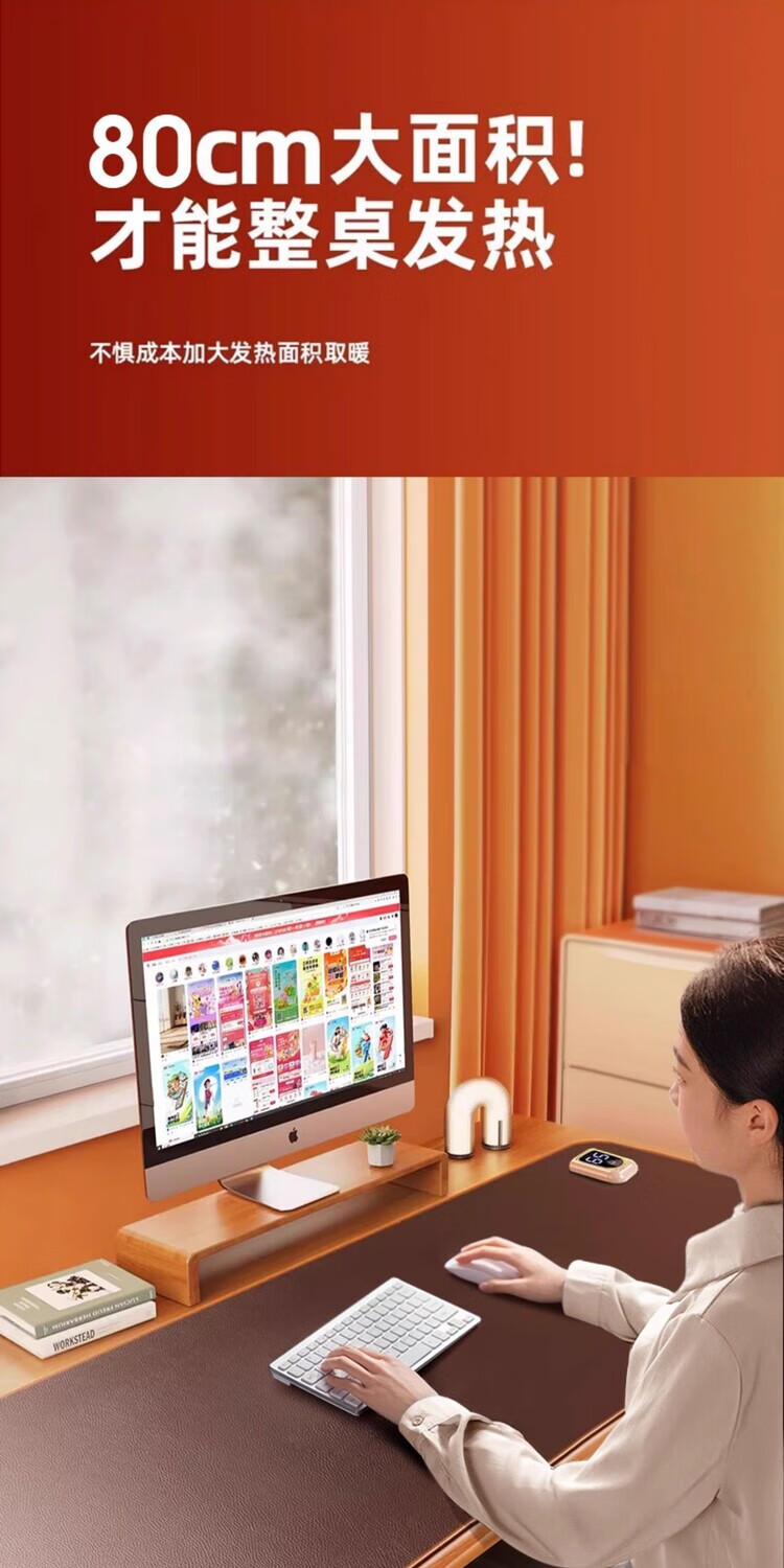 户璃德国鼠标垫加热大号办公室桌面发热桌垫超大发热暖桌垫办公桌电脑桌面石墨烯鼠标垫学生暖手垫子 皮纹·星钻黑丨60*36丨定时断电无异味 (右开关