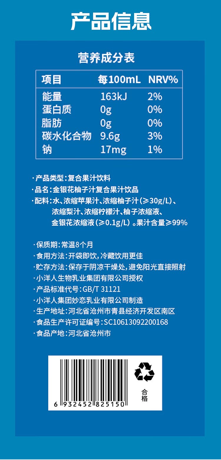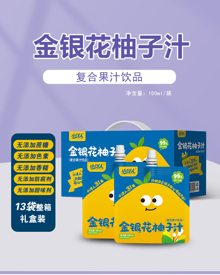 小洋人金银花柚子汁100ml*13袋果汁饮料礼盒装