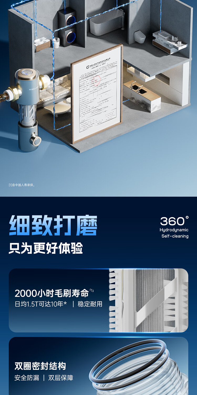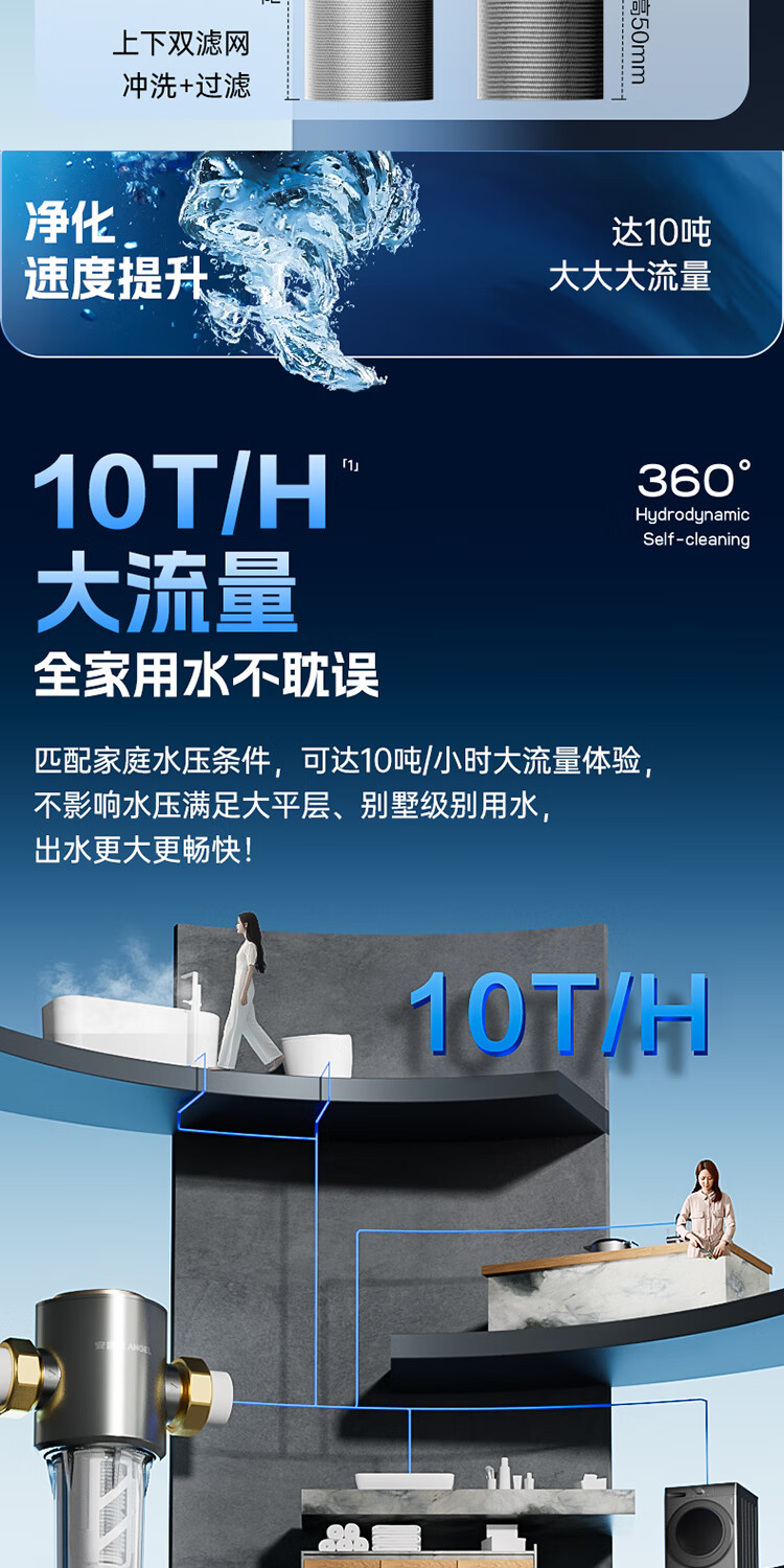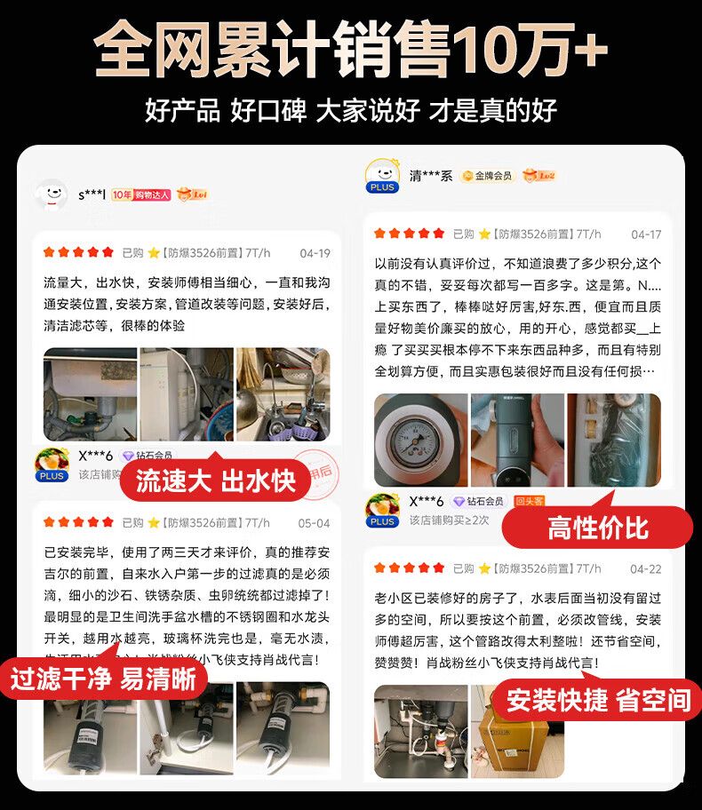 安吉尔家用10T大通量40um 前置过滤器前十名 半自动反冲洗 顶配压力表 全屋自来水净水器J3526-GWG-6000 【全网热销10w+】旗舰-全维隔铅