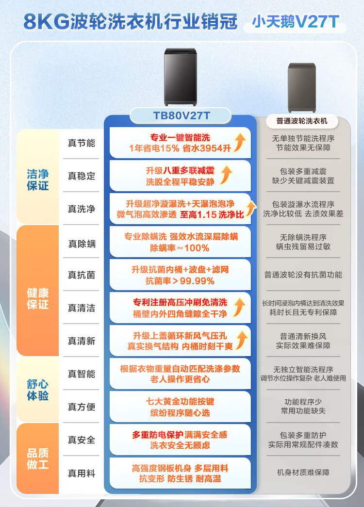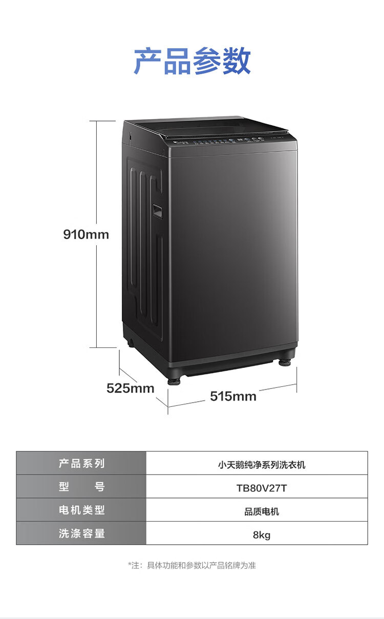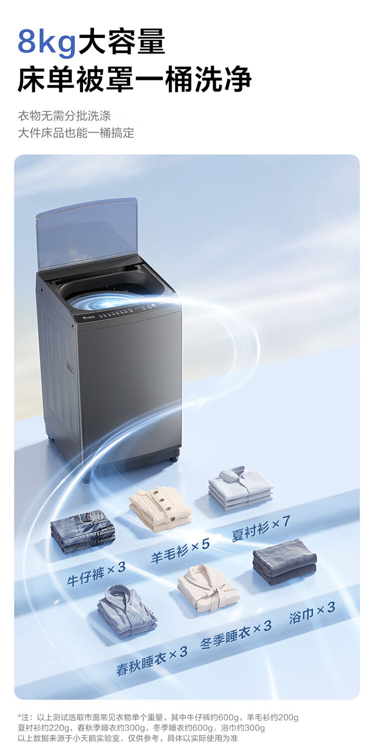 小天鹅(LittleSwan)波轮洗衣机全自动 8公斤 超净洗 除菌除螨【TB80V27T】家电国家补贴20% 一级能效 以旧换新
