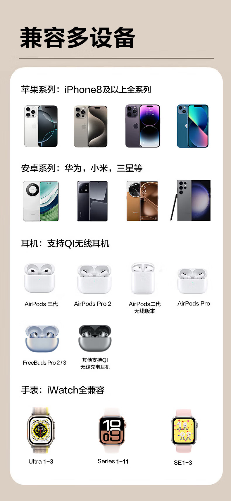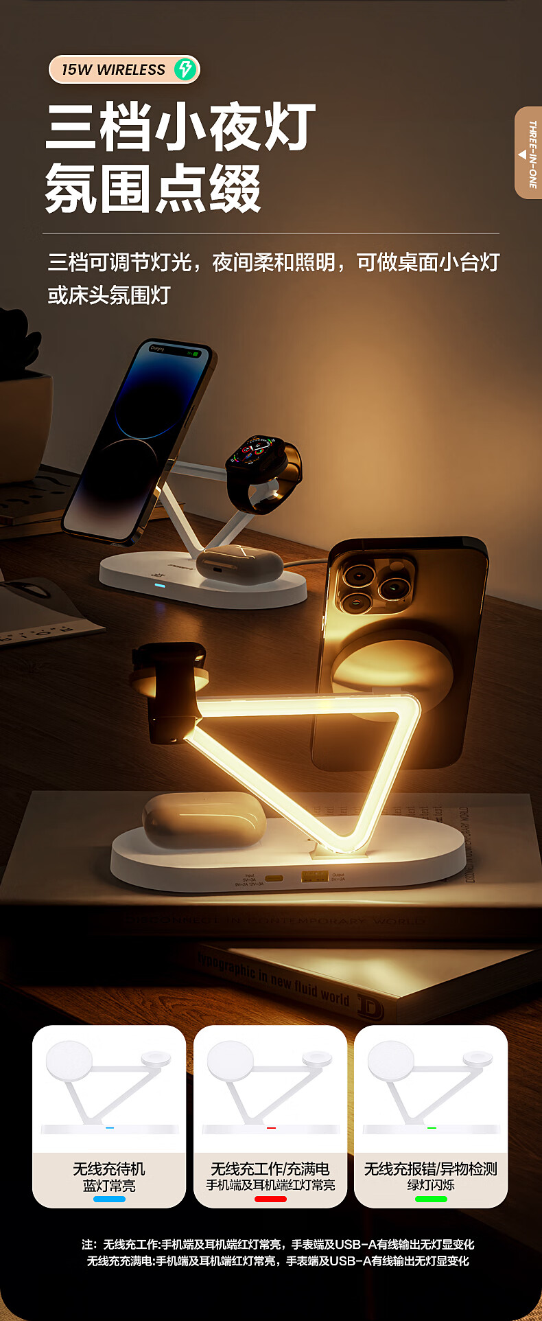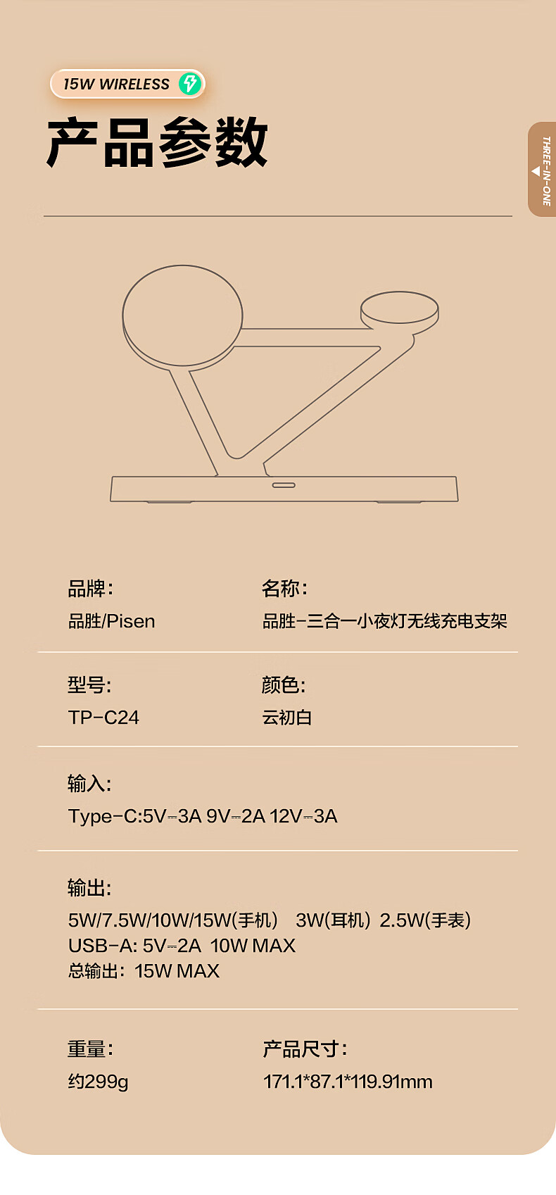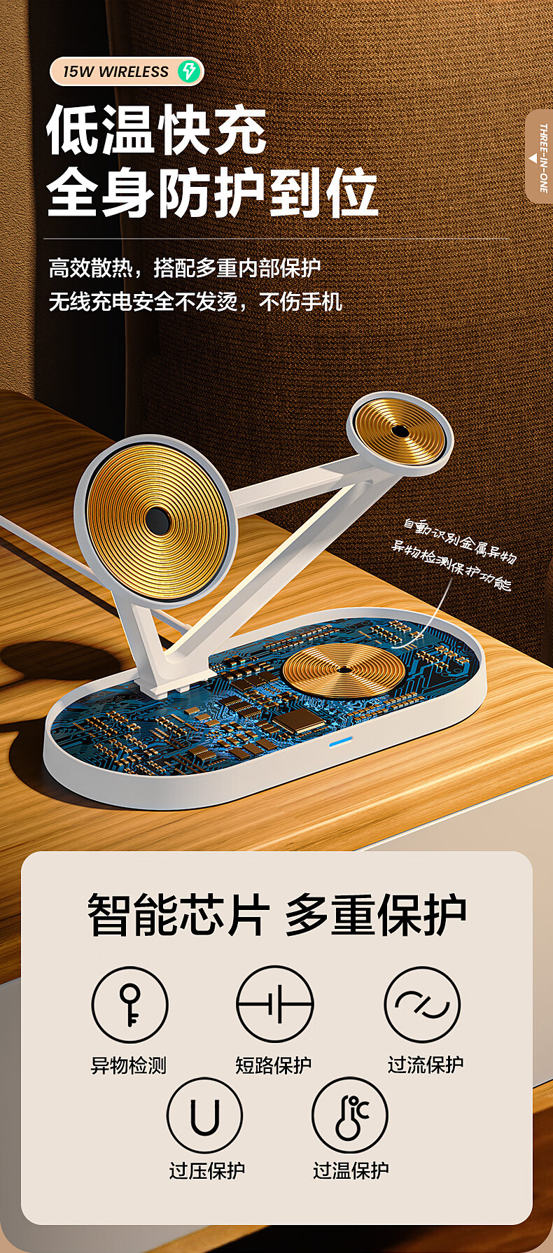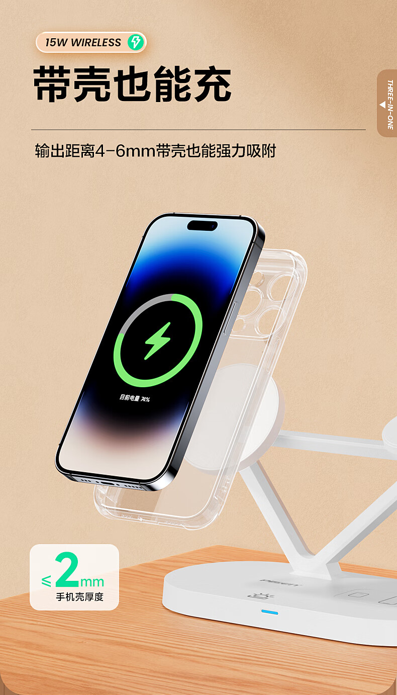 品胜苹果无线充电器三合一MagSafe磁吸15W适用iPhone17air/16华为小米手机苹果手表AirPods Pro3耳机