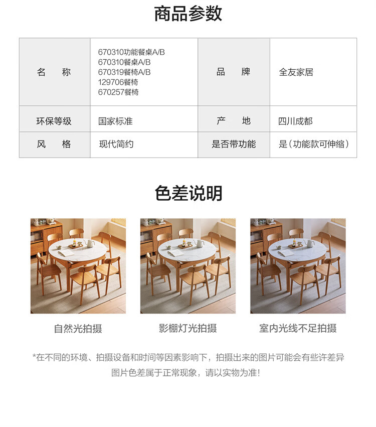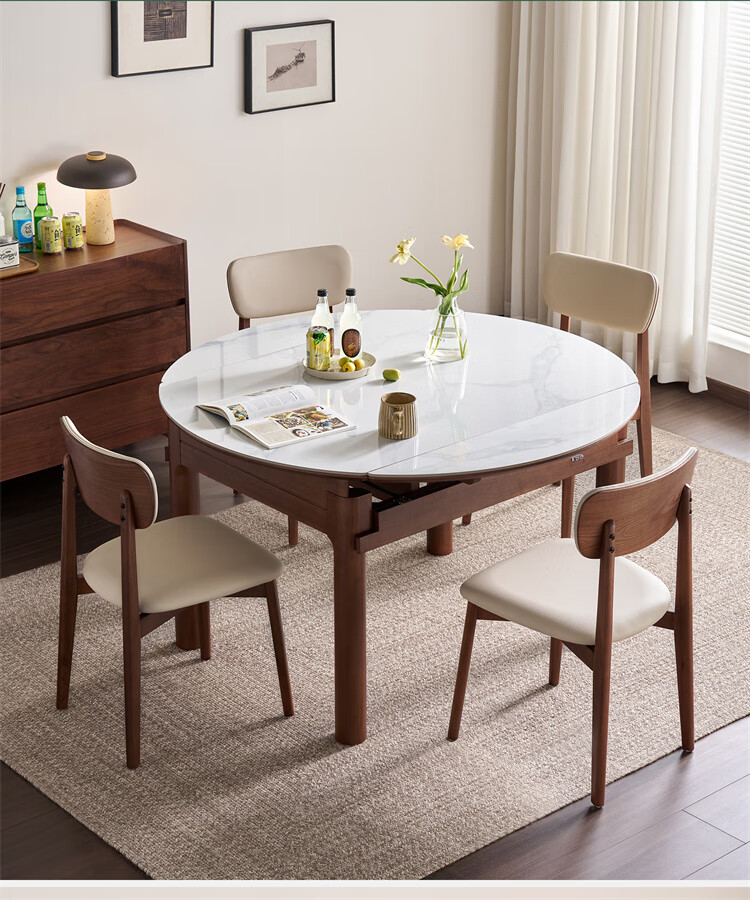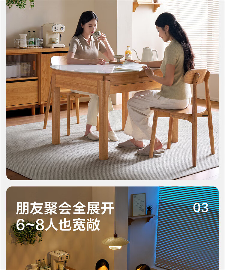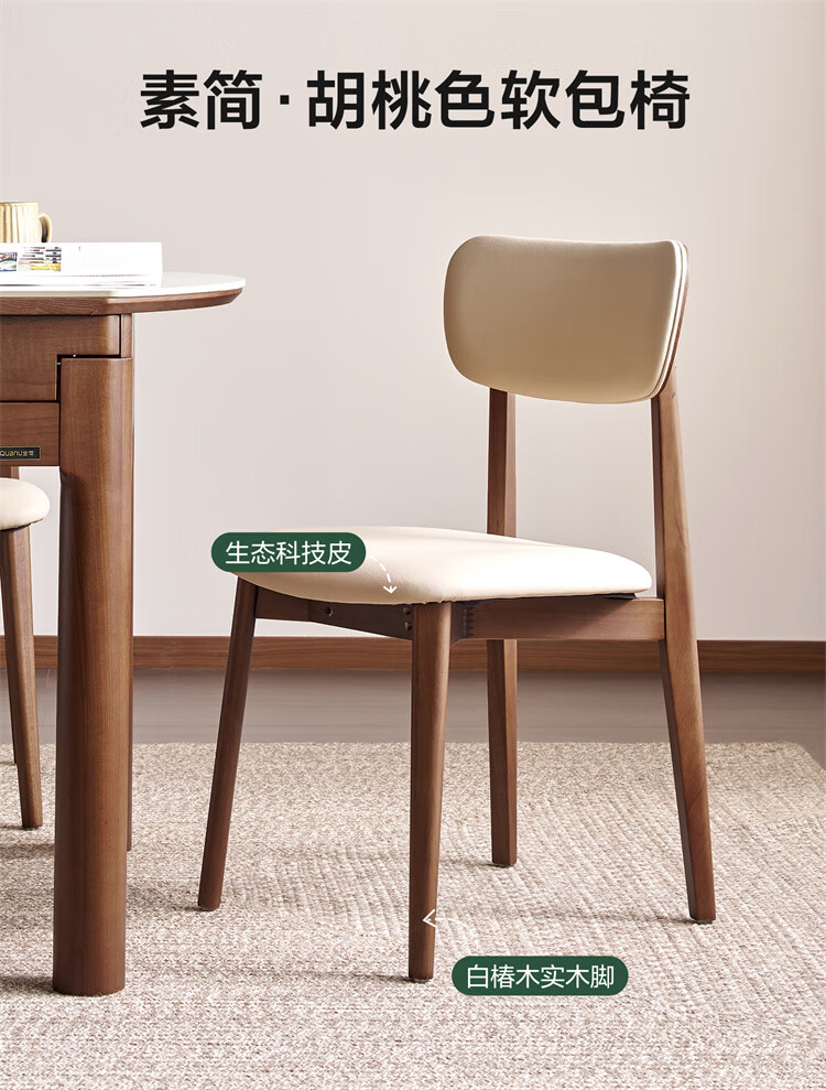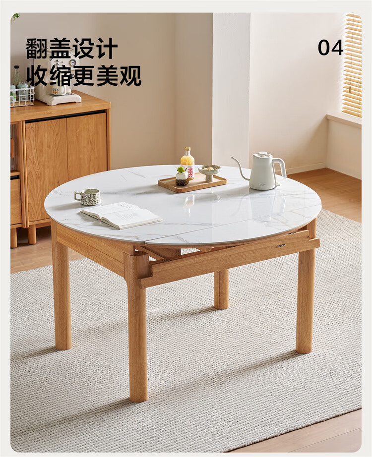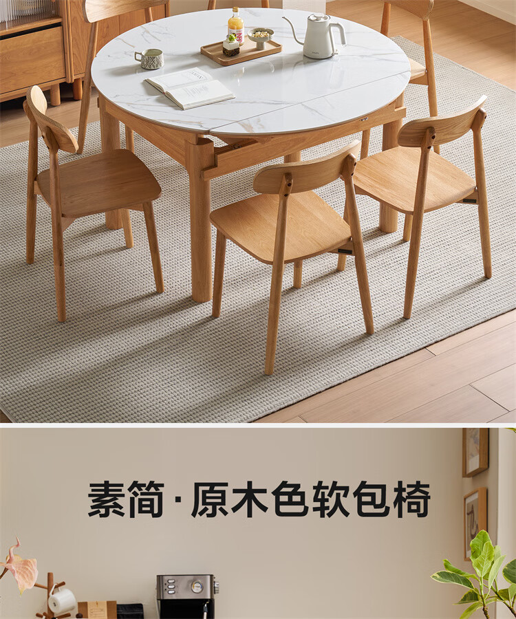全友家居原木风圆餐桌椅子实木腿可折叠吃饭桌子6-8人客厅一桌四椅子 【原木色+白色】1.4m常规款+实木餐椅*4