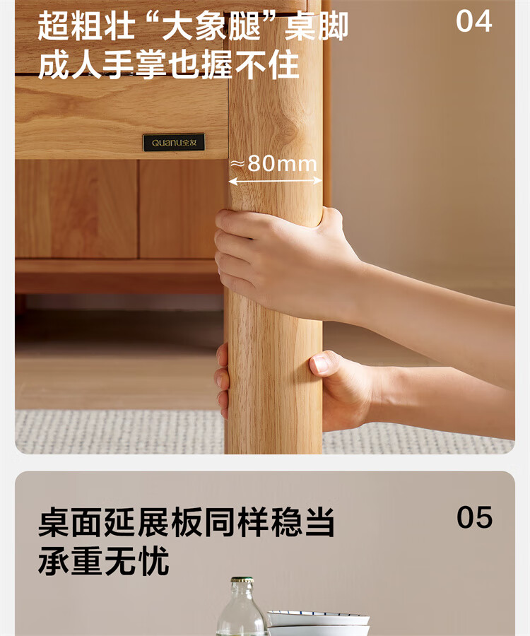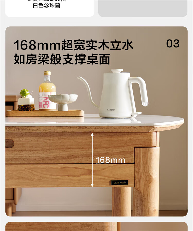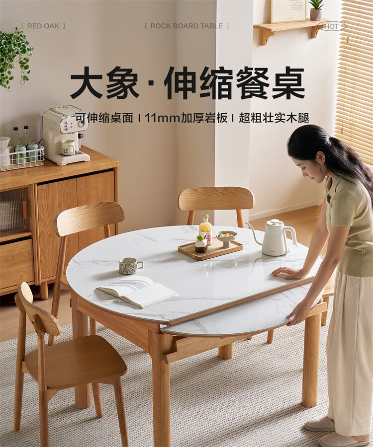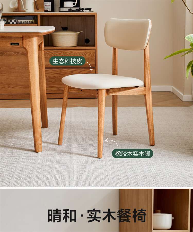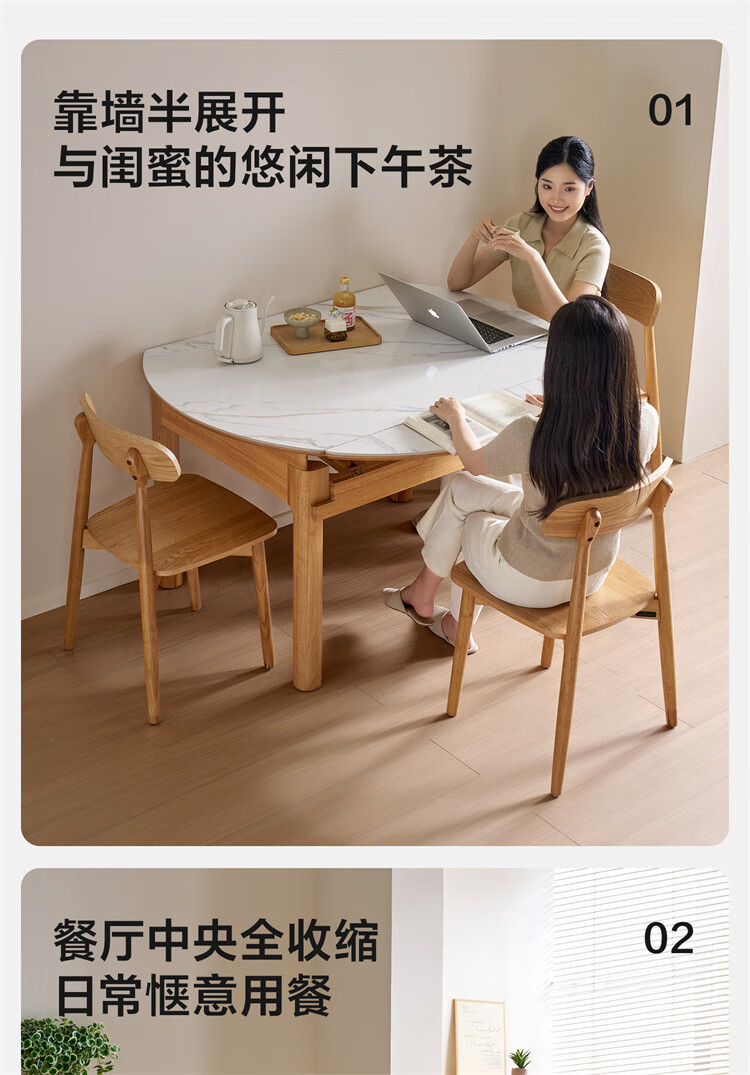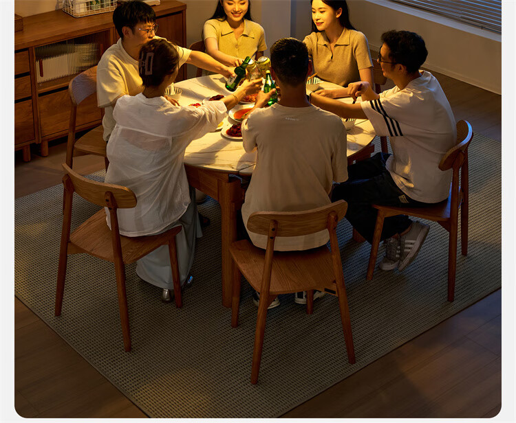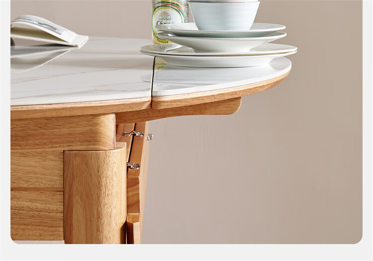 全友家居原木风圆餐桌椅子实木腿可折叠吃饭桌子6-8人客厅一桌四椅子 【原木色+白色】1.4m常规款+实木餐椅*4