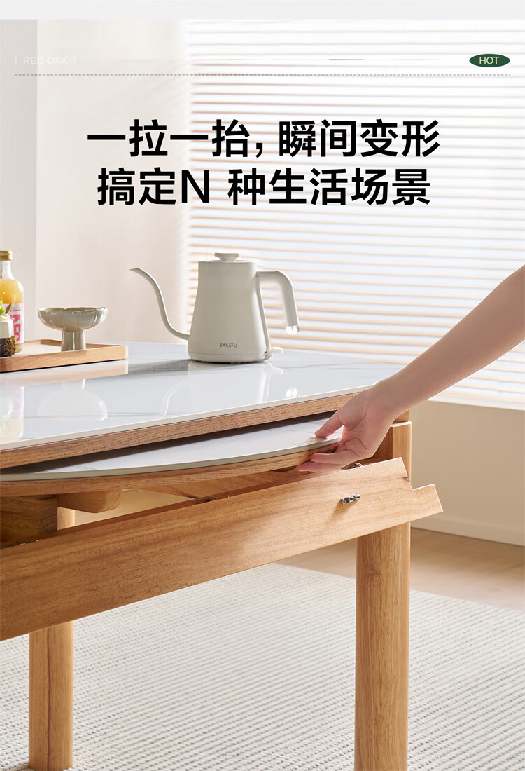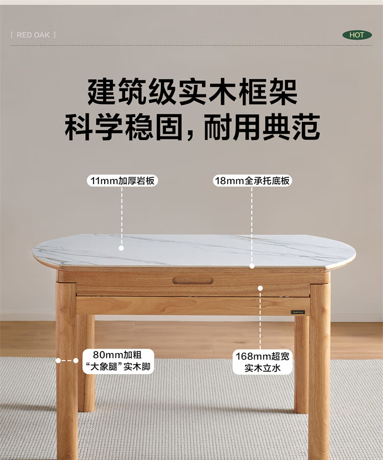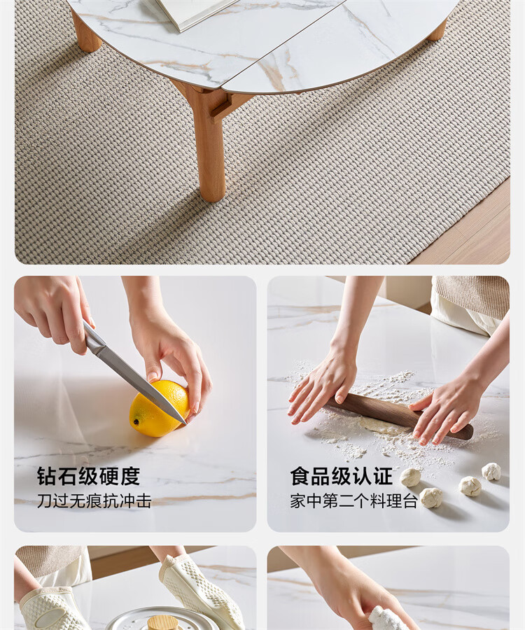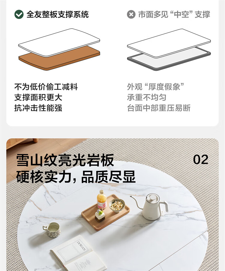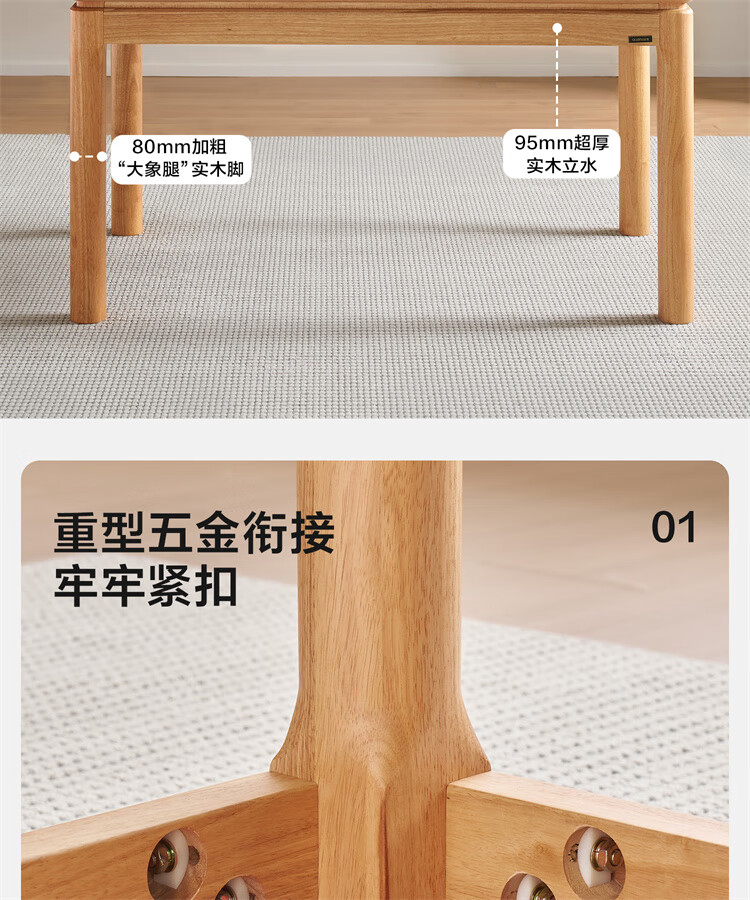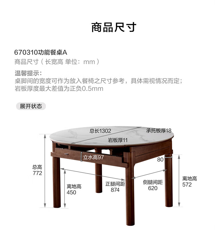 全友家居原木风圆餐桌椅子实木腿可折叠吃饭桌子6-8人客厅一桌四椅子 【原木色+白色】1.4m常规款+实木餐椅*4