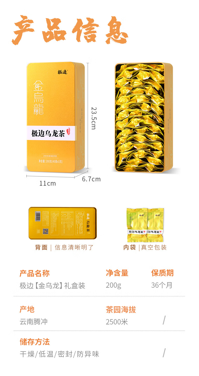 极边金乌龙茶2500米高山乌龙茶浓香型一级茶叶礼盒官方旗舰店200g