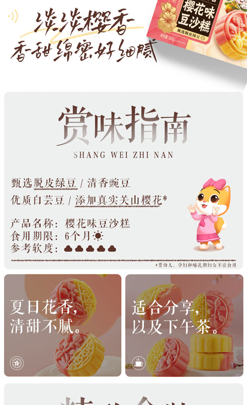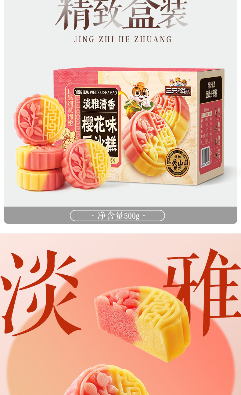 三只松鼠樱花味豆沙糕500g 零食营养早餐办公室下午茶解馋绿豆糕中式糕点