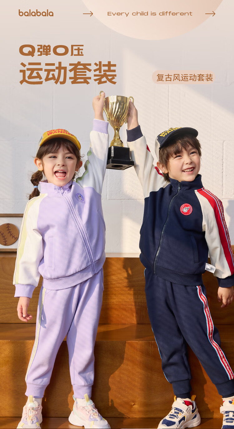 巴拉巴拉童装男童女童装时髦套装儿童潮流撞色两件套2024春装208124104217