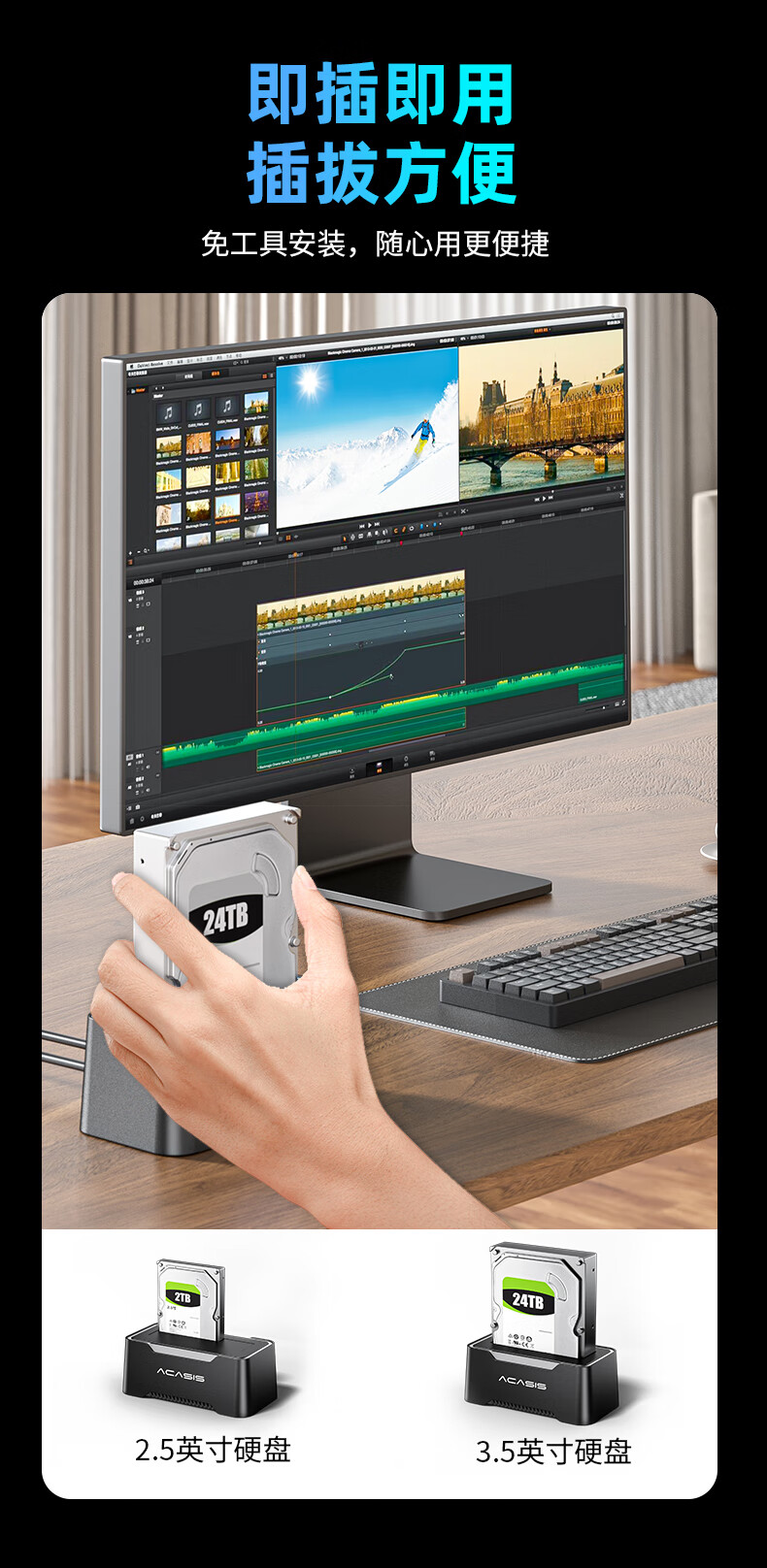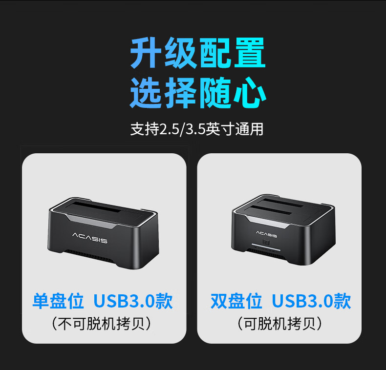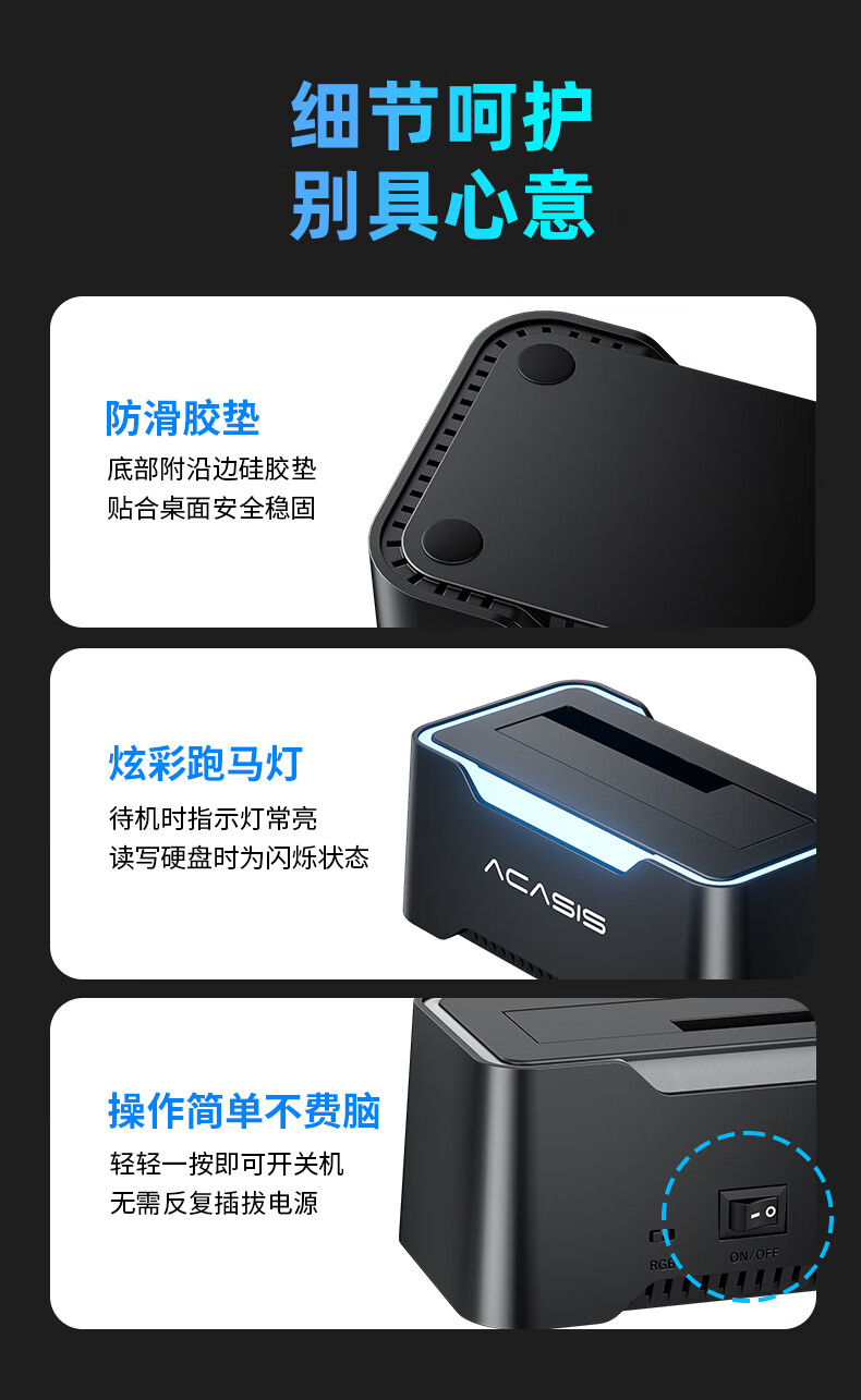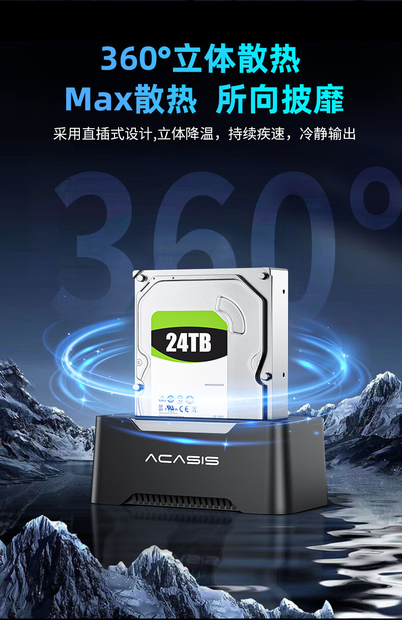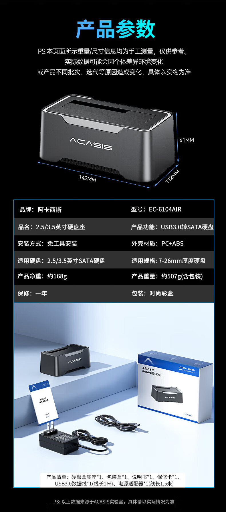 阿卡西斯(acasis)硬盘底座2.5/3.5英寸笔记本台式SATA串口SSD固态移动机械硬盘外置外接存储硬盘盒子EC-6104Air