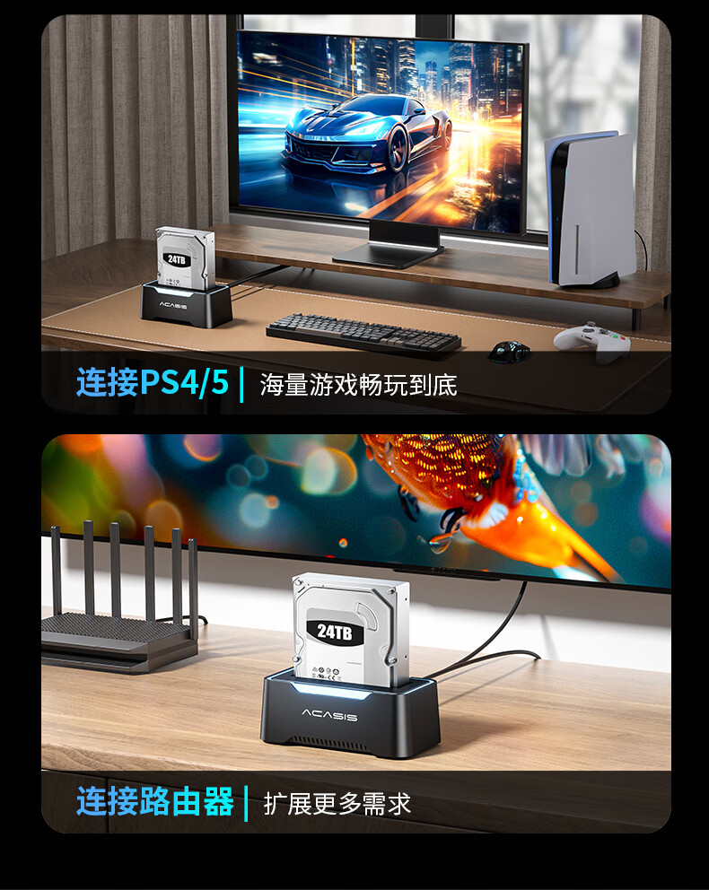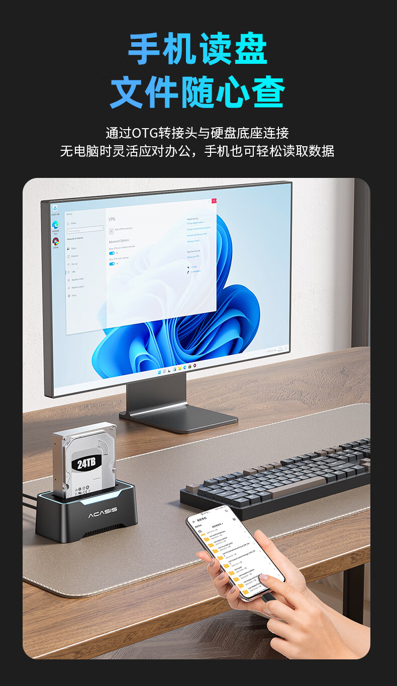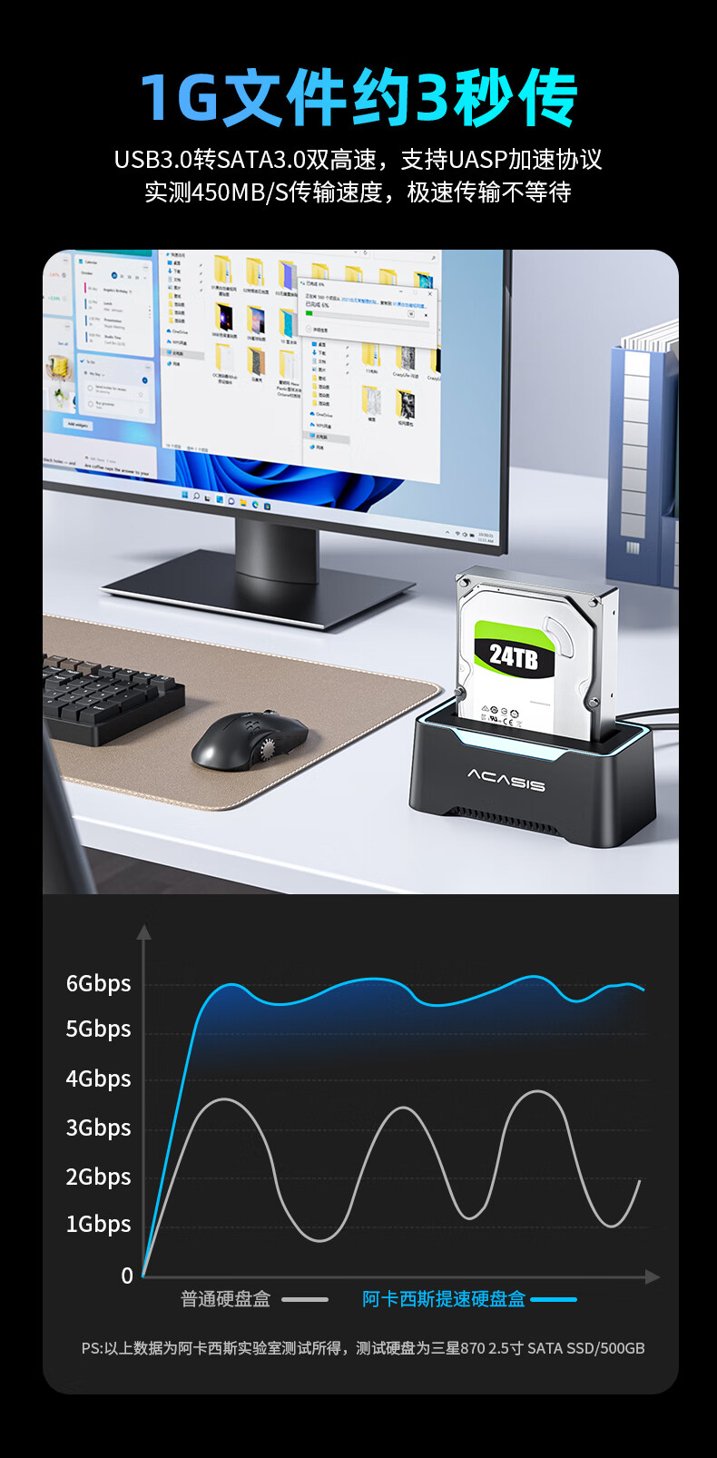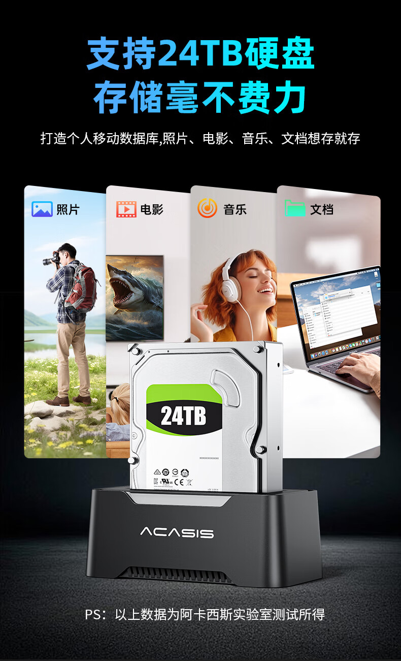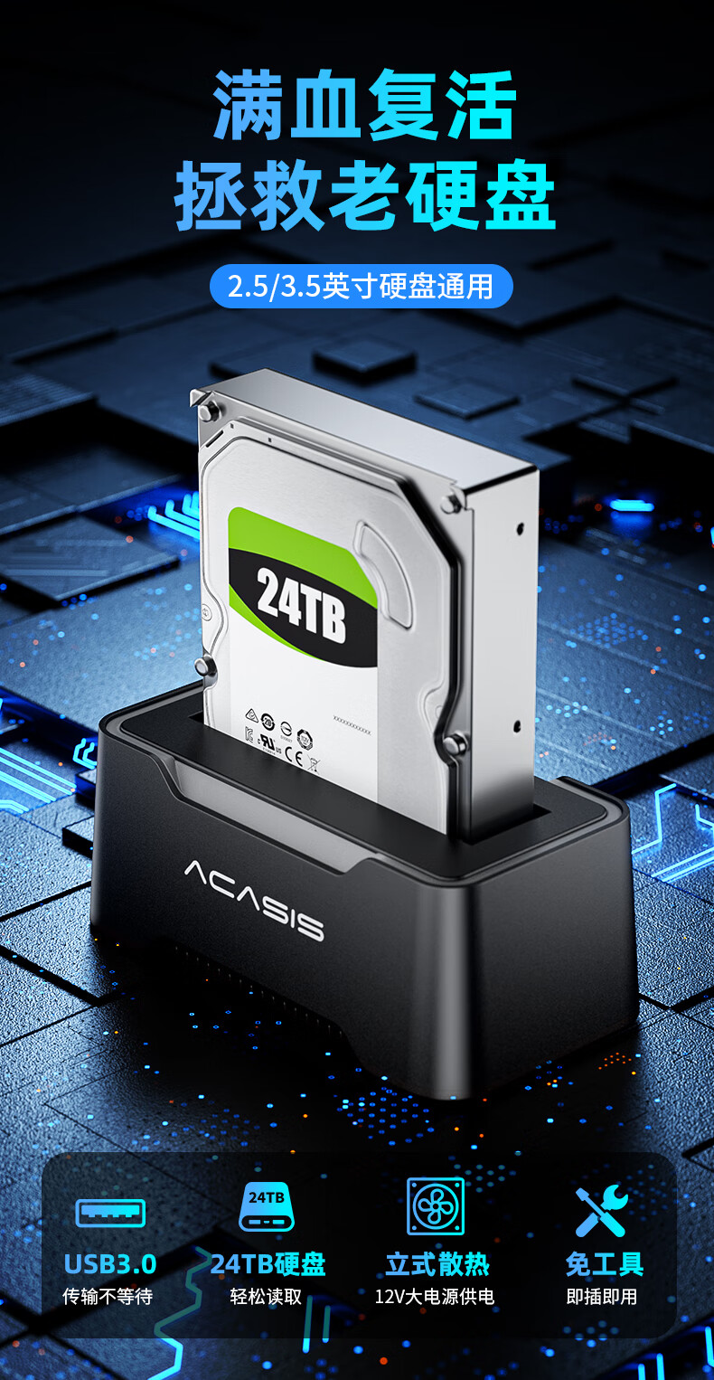 阿卡西斯(acasis)硬盘底座2.5/3.5英寸笔记本台式SATA串口SSD固态移动机械硬盘外置外接存储硬盘盒子EC-6104Air