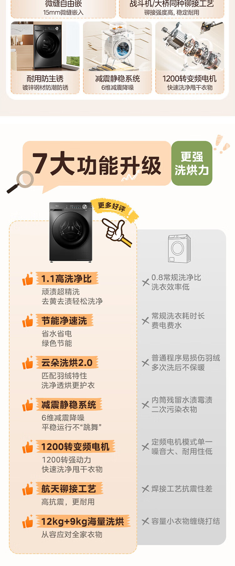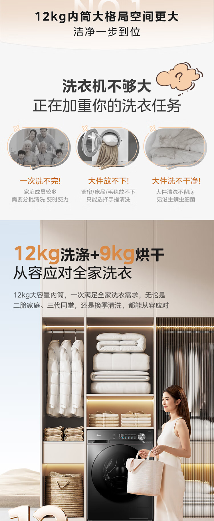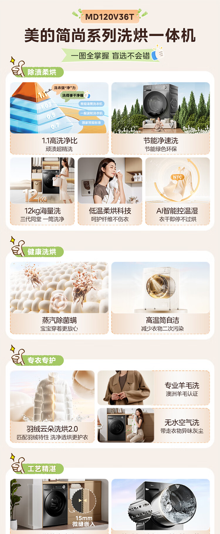 美的(Midea)滚筒洗衣机全自动家用 1.1洗净比MD120V36T 12公斤洗烘一体机 节能净速 以旧换新 家电国家补贴20%