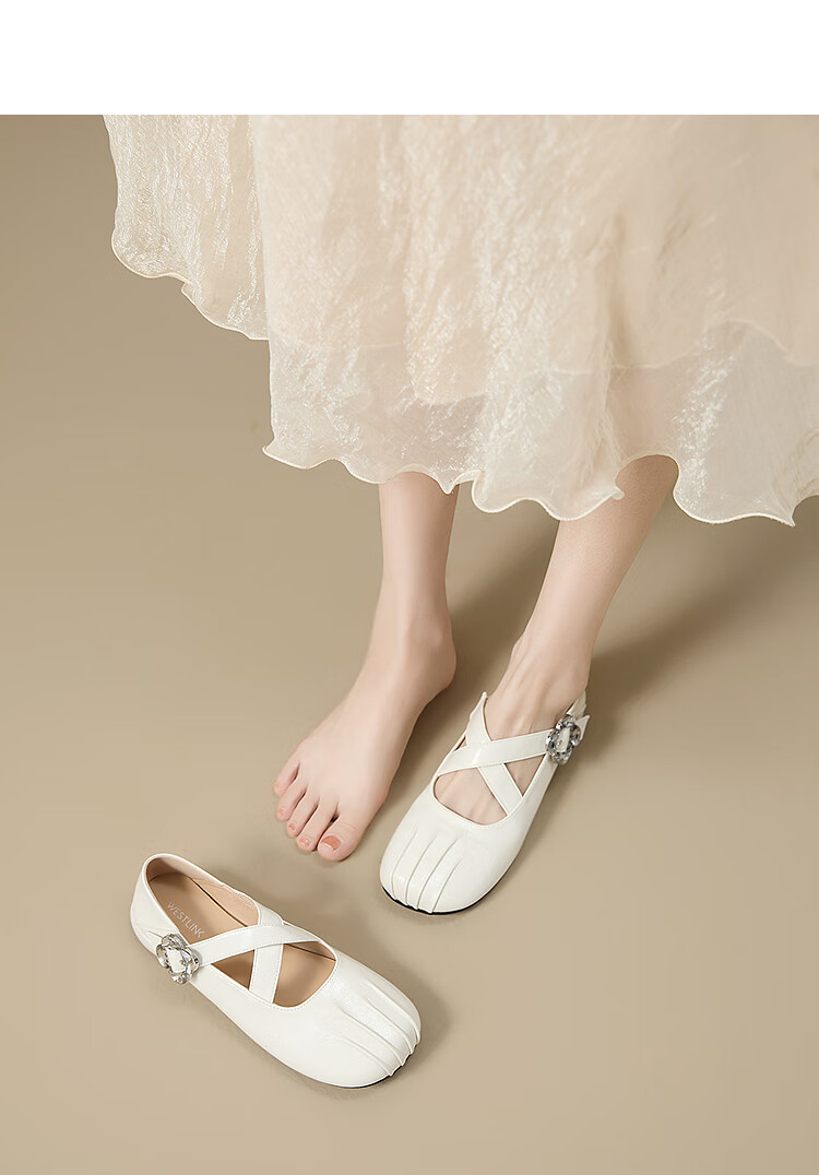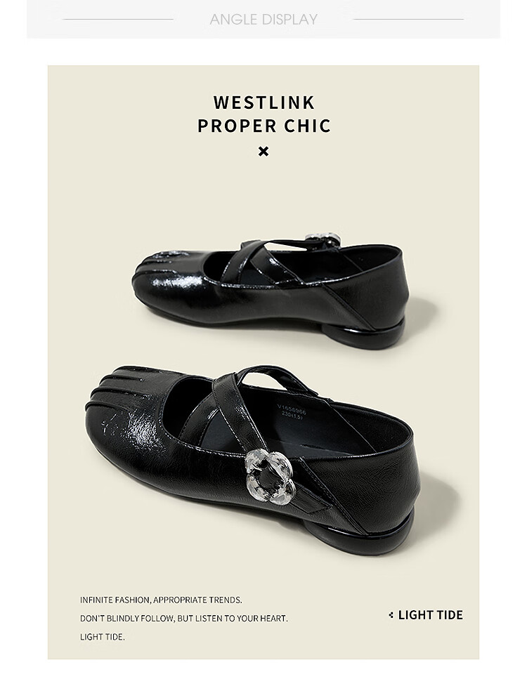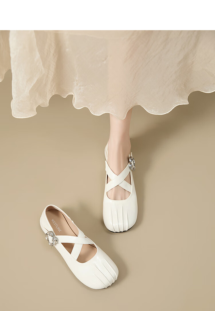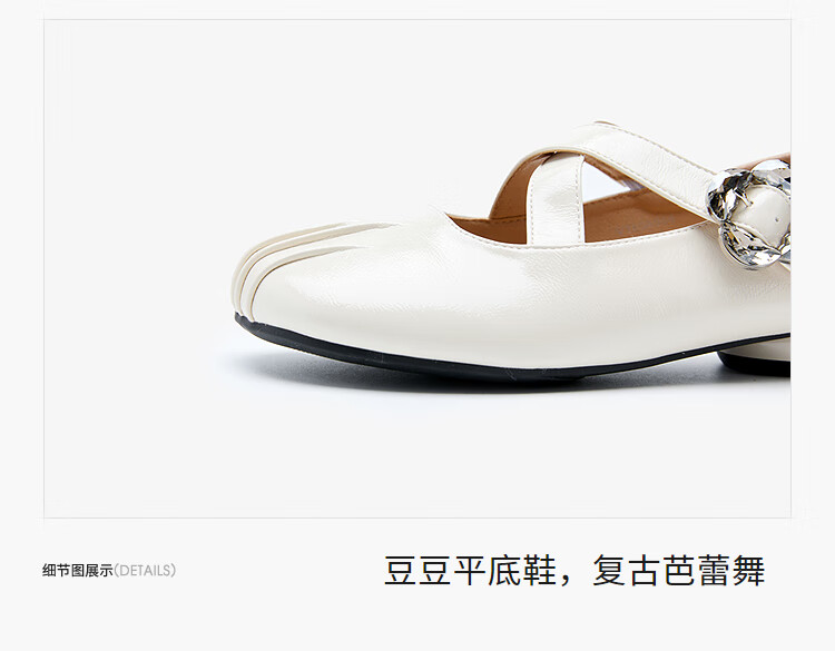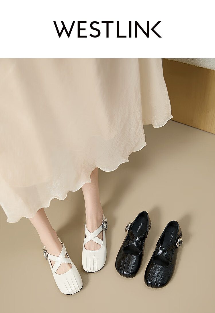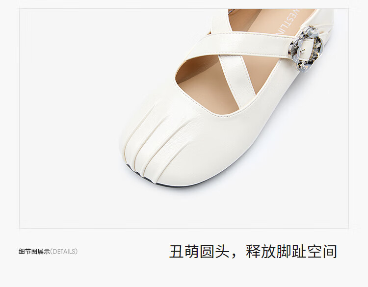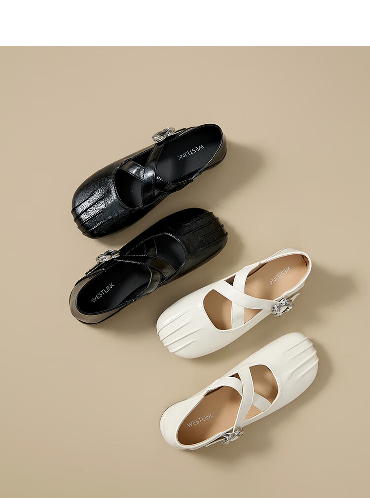 西遇平底玛丽珍鞋女2025新款秋季芭蕾风小皮鞋交叉带褶皱圆头单鞋 黑色 35 (225)