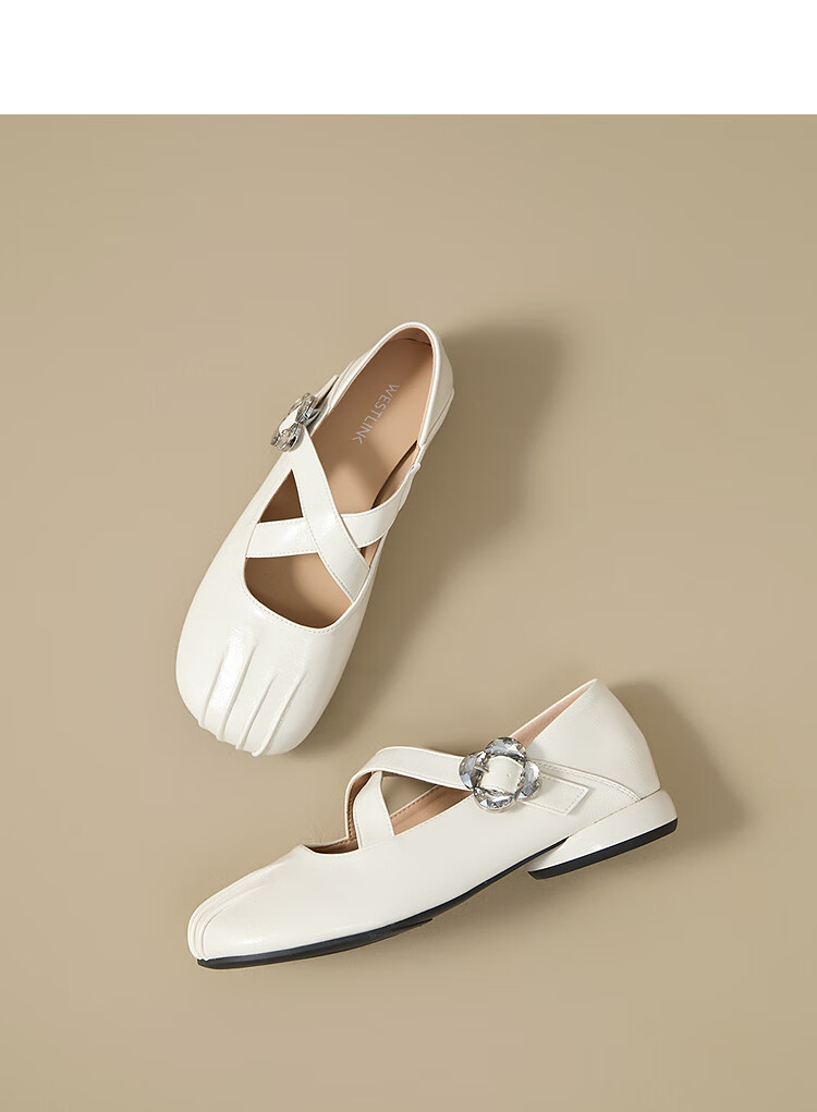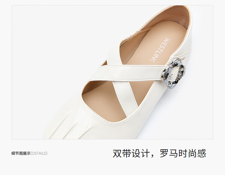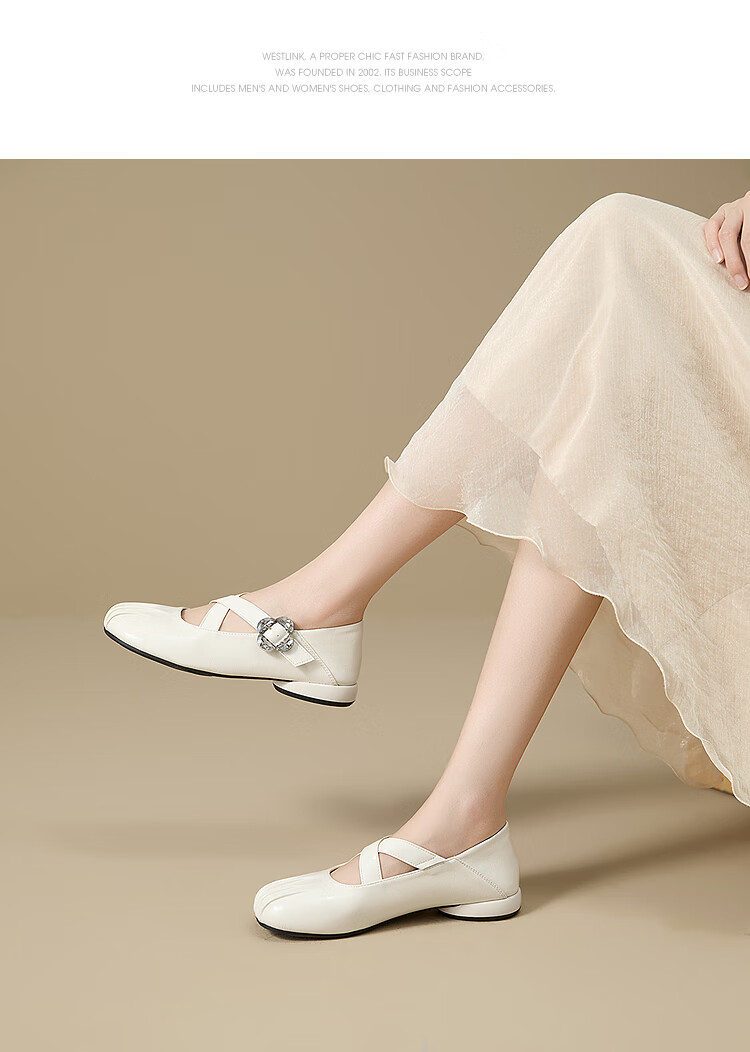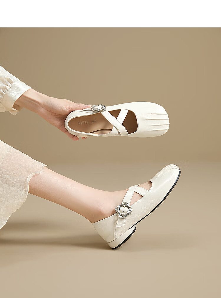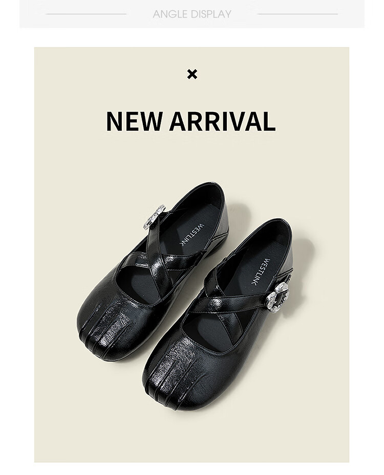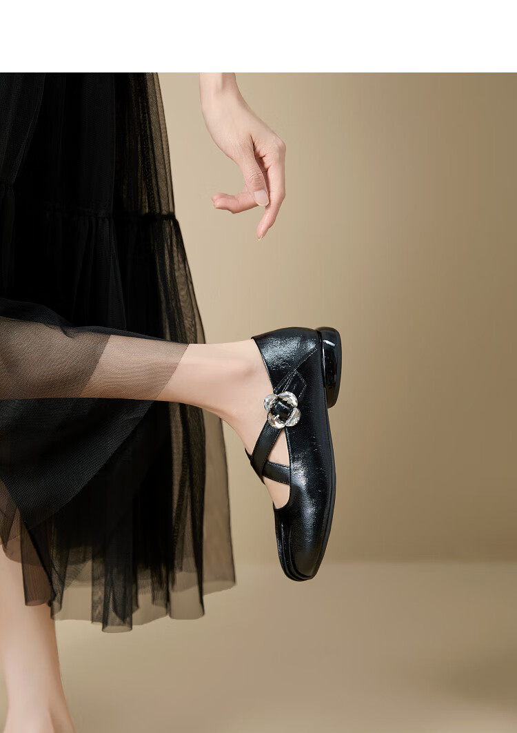 西遇平底玛丽珍鞋女2025新款秋季芭蕾风小皮鞋交叉带褶皱圆头单鞋 黑色 35 (225)