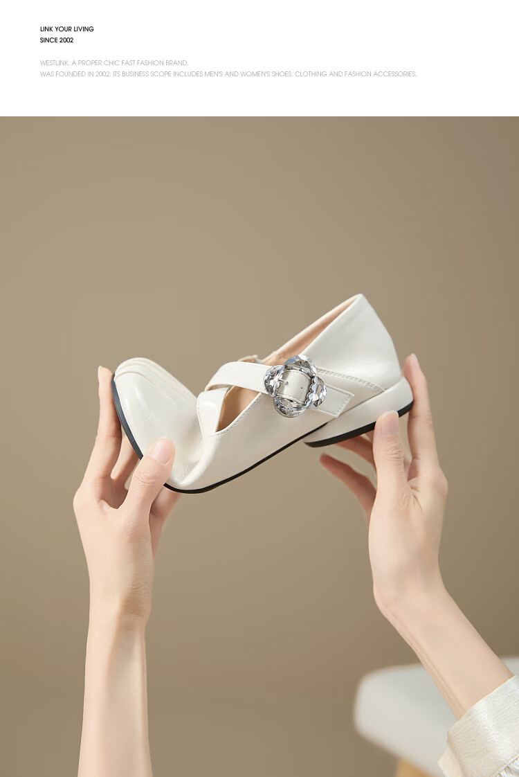 百思图春季商场同款时尚潮流通勤乐福鞋女单鞋WEF61AA3 米白 38