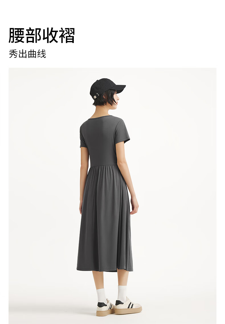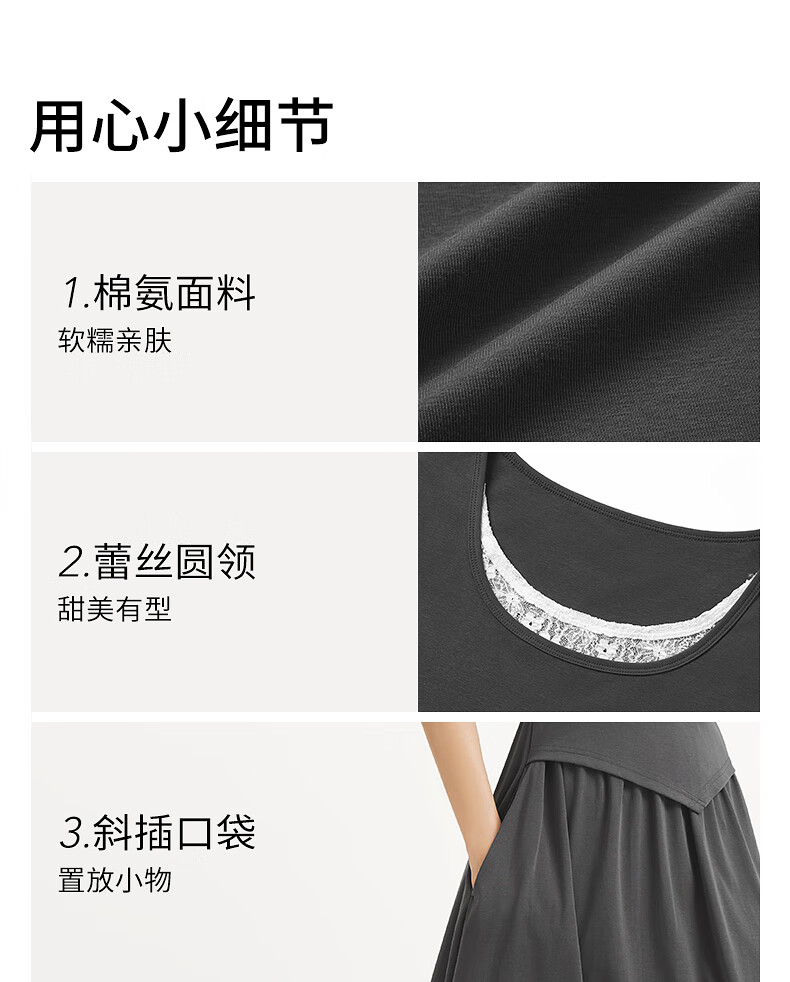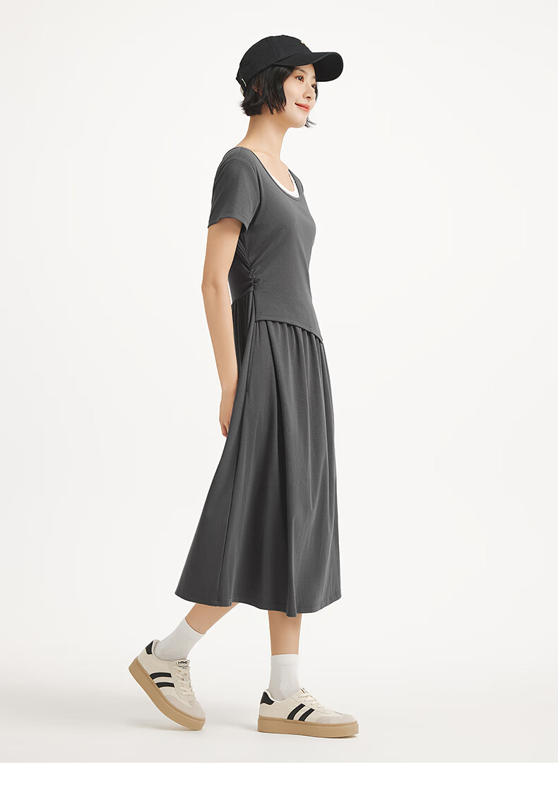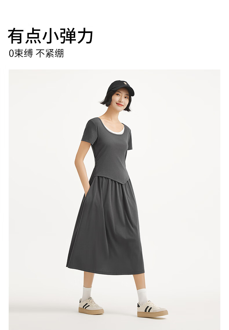 热风短袖连衣裙2025年秋季新款女士假两件蕾丝拼接圆领收腰显瘦连衣裙 09灰色 M