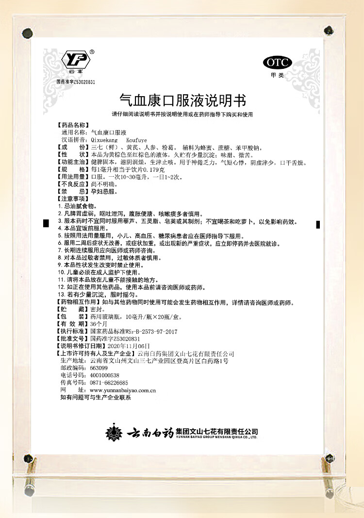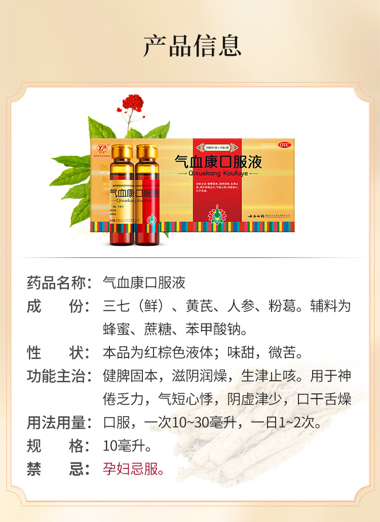 云丰[云丰]云南白药【联系客服有惊喜】气血康口服液 10ml*10支 滋阴润燥 生津止咳 神倦乏力 气短心悸送礼 4盒装【疗程装】强烈推荐 按疗程使用