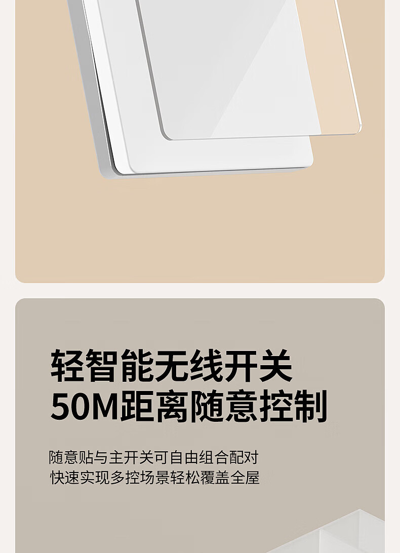 国际电工智能无线遥控开关家用免布线220V远程控制钢化玻璃面单双控随意贴 一开主机+一开随意贴(送电池)