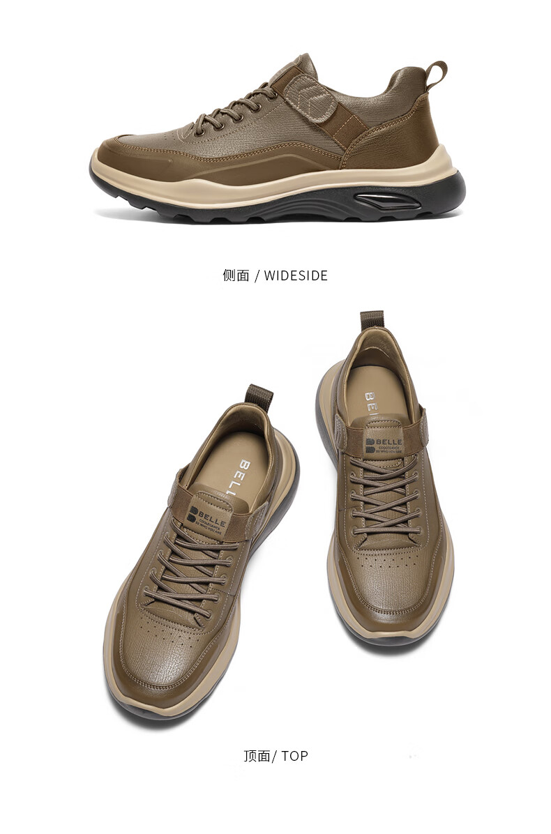 百丽网面拼接户外休闲鞋男鞋2025秋新厚底增高运动鞋A2157CM5 卡其色 40 (250mm)
