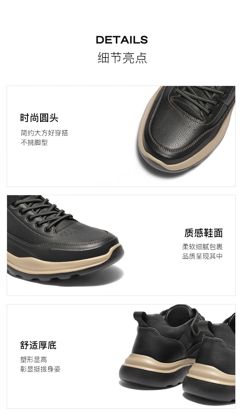 百丽通勤上班皮鞋男25新商场款牛皮革休闲商务鞋8TS01CM5加绒【预售】 棕色-单里 38 (240mm)