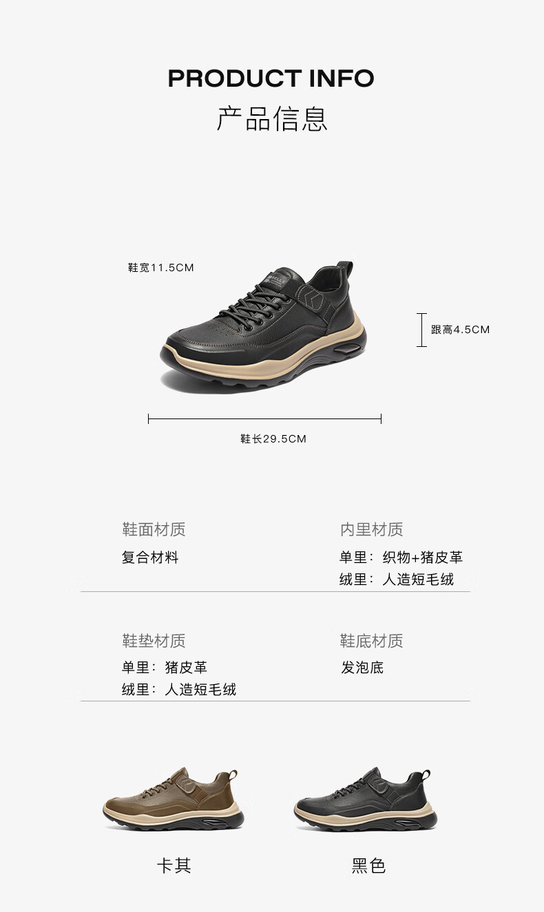 百丽套脚休闲鞋男鞋2025新款冬季商场同款厚底工装鞋加绒8WR01DM5 黑色-单里 42 (260mm)