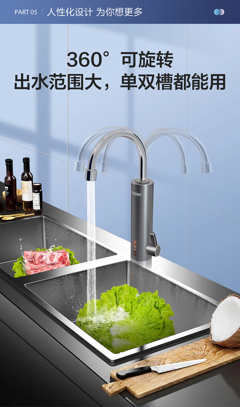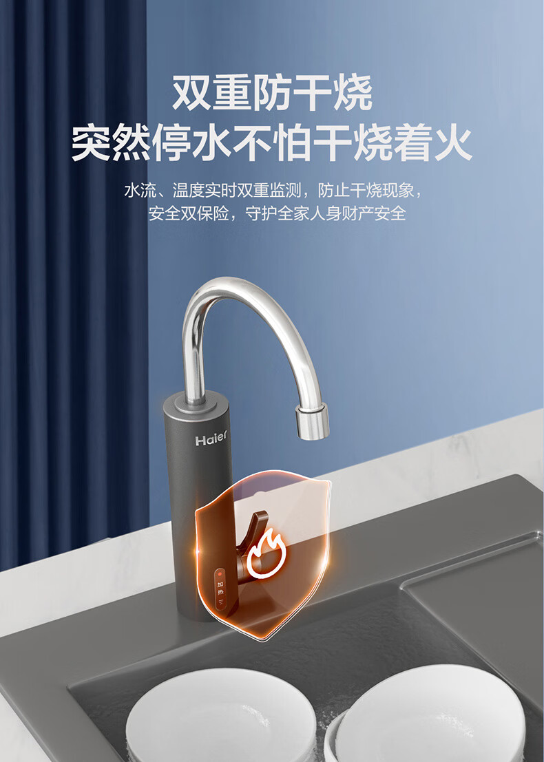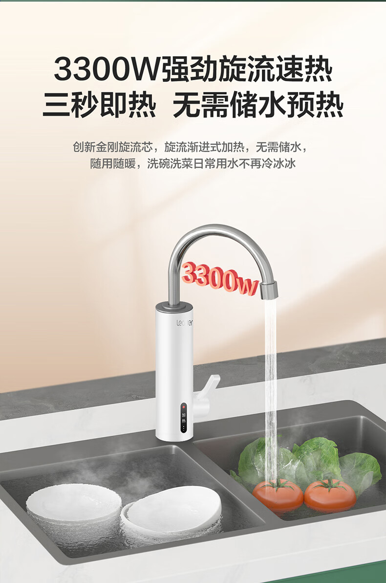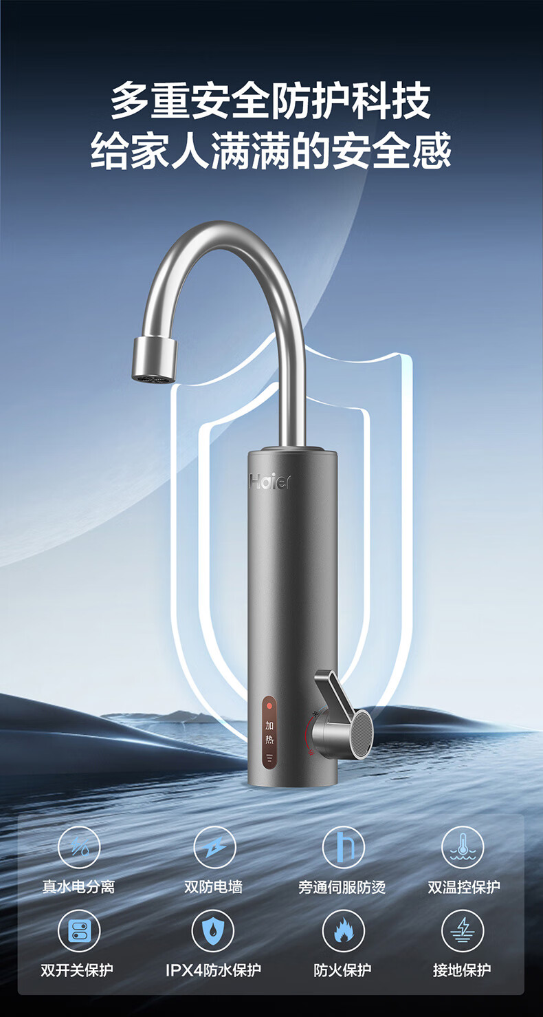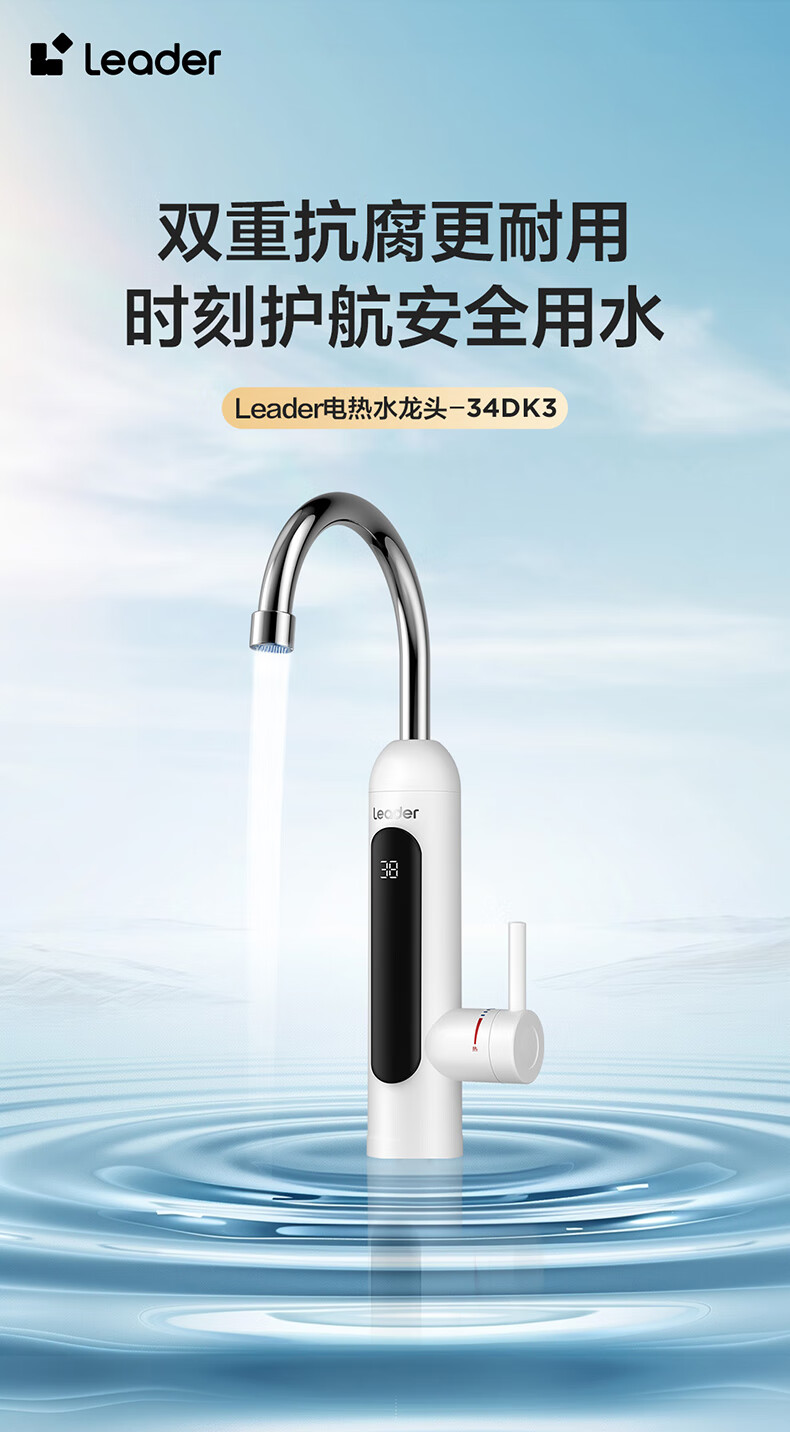 海尔(Haier)即热式电加热水龙头厨房安全速热家用热水宝 防漏电快热电热水器 下进水小厨宝加热器 统帅Leader水龙头LDST-34DK3(C)