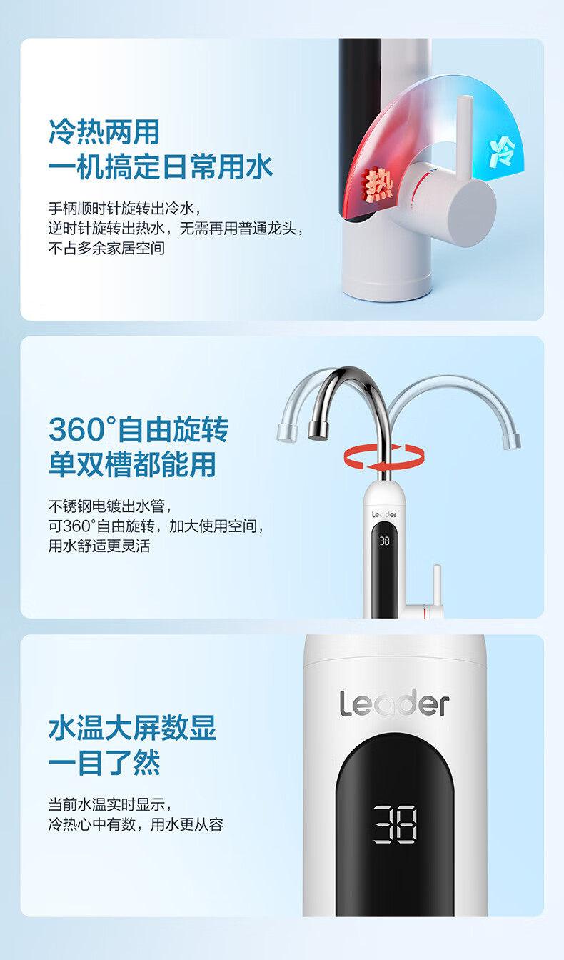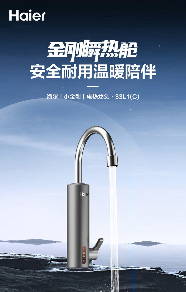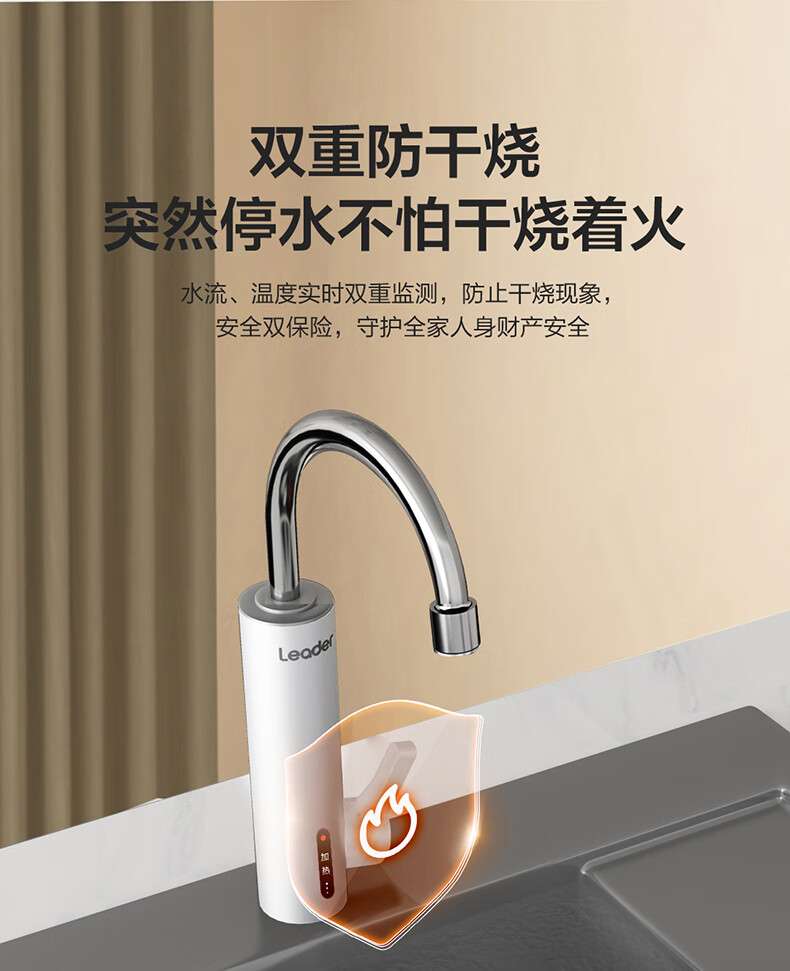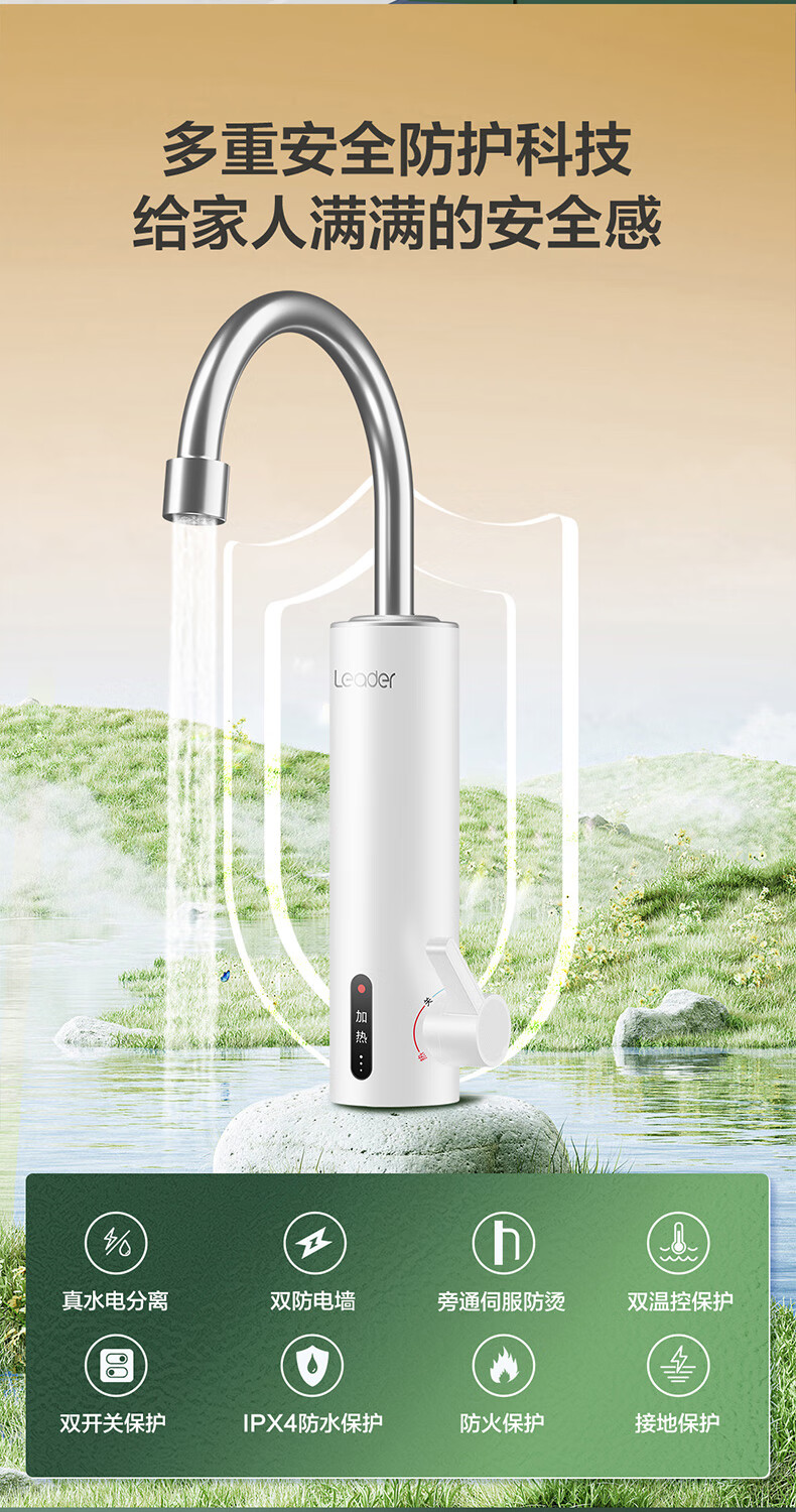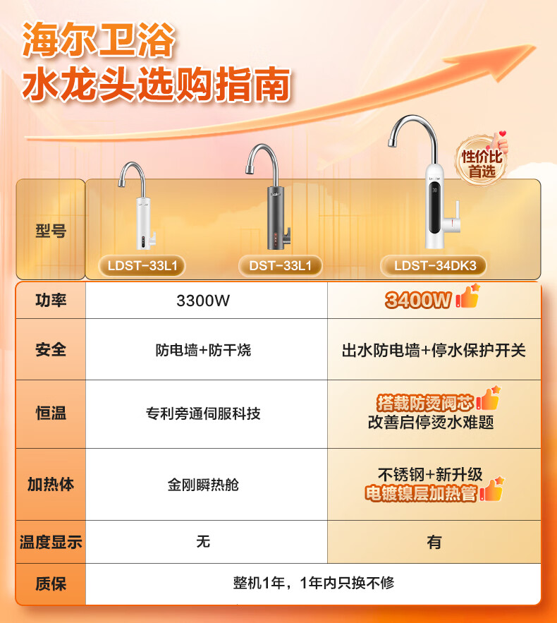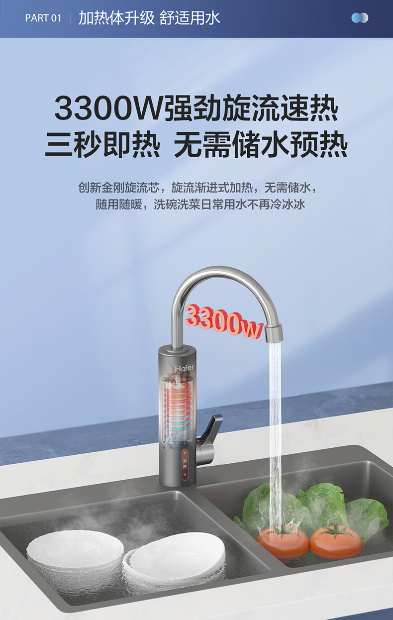 海尔(Haier)即热式电加热水龙头厨房安全速热家用热水宝 防漏电快热电热水器 下进水小厨宝加热器 统帅Leader水龙头LDST-34DK3(C)
