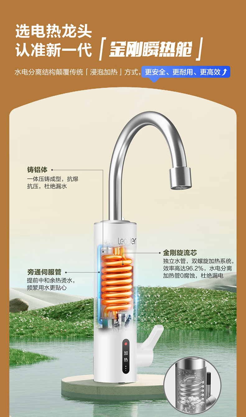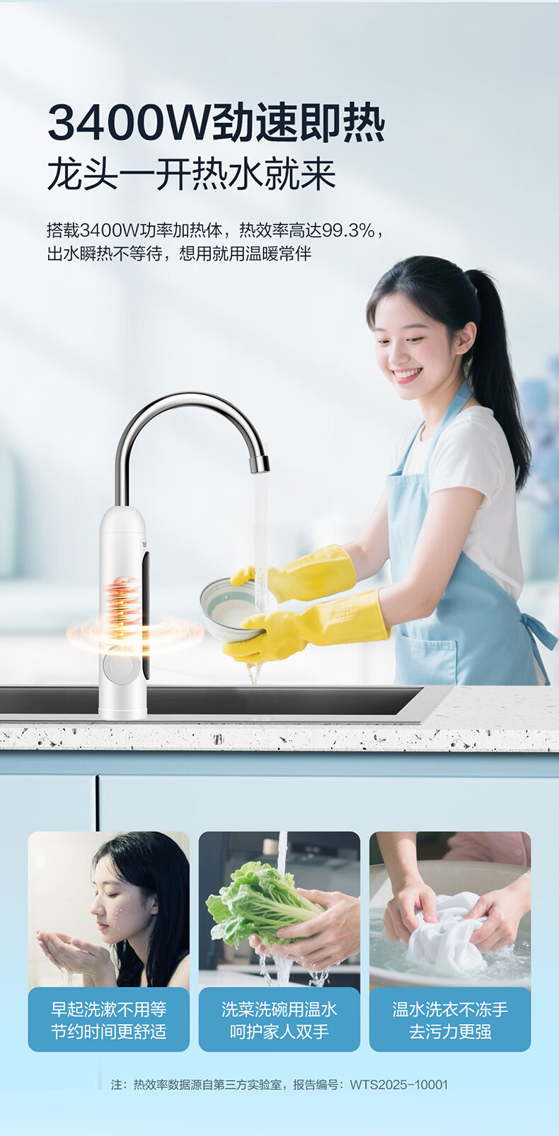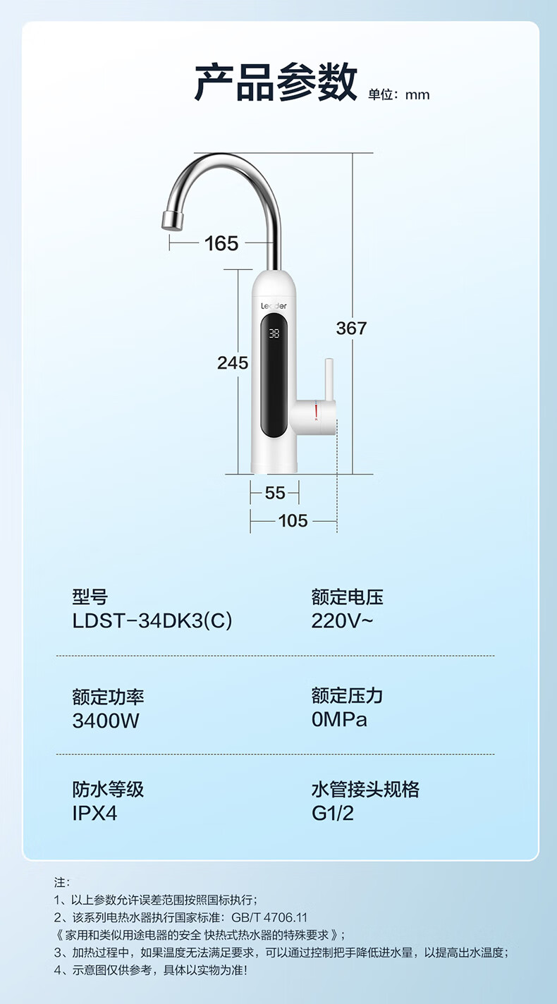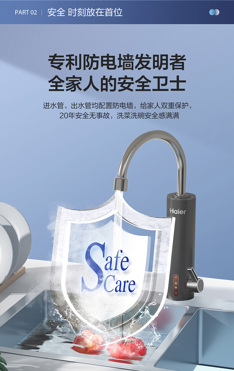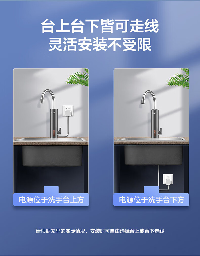 海尔(Haier)即热式电加热水龙头厨房安全速热家用热水宝 防漏电快热电热水器 下进水小厨宝加热器 统帅Leader水龙头LDST-34DK3(C)