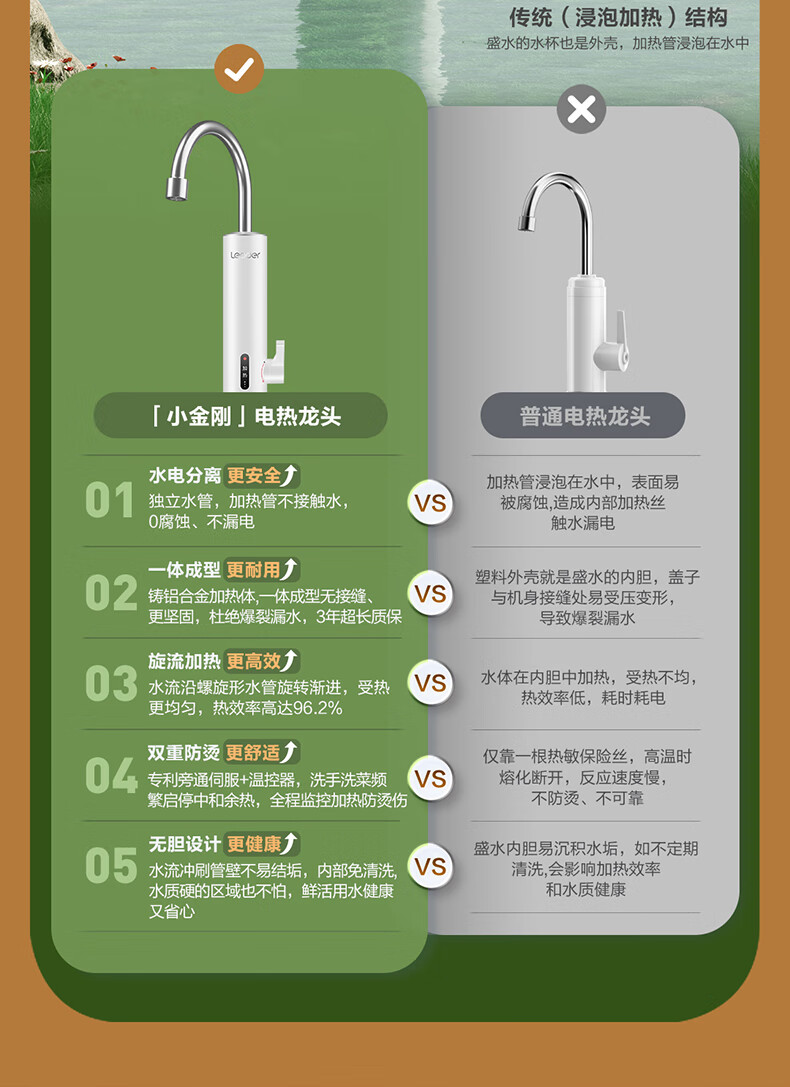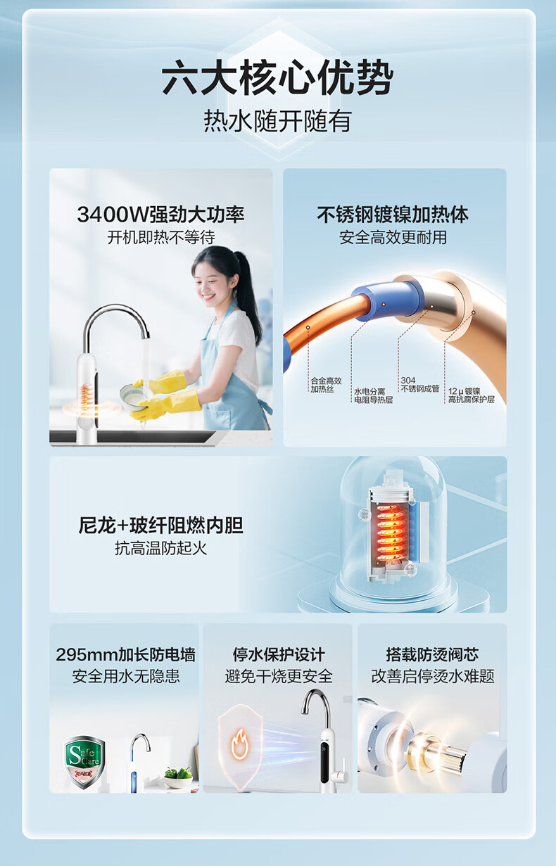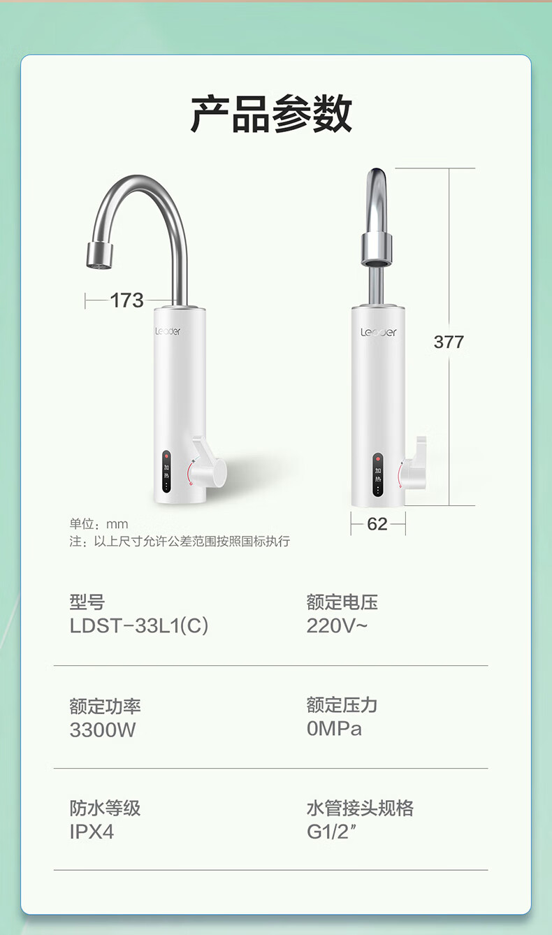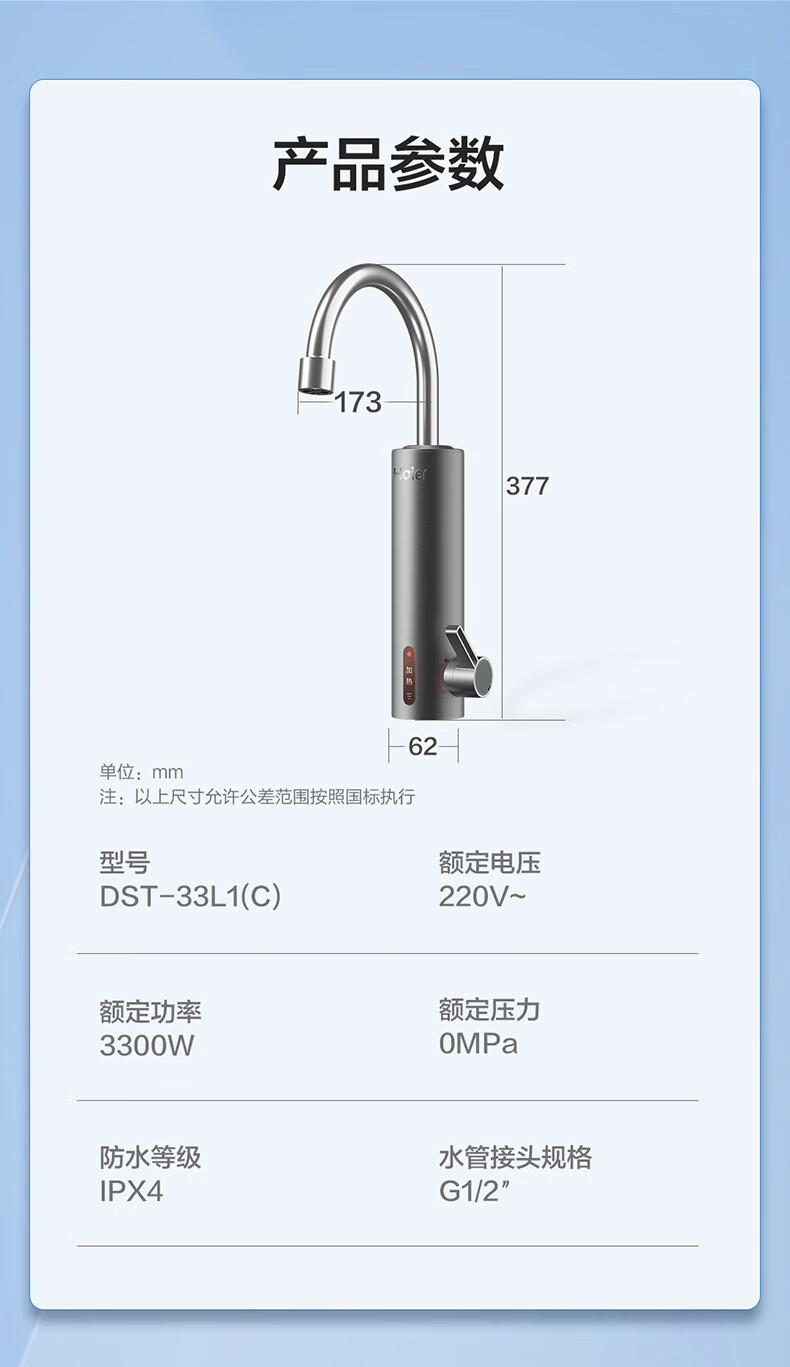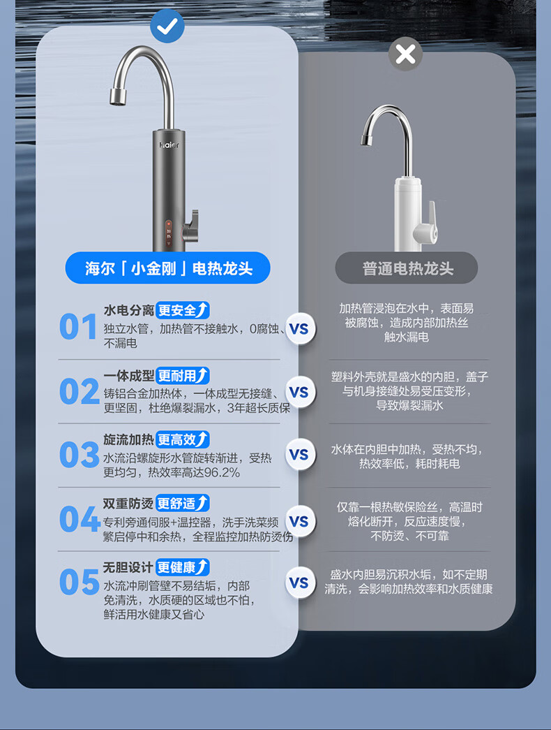 海尔(Haier)即热式电加热水龙头厨房安全速热家用热水宝 防漏电快热电热水器 下进水小厨宝加热器 统帅Leader水龙头LDST-34DK3(C)