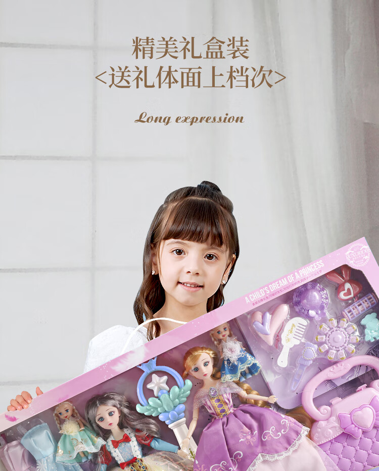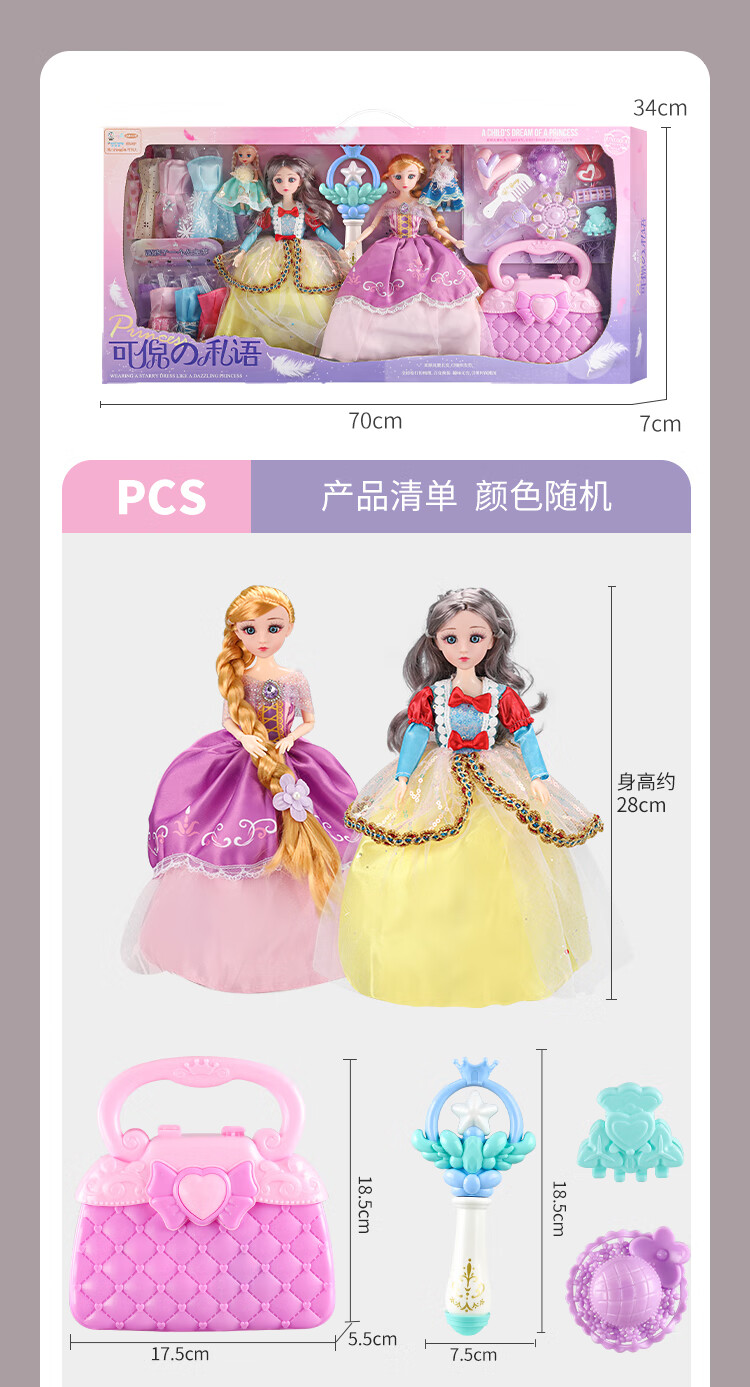 奥智嘉娃娃套装礼盒儿童玩具女孩生日礼物换装真眼洋娃娃公主发光魔法棒