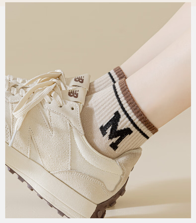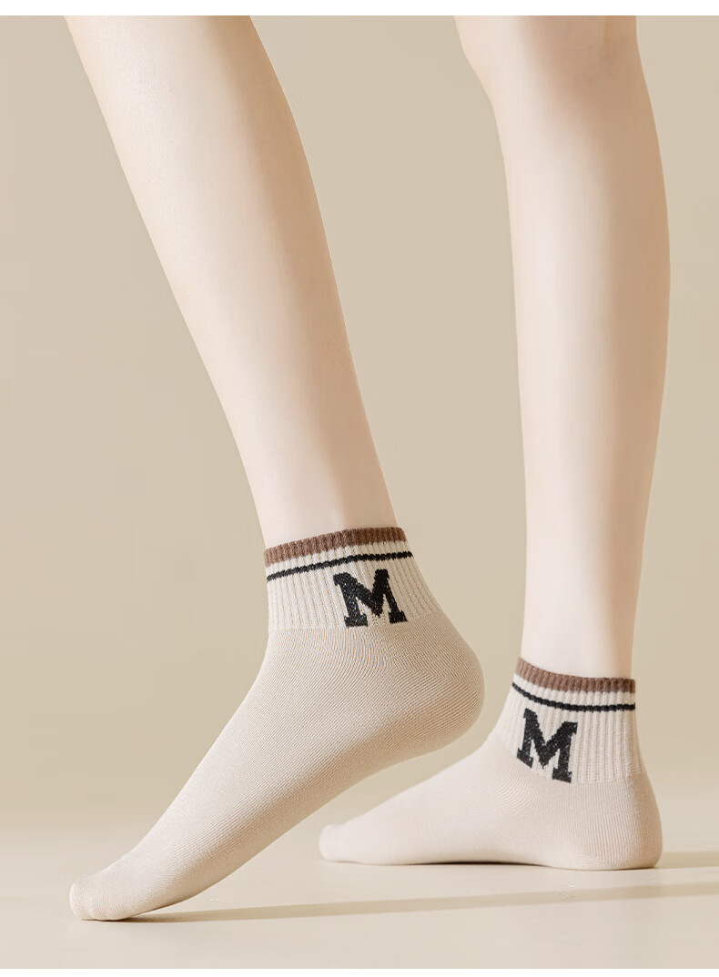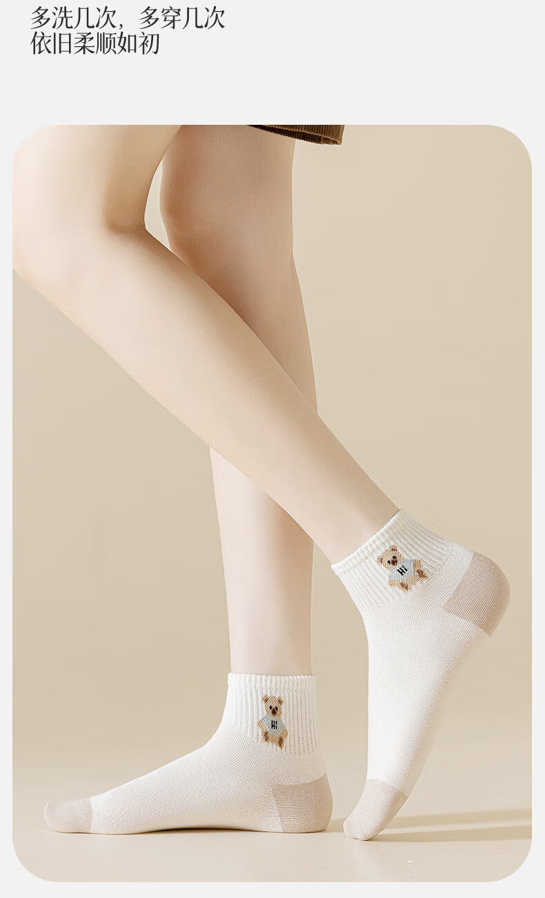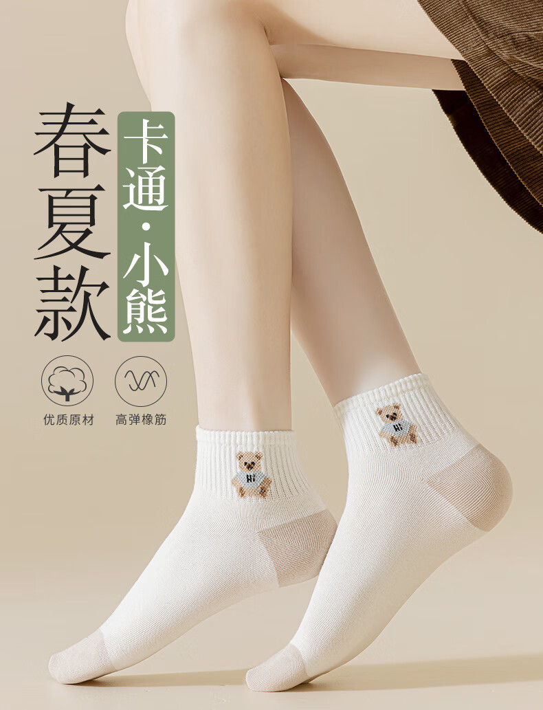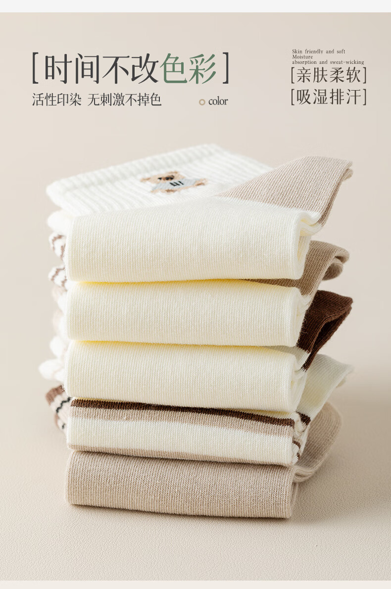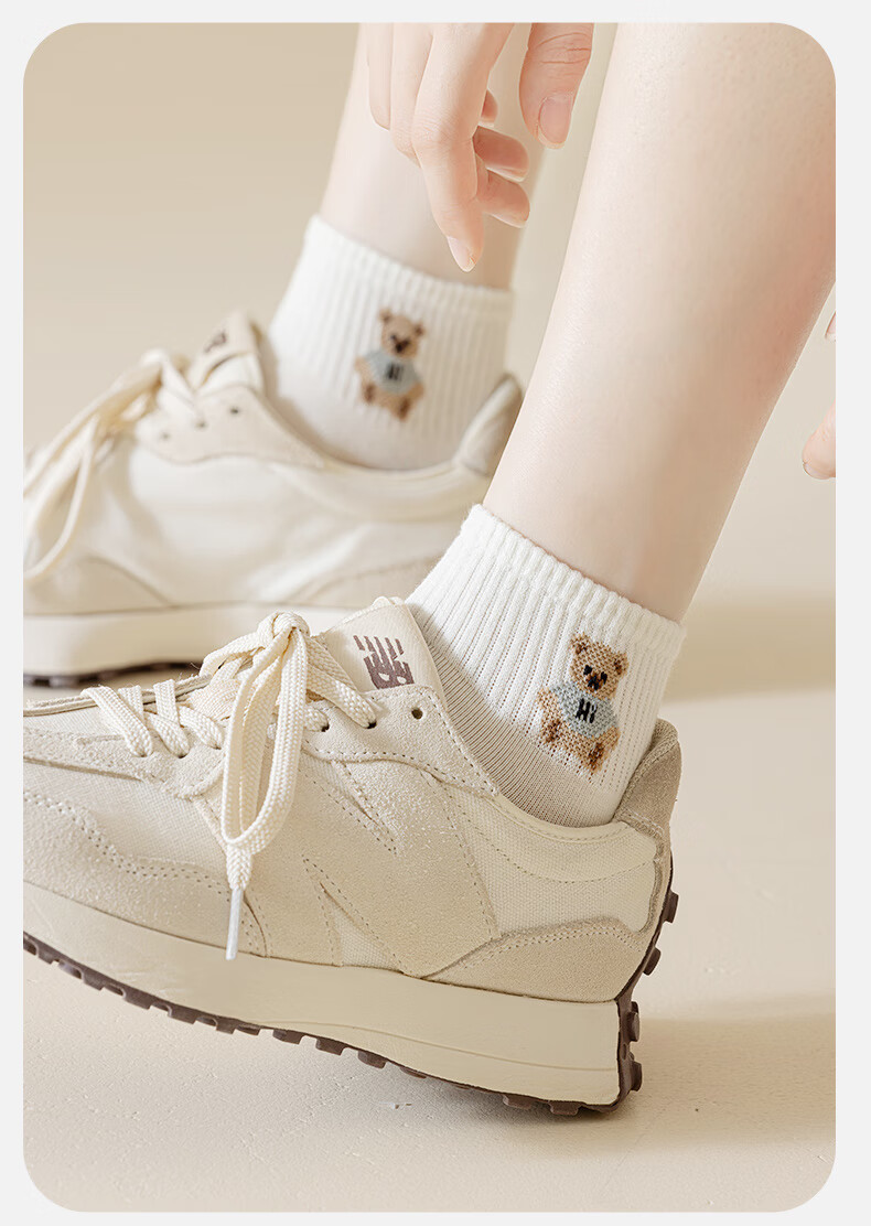 可爱小熊袜子女精梳棉秋字母短筒袜舒适ins潮袜休闲袜美拉德袜子 随机 3双 均码